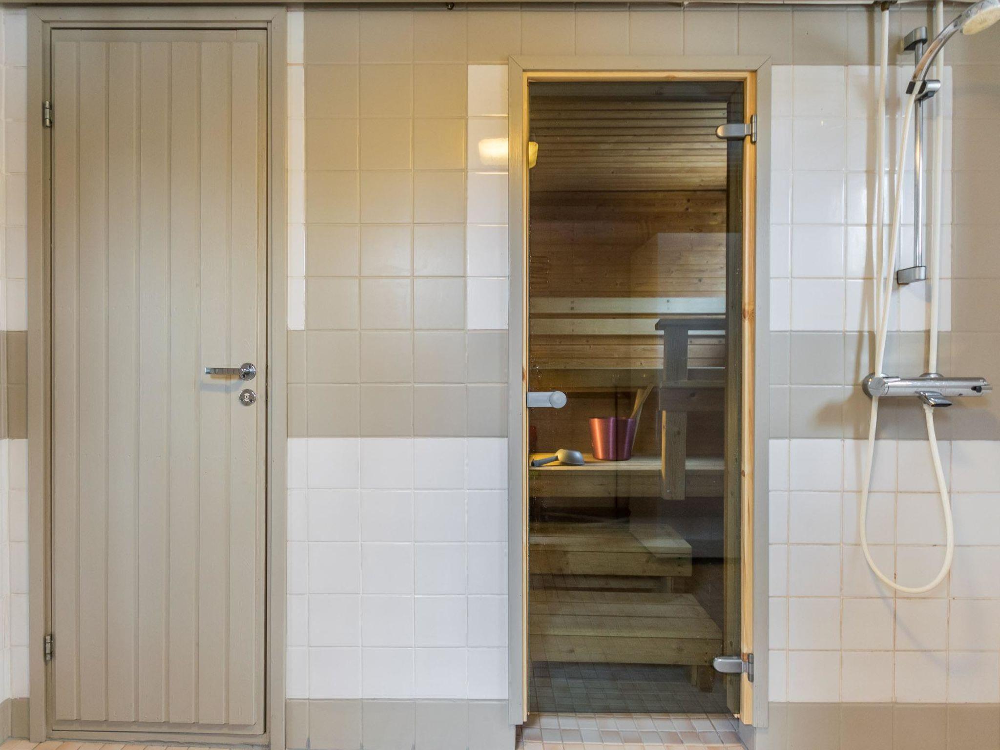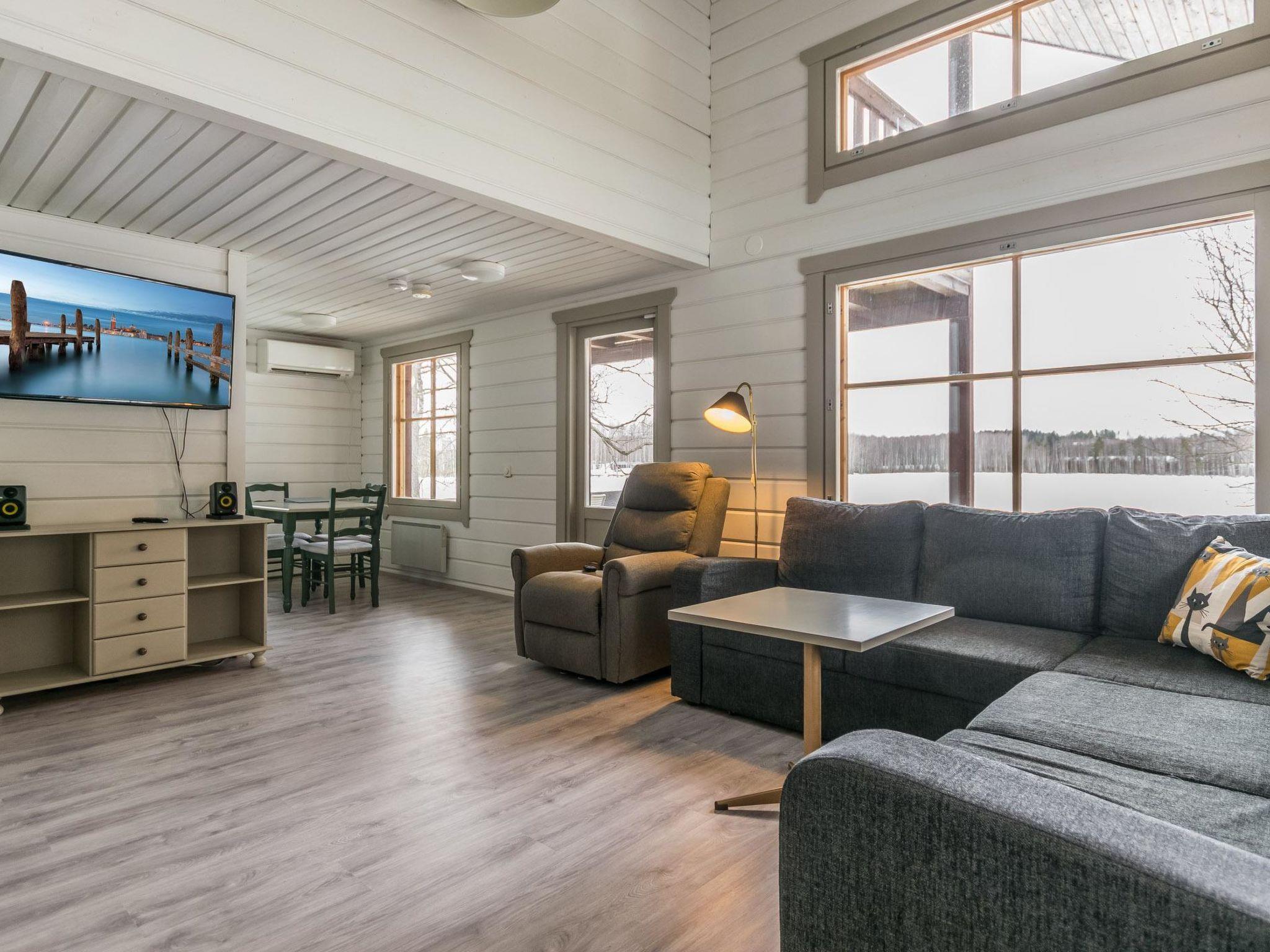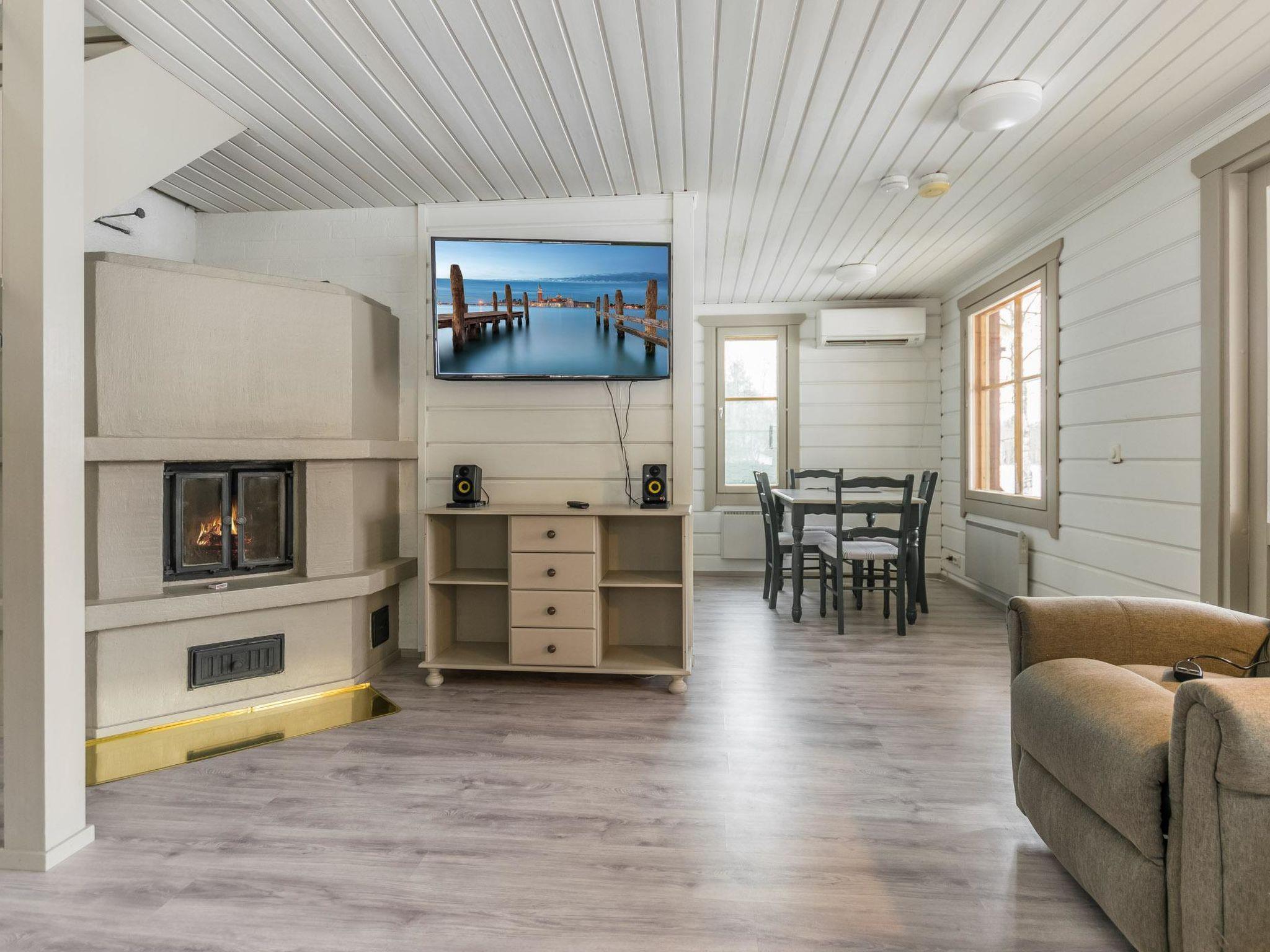 Log cabin, built in 1992, features an open living and dining area, as well as a kitchen with access to the bathroom and sauna. The bathroom includes a shower, while the sauna has an electric sauna stove. There's also a separate indoor WC. On the ground floor, there's a bedroom with a double bed, while on the upper floor, there's another double bed and two single beds.