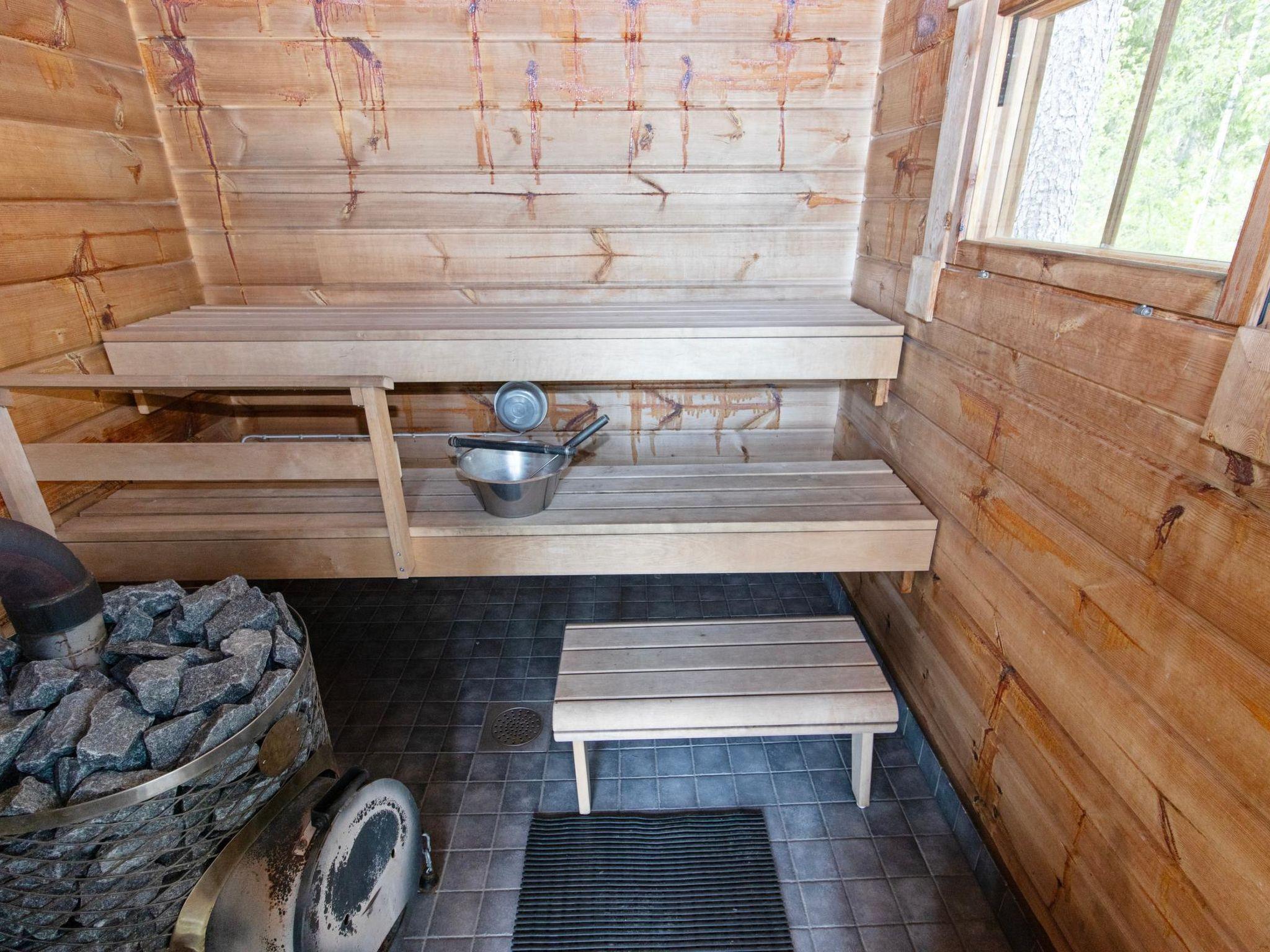 The property includes a separate, atmospheric lakeside log sauna, where you can enjoy the authentic heat of a wood-burning sauna stove. Just a few steps from the sauna lead you to your private pier — a perfect spot for a refreshing morning swim. The peaceful location and high-quality finish make this cabin a superb choice for a leisurely escape amidst nature.