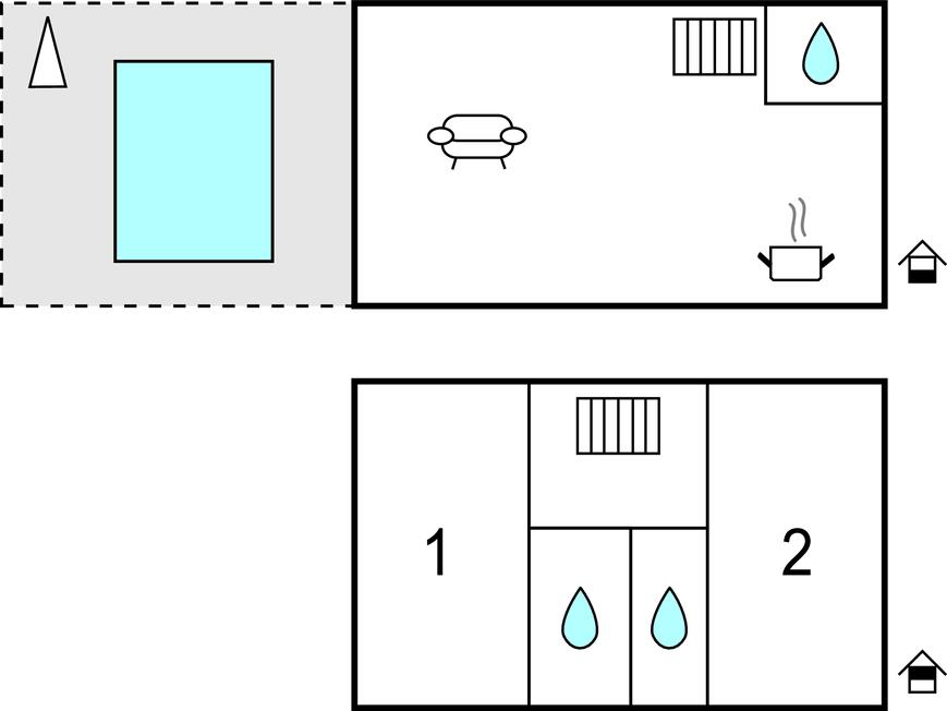 Dieses schöne Ferienhaus bietet Ihnen einen fantastischen Urlaub mit Blick aufs Wasser. Das Haus erstreckt sich über zwei Etagen und ist ideal für eine Familie, die einen Urlaub direkt am Wasser verbringen möchte. Im Erdgeschoss befinden sich der helle Wohnraum mit Essbereich und die angrenzende offene Küche, wo Sie abends entspannt einen Film schauen oder zusammen essen können. Außerdem stehen Ihnen 2 Schlafzimmer, 1 Badezimmer und 2 separate Toiletten zur Verfügung.