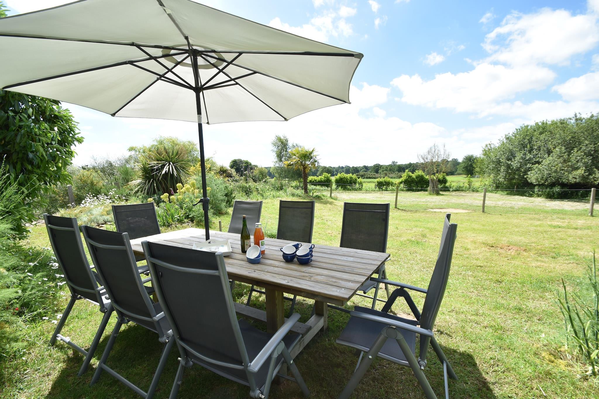Entfliehen Sie dem Alltag in Les Volets Bleus, einem charmanten Ferienhaus inmitten der friedlichen Landschaft von Baguer-Morvan. Stilvoll und komfortabel eingerichtet und großzügig geschnitten, ist es ideal für Familien oder Freunde, die einen erholsamen Urlaub verbringen möchten. Das Haus bietet absolute Privatsphäre ohne direkte Nachbarn und verfügt über einen Aufenthaltsraum mit Tischtennisplatte sowie einen wunderschön angelegten Garten zum Entspannen im Freien. Baguer-Morvan liegt nur 7 km von der Bucht des Mont-Saint-Michel und 30 km südöstlich von Saint-Malo entfernt und ist somit ein idealer Ausgangspunkt für Ausflüge zu einigen der bekanntesten Reiseziele der Bretagne. Erkunden Sie die historischen Gassen von Dol-de-Bretagne, unternehmen Sie eine Fahrt mit dem Strandsegelboot in Cherrueix oder besuchen Sie das Fischerdorf Cancale. Für Familienausflüge bietet sich der Coba Park an, der nur 10 km entfernt liegt, und der legendäre Mont-Saint-Michel ist mit 40 km Entfernung ein absolutes Muss. Ob Sie durch bretonische Dörfer schlendern, frische Meeresfrüchte genießen oder einfach im Garten entspannen – Les Volets Bleus bietet Ihnen einen ruhigen Ausgangspunkt, um die Schönheit und Kultur Nordfrankreichs zu erleben. Bitte beachten Sie: Eine Kaution in Höhe von 175 EURO ist erforderlich. Diese kann vor Ort bezahlt oder im Voraus überwiesen werden. Die Kosten für Strom und Wasser werden von dieser Kaution abgezogen. Der verbleibende Betrag wird bei der Abreise zurückerstattet, sofern keine Schäden festgestellt wurden. Maximal ein Haustier ist gegen eine Gebühr von 15 EURO erlaubt.