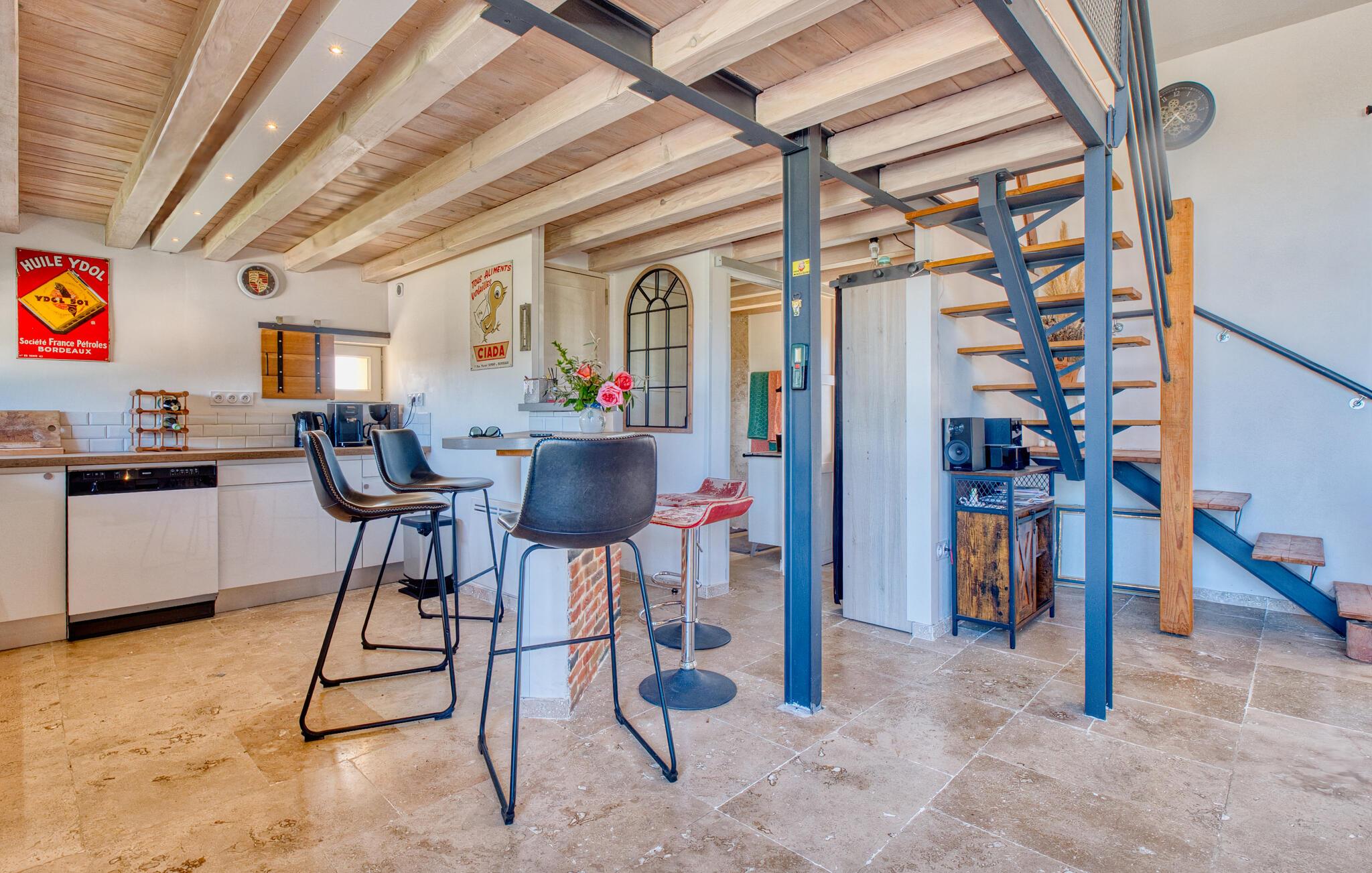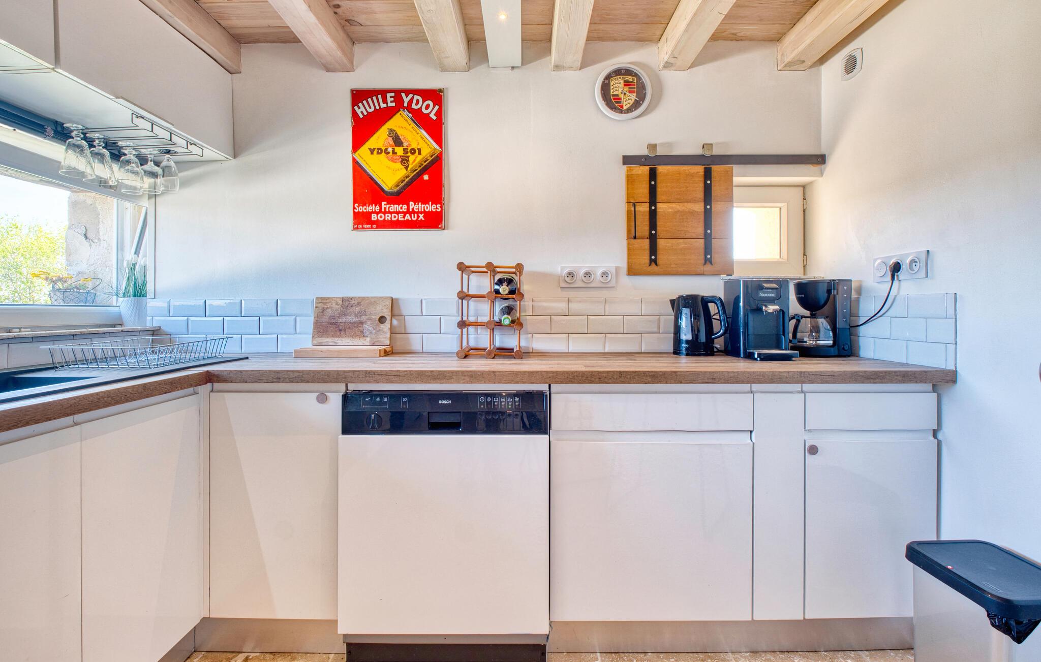 Verbringen Sie Ihre Urlaubstage in diesem Ferienhaus, das mit einem liebevoll angelegten Außenbereich ideale Bedingungen für entspannte Stunden bietet. Das Haus strahlt mit seinen natürlichen Materialien und warmen Farben eine behagliche Atmosphäre aus. Kochen Sie gemeinsam in der offenen Küche und starten Sie mit einem leckeren Frühstück an der Küchentheke in den Tag. Im ansprechend gestalteten Wohnbereich mit Gartenblick sorgen bequeme Sitzmöbel und sichtbare Holzbalken für Wohlfühlmomente.