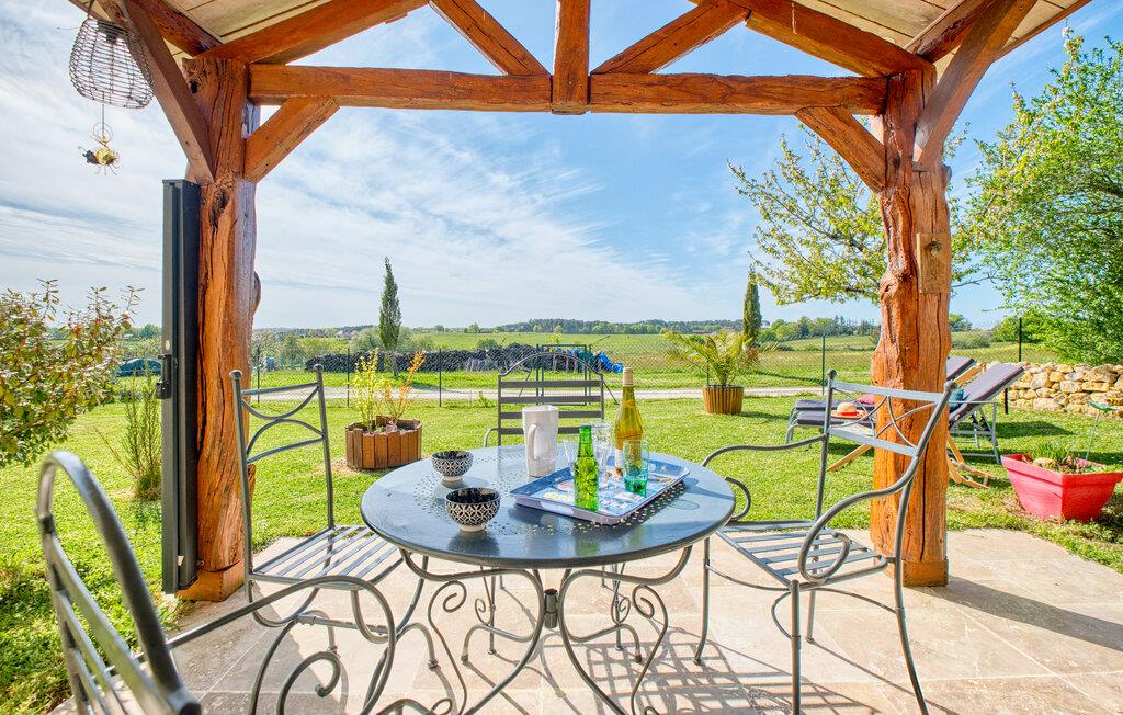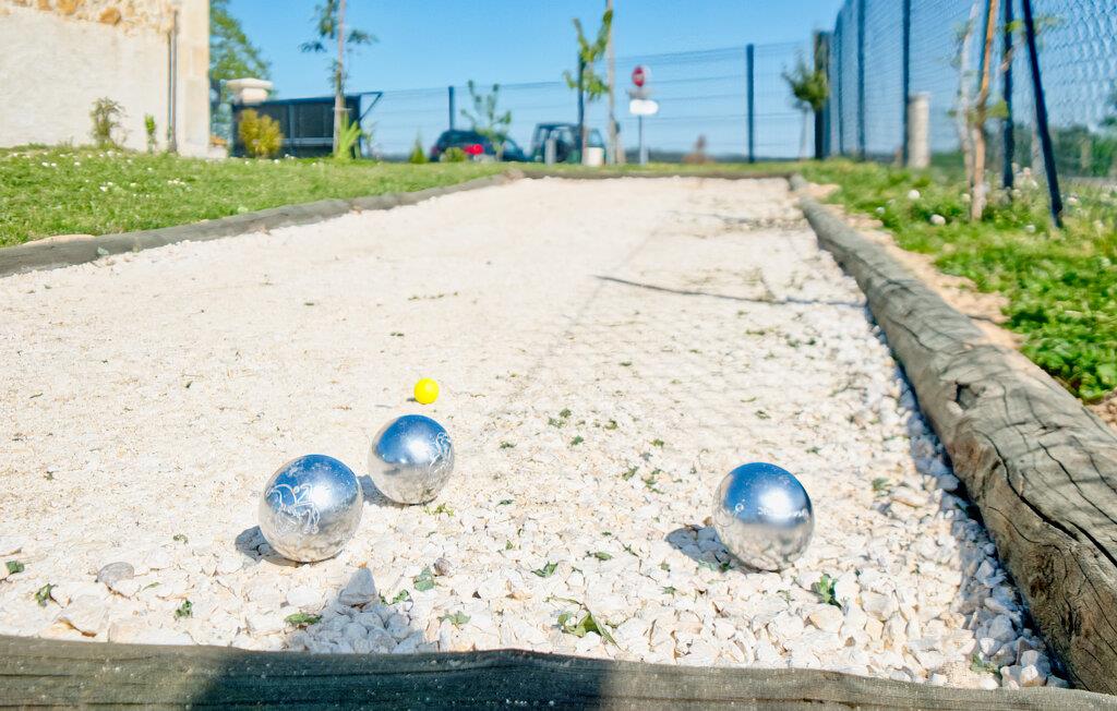 Verweilen Sie draußen unter dem geschützten Terrassendach oder entspannen Sie sich auf einem der Liegestühle im Garten. Spielen Sie eine Partie Boule oder genießen Sie einfach die Ruhe der grünen Umgebung. Das weitläufige Grundstück bietet viele Möglichkeiten zum Erholen und Beisammensein.