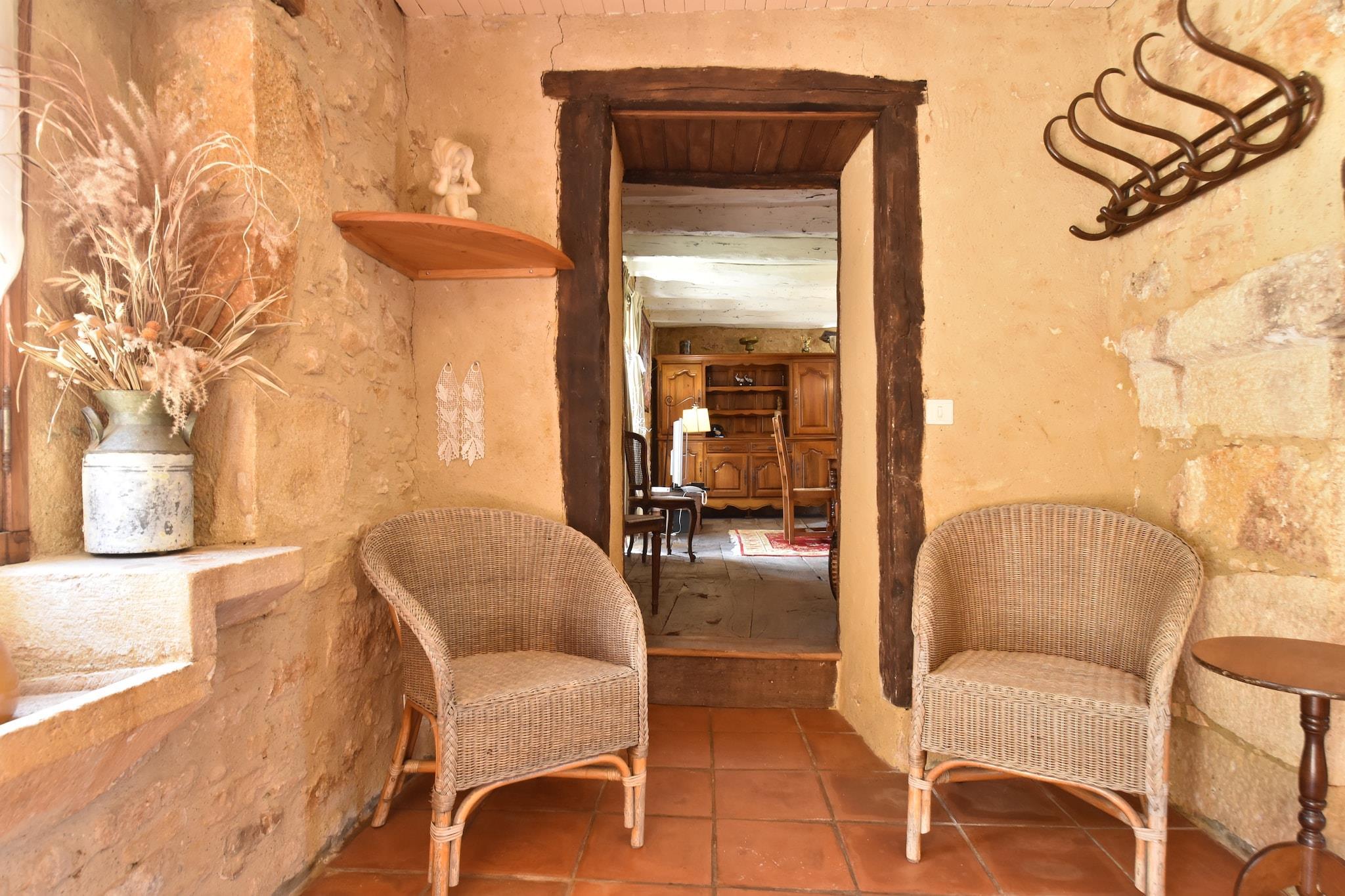 Dieses schöne Ferienhaus in Besse stammt aus dem 17. Jahrhundert, hier erleben Sie die Geschichte. Viele Elemente sind authentisch wie die schönen Holzbalkendecken, Holzböden und monumentalen Kamine. Das Wohnzimmer besteht aus zwei (goßen) Teilen: einem Wohnzimmer mit einem bequemen Ledersofa und einem Kamin mit Holzofen und einem Esszimmer mit offenen Kamin. Im Garten haben Sie einen privaten Pool. Die Kinder können herrlich auf dem Rasen spielen. Eine große Anzahl von Attraktionen ist nur eine kurze Autofahrt entfernt. Besse können Sie sogar zu Fuß (400 Meter) erreichen. Hier finden Sie eine schöne alte Kirche mit dem Steindach, das noch original ist. Das mittelalterliche Bastidestädtchen Villefranche-du-Périgord (7 km) ist sehr sehenswert. Darüber hinaus gibt es eine Reihe von Seen in der unmittelbaren Umgebung, darunter in Prats-du-Périgord (5 km) und Cazals (12 km). Das Dordogne-Tal hat noch mehr Schönheiten zu bieten. Bewundern Sie die alten Orte Domme (22 km), mit umfangreichen unterirdischen Gängen mit Stalaktiten, das malerische La Roque-Gageac (24 km) und Beynac-et-Cazenac (25 km). Die \"Perle des Périgord\", Sarlat-la-Canéda (33 km), sollte sicherlich besucht werden.