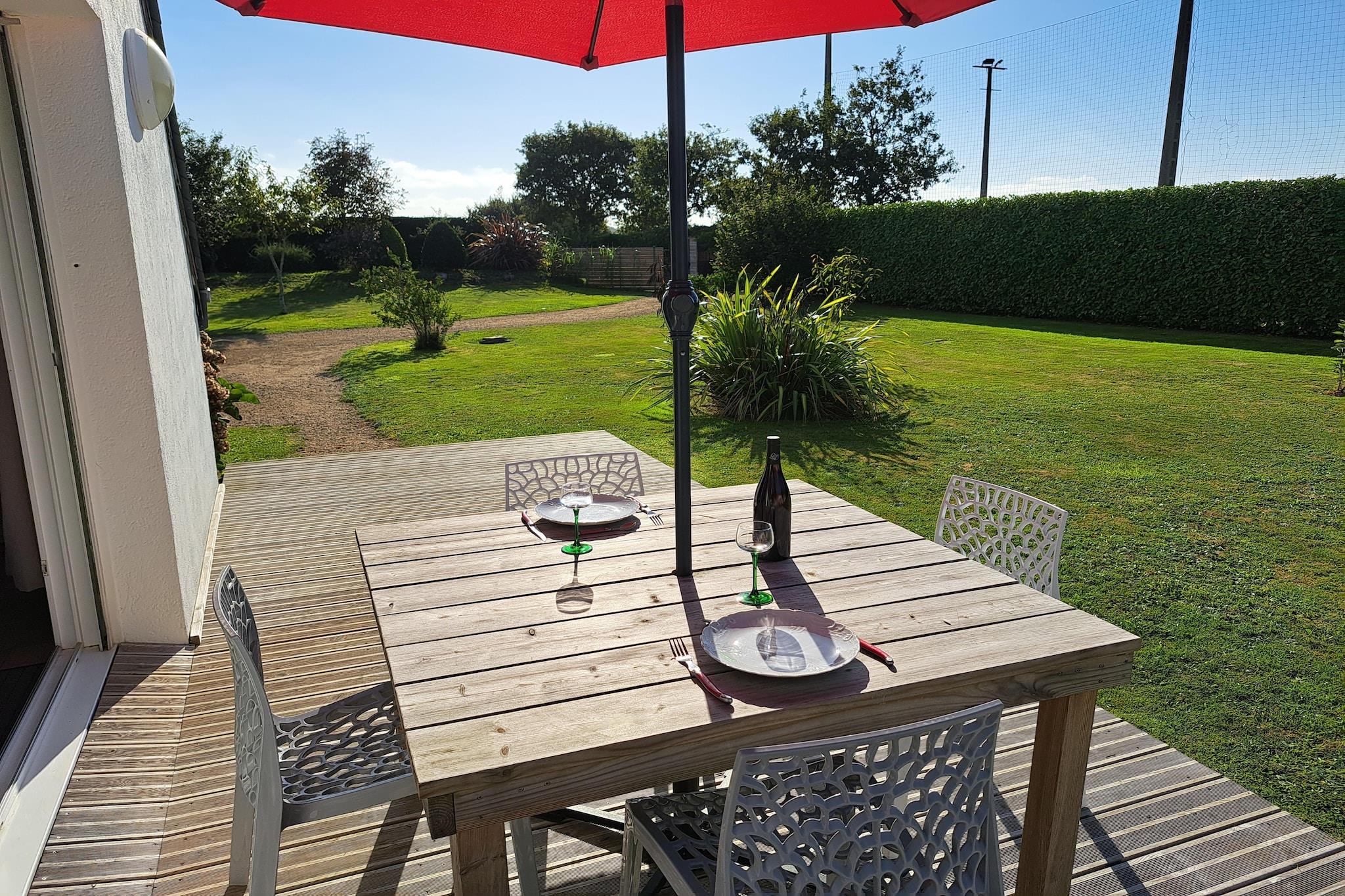 Parterre: (Kochnische(Kochplatte(2 Kochplatten, Gas), Wasserkocher, Toaster, Kaffeemaschine(Filter), Kaffeemaschine(cups), Backofen(mini), Mikrowelle, Kühl-/Gefrierkombination), Wohn/Esszimmer(TV(keine deutschen Fernsehsender), DVD-Spieler, CD-Spieler), Badezimmer(Dusche), Toilette) In der 1. Etage: (Schlafzimmer(Doppelbett(140 x 190 cm)), Schlafzimmer(Einzelbett(90 x 190 cm))) Internet, Trockner, Waschmaschine, Heizung(elektrisch), Terrasse(18 m2), Garten(700 m2), Gartenmöbel, Liegen, Grill, Parkplatz, Handtücher/Bettwäsche (inklusive)