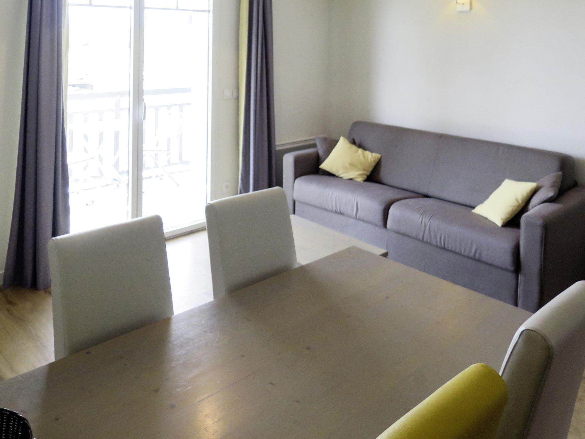 "Les Balcons de l’Océan", 2-Zimmer-Wohnung 41 bis 50 m2. Hell, gemütlich eingerichtet: Wohn-/Schlafzimmer mit 1 Doppeldiwanbett, Esstisch und TV. Ausgang zum Balkon, zur Terrasse. 1 Zimmer mit 2 Schlafmöglichkeiten. Schlafnische mit 2 Schlafmöglichkeiten. Kochnische (Geschirrspüler, 4 Glaskeramikplatten, Kombinationsmikrowelle). Bad, sep. WC. E-Heizung. Balkon oder Terrasse. Zur Verfügung: Kinderhochstuhl, Babybett (extra). Bitte beachten: Maximal 2 Haustiere/Hunde erlaubt. Rauchmelder, Feuerlöscher. Anstelle eines abgeschlossenen Schlafzimmers befinden sich manche Schlafplätze in einem offenen Bereich (Galerie, Nische etc.).