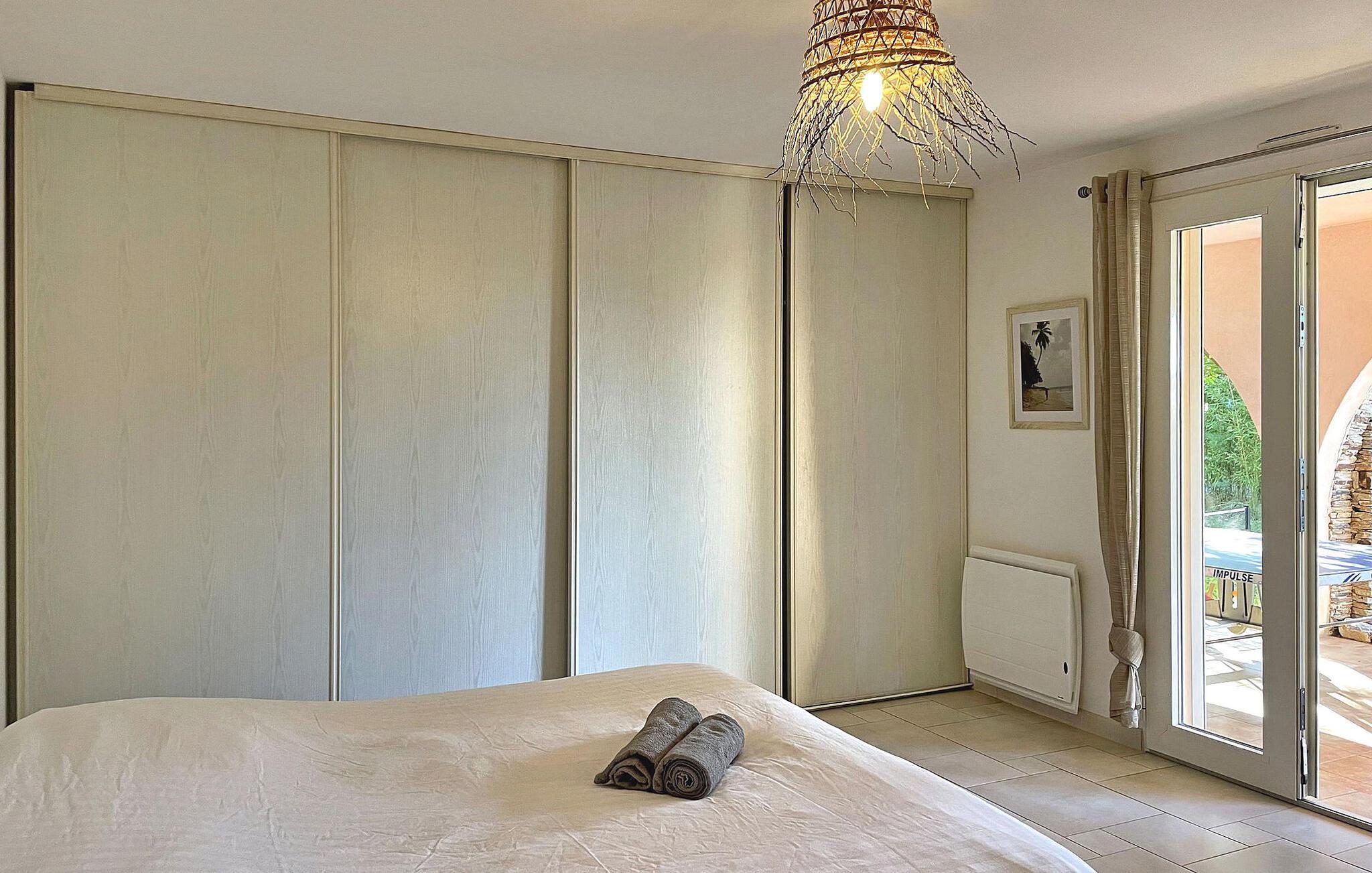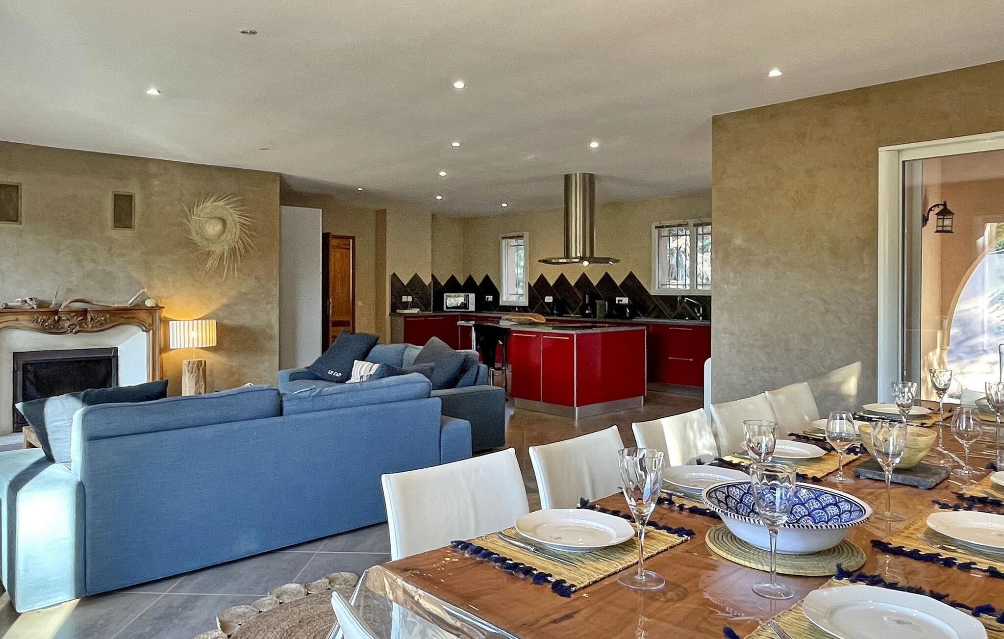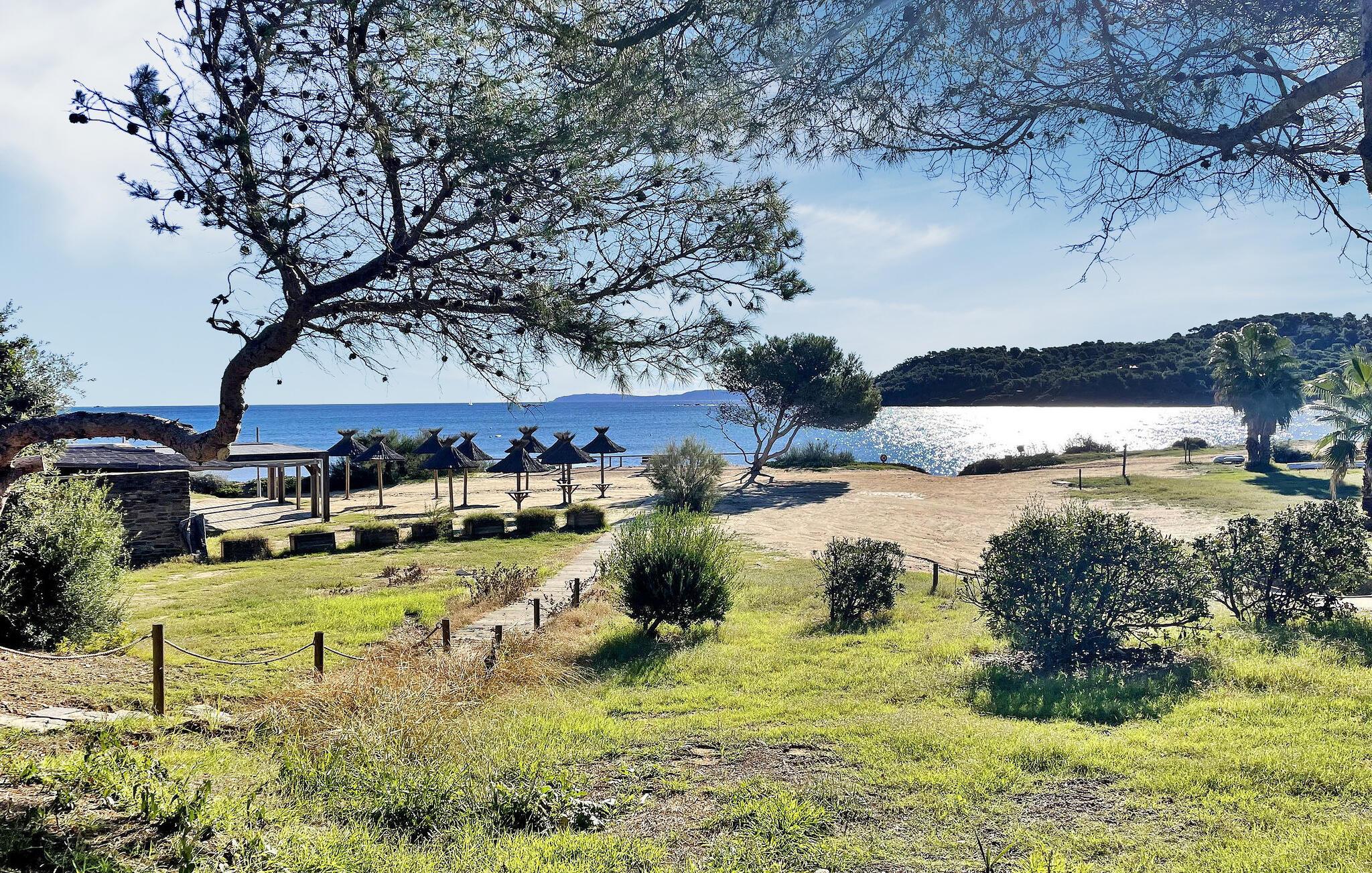 Diese Villa in Cap Bénat, Bormes les Mimosas, ist Teil eines privaten Anwesens und bietet seinen Bewohnern exklusiven Zugang zum Strand. Die Villa in Hanglage bietet geräumige Unterkünfte auf zwei verschiedenen Ebenen. Beim Betreten der Villa finden Sie einen klimatisierten Wohnbereich mit offener Küche und Essbereich. Die voll ausgestattete Küche verfügt über die wichtigsten Geräte und eine zentrale Insel, während eine geschützte Terrasse mit einem Gasgrill zusätzlichen Platz im Freien bietet. Es gibt vier Schlafzimmer – eines im Erdgeschoss und drei auf der unteren Ebene, jeweils mit Doppelbetten und eigenem Duschbad oder separatem WC. Auf der überdachten Terrasse gibt es eine Tischtennisplatte, einen beheizten, alarmgesicherten Pool und umzäunte Gärten auf verschiedenen Ebenen. Auf dem Grundstück stehen Parkplätze für drei Autos zur Verfügung. Die Villa liegt im Herzen des privaten und bewachten Anwesens von Cap Bénat und bietet Zugang zu den Privatstränden der Gebiete Cap Bénat und Gaou Bénat. Das Restaurant des Anwesens (am Strand) ist vom 1. Mai bis Mitte September geöffnet (mit dem Auto erreichbar). Cap Bénat ist ein 2500 Hektar großer Felsvorsprung an der Mittelmeerküste des Var in Bormes-les-Mimosas. Er gilt als einer der prestigeträchtigsten Orte an der Var-Küste. Die nächsten Geschäfte finden Sie in Bormes les Mimosas, etwa 8 km entfernt. Bitte beachten Sie, dass auf dem Anwesen von Cap Bénat besondere Regeln gelten, einschließlich der Ruhezeiten ab 23:00 Uhr. Wenn Störungen nachts das Eingreifen des Hausmeisters erfordern, kann die volle Kaution einbehalten werden. Exklusive Ferienvilla im Herzen des Anwesens Cap Benat.