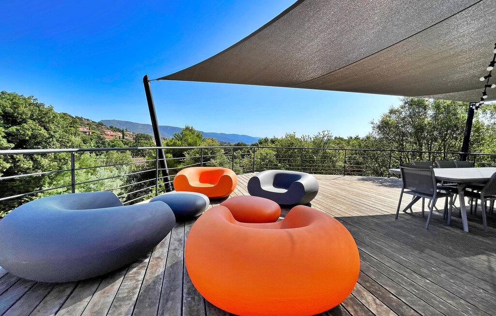 Entdecken Sie eine Urlaubsoase in Bormes les Mimosas, nur wenige Minuten vom Meer entfernt. Dieser Rückzugsort in der Nähe von Le Lavandou ist ideal für 8 Gäste und bietet einen erfrischenden Pool und eine Panoramaterrasse für ultimative Entspannung. Diese Villa im modernen Stil bietet saubere und moderne Unterkünfte mit komfortablen Möbeln und klimatisierten Schlafzimmern. Bewundern Sie den fantastischen Panoramablick von der erhöhten Terrasse und genießen Sie Mahlzeiten im Freien aus der Sommerküche mit Grill. Von der Terrasse führen Stufen hinunter zum Swimmingpool, einer Außendusche, Liegestühlen, Sonnenschirmen und 3 Parkplätzen. Das Haus ist gleich weit vom Zentrum von Bormes les Mimosas und dem Zentrum von Lavandou entfernt und liegt ideal, nur 20 Gehminuten vom Strand Favière entfernt. Alle Geschäfte, die Sie benötigen, finden Sie entweder in Lavandou oder in Bormes les Mimosas. Für Golfer gibt es zwei Golfplätze in der Nähe; Sie haben die Wahl zwischen dem 9-Loch-Golfplatz Lavandou und dem 18-Loch-Golfplatz Valcros. Erleben Sie einen Urlaub, bei dem jedes Detail für einen unvergesslichen Aufenthalt sorgt.