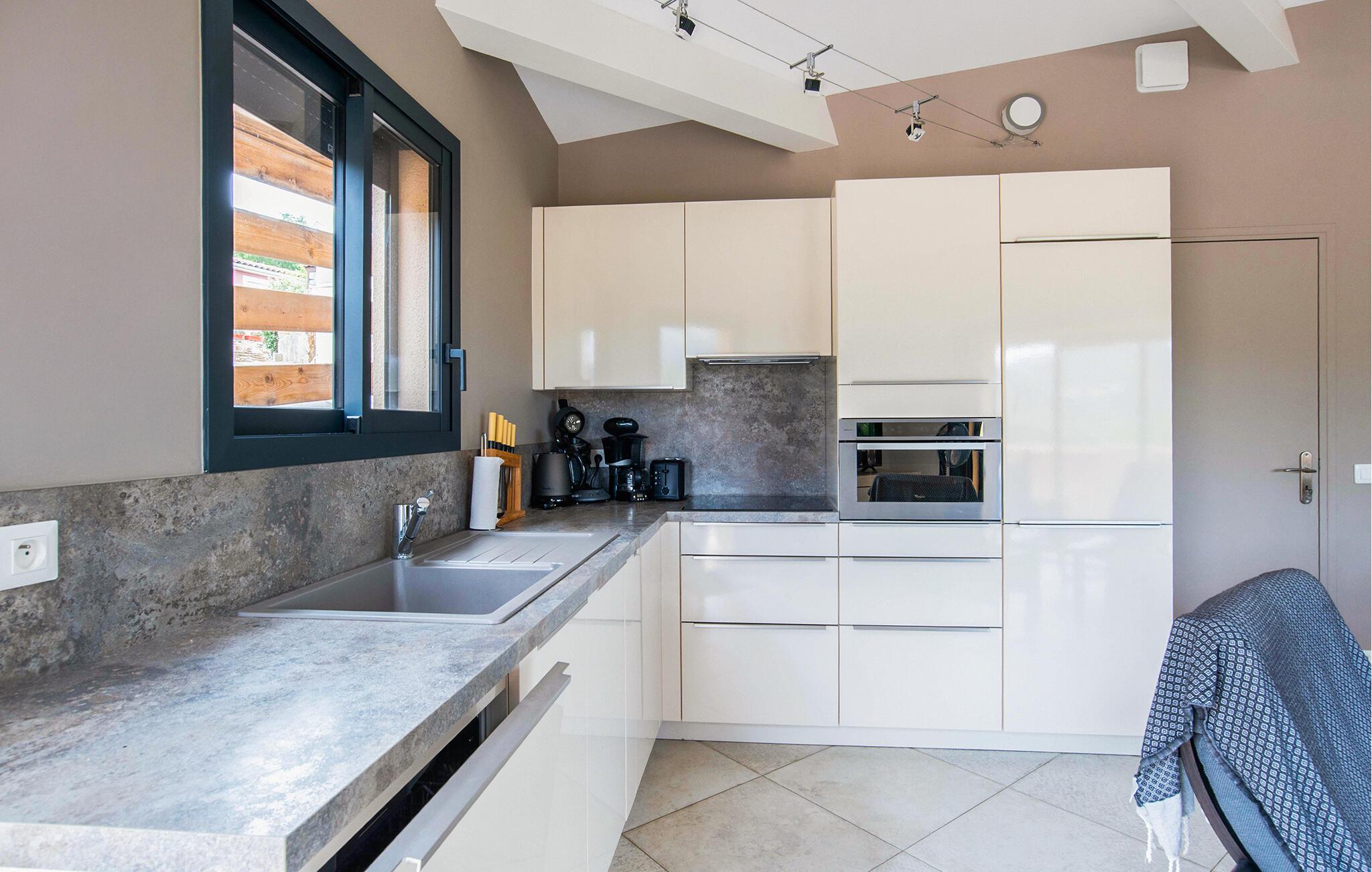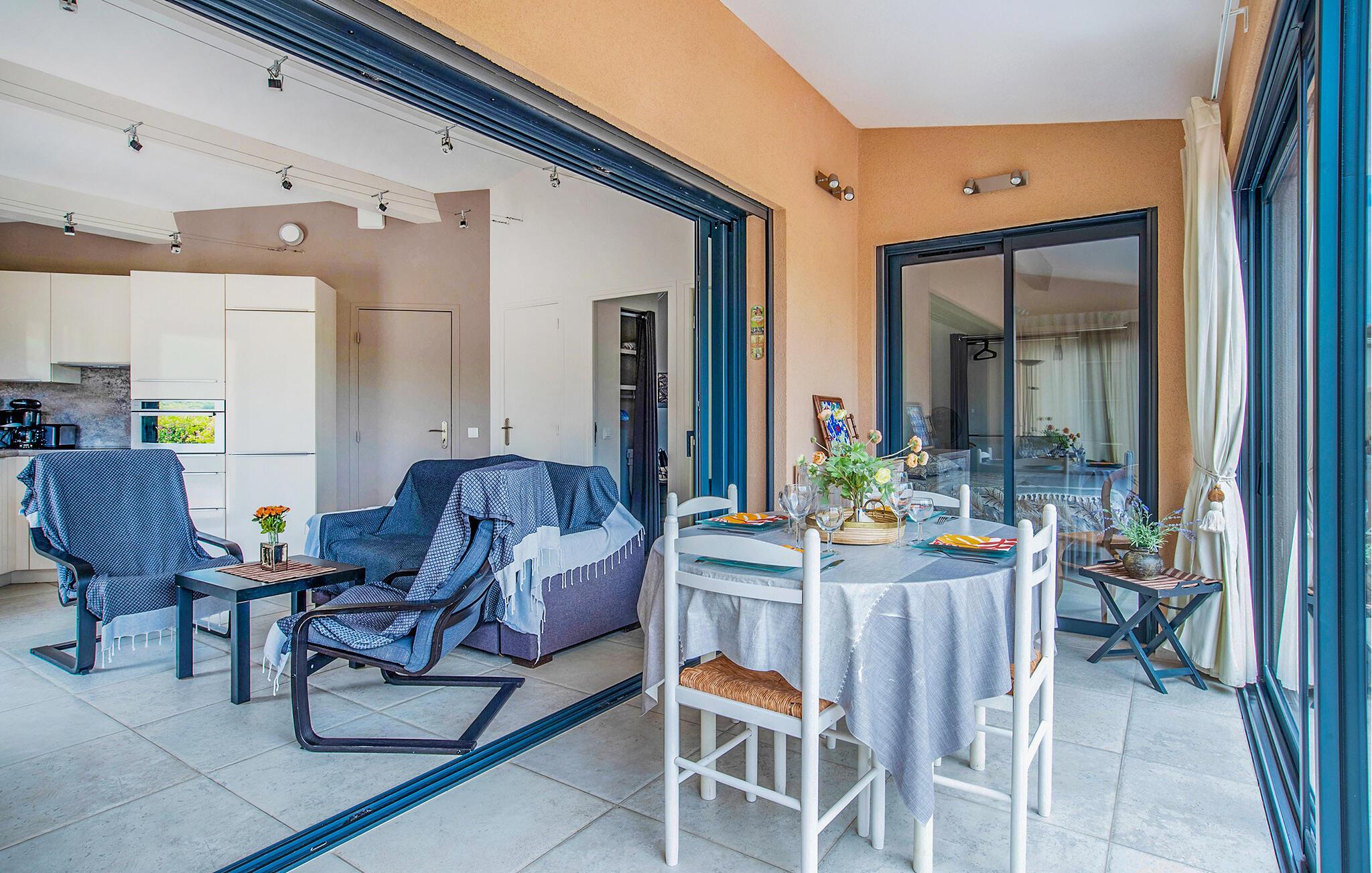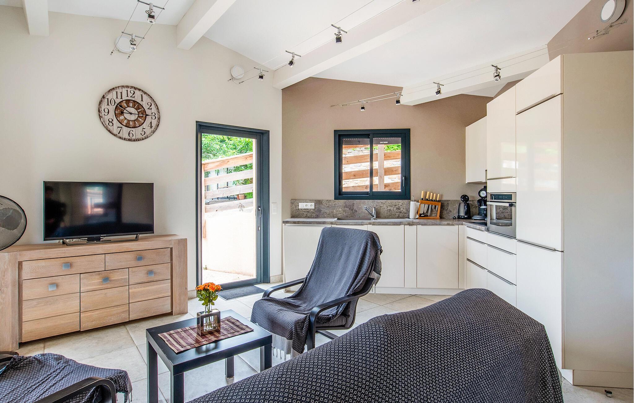 Freuen Sie sich auf Ihren nächsten Urlaub in diesem charmanten Ferienhaus mit Blick auf die Hügel. Im Herzen des privaten und gesicherten Anwesens Les Maurels gelegen, verleben Sie in diesem Haus einen erholsamen Aufenthalt in einem wunderschönen Dorf, nur unweit vom Mittelmeer entfernt. Machen Sie es sich mit der Familie oder Freunden im hellen Wohnzimmer mit Fernseher gemütlich und genießen Sie die offene Verbindung von Küche, bequemen Sitzgelegenheiten und Esstisch.