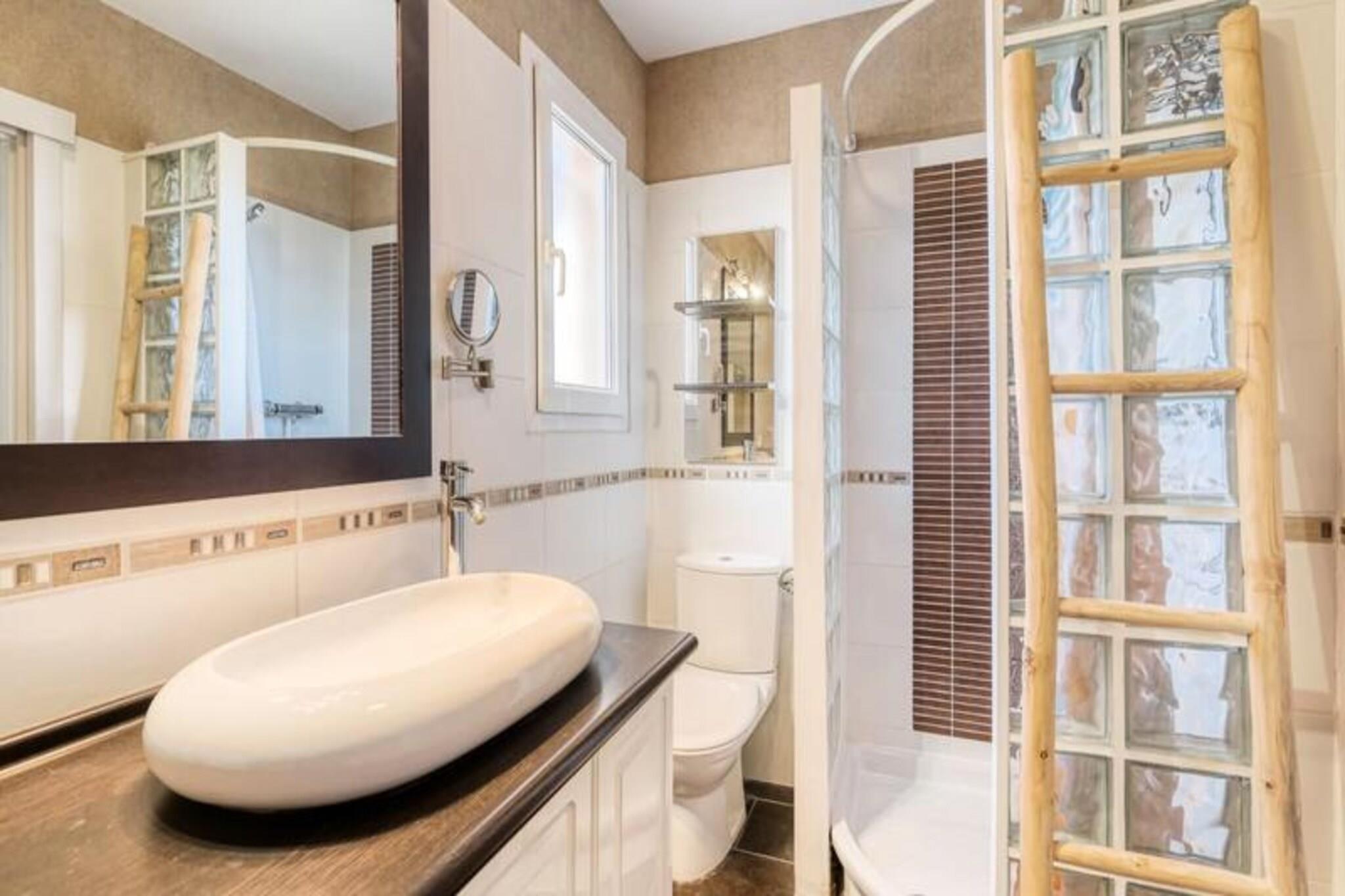 Stellen Sie sich vor, Sie wachen vom sanften Rauschen der Wellen und dem Panoramablick aufs Meer von Ihrer privaten Terrasse auf. Dieses geräumige Familienhaus im Herzen der Côte d’Azur bietet einen ruhigen Rückzugsort für bis zu 7 Gäste. Mit seinem privaten Pool, dem sonnigen Garten und der Nähe zu unberührten Stränden ist es der perfekte Ort für einen unvergesslichen Urlaub. Ob Sie am Pool entspannen oder unter der Pergola im Freien speisen – hier ist jeder Moment zum Genießen da. Das Haus erstreckt sich über drei Etagen und bietet klimatisierten Komfort sowie eine durchdachte Raumaufteilung. Im Erdgeschoss befinden sich ein helles Wohnzimmer mit Zugang zur Terrasse, eine voll ausgestattete Küche und ein gemütliches Schlafzimmer mit Balkon. Im Obergeschoss erwarten Sie zwei elegante Schlafzimmer, eines davon mit Balkon und Meerblick, sowie ein luxuriöses Badezimmer mit Doppelwaschbecken. Für zusätzliche Privatsphäre bietet das Untergeschoss ein separates Studio mit Wohnbereich, Schlafzimmer und Badezimmer – ideal für die Familie oder Freunde. Moderne Annehmlichkeiten wie ein Weber-Gasgrill, Liegestühle und eine Waschmaschine sorgen für einen unbeschwerten Aufenthalt. Nur wenige Minuten entfernt erwarten Sie goldene Strände, charmante Läden und lebhafte Märkte. Erkunden Sie die nahegelegenen Küstenorte, genießen Sie die provenzalische Küche oder entspannen Sie sich einfach in der Ruhe Ihrer privaten Oase. Ob Sie Abenteuer oder Erholung suchen – dieses Haus bietet Ihnen beides. Schaffen Sie unvergessliche Erinnerungen in diesem idyllischen mediterranen Paradies.