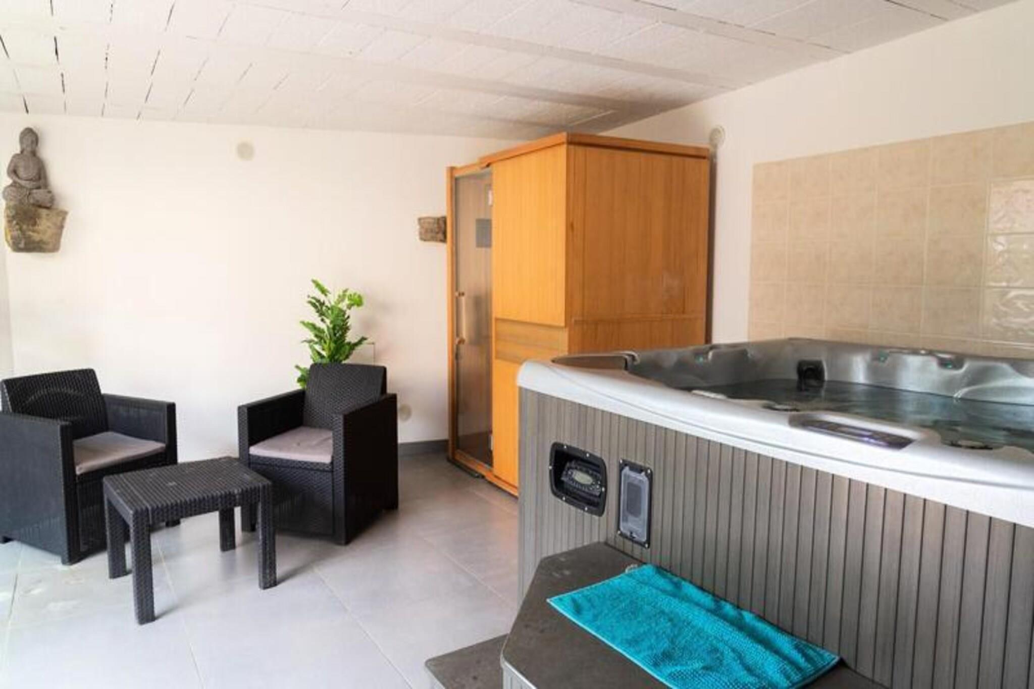 Dieses ger?umige Ferienhaus eignet sich perfekt f?r einen Familien- oder Gruppenurlaub und bietet eine einladende Umgebung mit zahlreichen Annehmlichkeiten. Es verf?gt ?ber verschiedene Schlafm?glichkeiten, darunter zwei Schlafzimmer mit einem 160-cm-Bett und zwei mit 90-cm-Betten, und bietet bequem Platz f?r bis zu acht G?ste. Die Unterkunft ist haustierfreundlich und hei?t Haustiere mit einem aktuellen Impfpass willkommen. Genie?en Sie die W?rme eines Holzofens im gro?en Wohnzimmer, das auch ?ber einen Fernseher und einen DVD-Player verf?gt. Das Anwesen liegt in einem charmanten Dorf und ist von einer malerischen Aussicht und einer ruhigen Atmosph?re umgeben. In der N?he finden Sie lokale M?rkte, die frisches, vom Bauernhof gez?chtetes Gefl?gel und Eier anbieten, sowie Caf?s f?r einen gem?tlichen Ausflug. Besucher k?nnen auch Outdoor-Aktivit?ten genie?en. Ein Gemeinschaftspool in der N?he bietet einen erholsamen Ort f?r alle. Die voll ausgestattete K?che mit Mikrowelle, Geschirrsp?ler, K?hlschrank und Gefrierschrank erm?glicht eine einfache Zubereitung von Mahlzeiten. Ein Waschraum mit Waschmaschine und Trockner steht zur Verf?gung, w?hrend unabh?ngige Badezimmer und ein separates WC f?r Komfort sorgen. F?r zus?tzliche Entspannung verf?gt die Unterkunft ?ber eine Sauna, ein Spa und ein eigenes Duschbad. Im Freien l?dt eine Terrasse mit Gartenlounge und Kohlenbecken zum Entspannen ein.