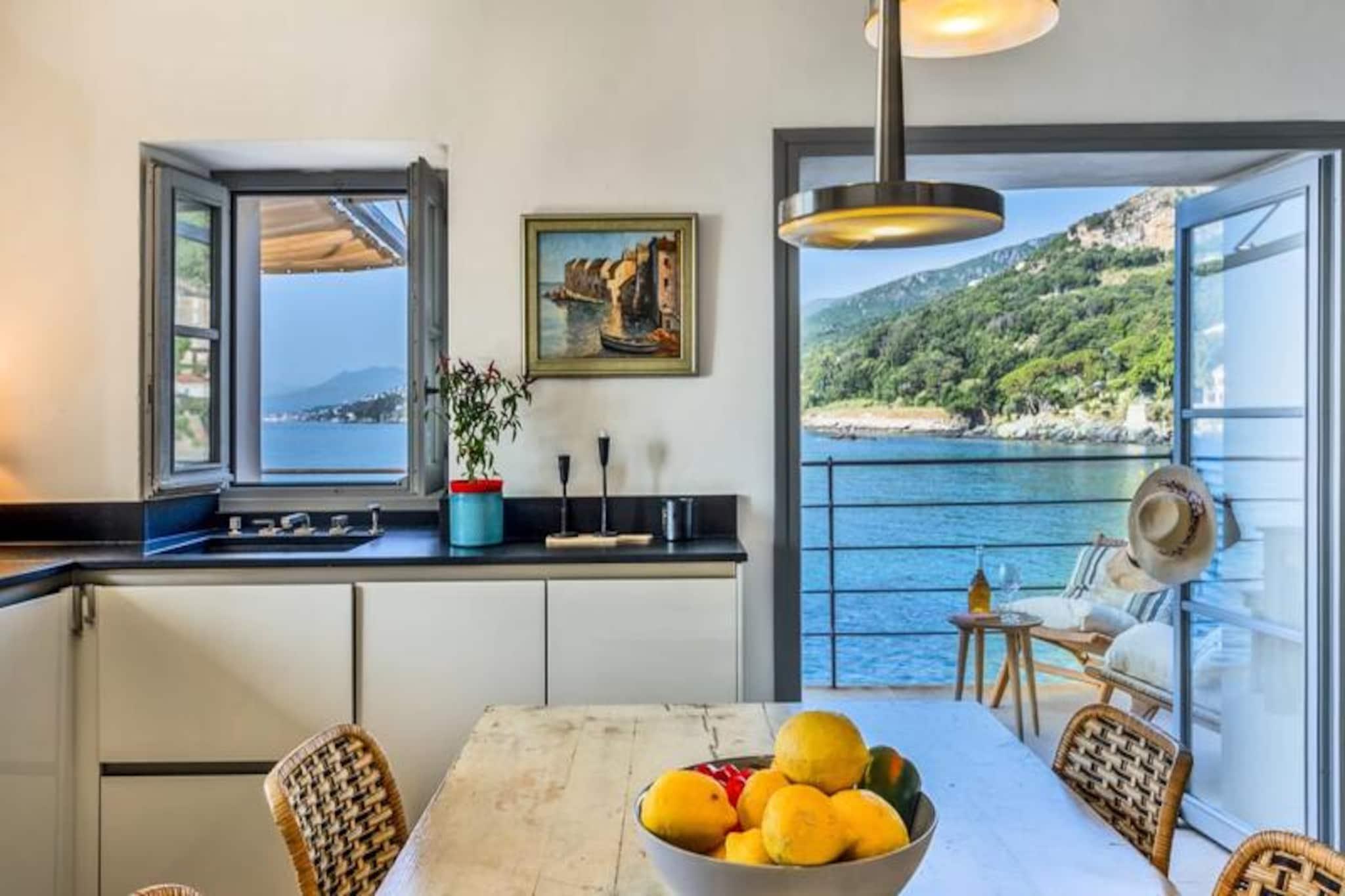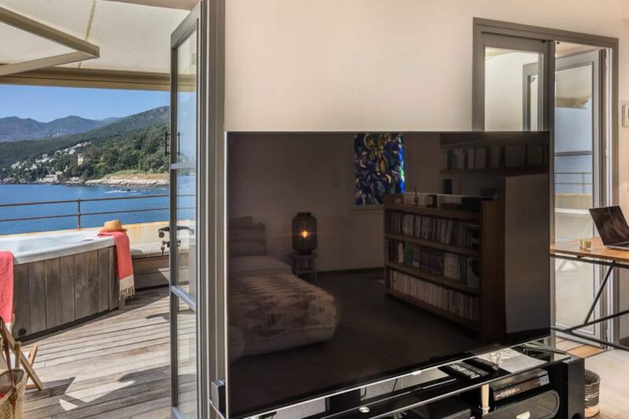 Wo die Wellen die raue Küste Korsikas umspülen, bietet dieses bezaubernde Fischerhaus eine einzigartige Mischung aus Geschichte, Charme und Luxus. Am Fuße des ikonischen Erbalunga-Turms gelegen, lässt Sie dieses Refugium am Meer in die zeitlose Schönheit des Mittelmeers eintauchen. Stellen Sie sich vor, Sie erwachen zum sanften Rauschen des Meeres, treten auf Ihre private Terrasse und lassen Ihren Blick über das schimmernde Wasser schweifen, das sich endlos vor Ihnen erstreckt. Dies ist mehr als nur ein Ferienhaus – es ist eine Einladung, die Seele Korsikas zu erleben. Das Haus erstreckt sich über vier durchdacht gestaltete Ebenen und bietet Familien oder Freundesgruppen komfortablen Wohnraum. Im Erdgeschoss befindet sich eine voll ausgestattete Küche mit Zugang zu einer Terrasse mit Panoramablick auf das Meer – ideal für Mahlzeiten im Freien. Ein gemütliches Schlafzimmer mit eigenem Duschbad und separatem WC vervollständigen diese Ebene. Im ersten Stock erwartet Sie ein Wohnbereich mit Fernseher, der zu einer geräumigen Terrasse mit Whirlpool und Sonnenliegen führt. Hier können Sie entspannen und den genuesischen Turm bewundern. Die unteren Etagen bieten eine luxuriöse Master-Suite mit Whirlpool, weitere Schlafzimmer mit eigenem Bad und sogar direkten Zugang zum Meer von der untersten Ebene. Jedes Detail wurde sorgfältig ausgewählt, um Ihren Komfort zu gewährleisten – von hochwertiger Bettwäsche bis hin zu modernen Annehmlichkeiten. Treten Sie vor die Tür und Sie befinden sich im Herzen von Erbalunga, einem malerischen Dorf mit Kopfsteinpflastergassen, einem Freilichttheater und Geschäften des täglichen Bedarfs wie Bäckerei und Apotheke. Genießen Sie die korsische Küche in den nahegelegenen Restaurants oder erkunden Sie den Fitnessparcours, die Tennisplätze und den Spielplatz. Dank der nur 9 km entfernten Stadt Bastia und der guten Busverbindungen sind Sie der ideale Ausgangspunkt, um die Schätze der Insel zu entdecken. Ob Sie Entspannung oder Abenteuer suchen – dieses Paradies am Wasser verspricht einen unvergesslichen Aufenthalt.
