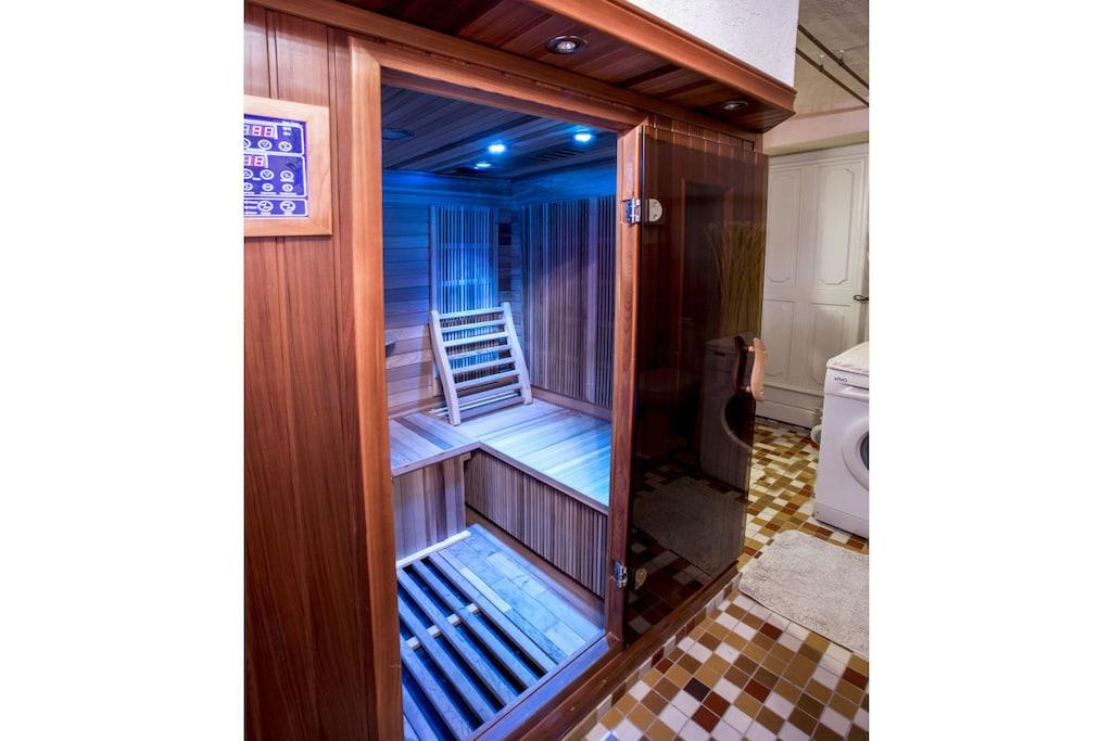 , , Küche(Herd, Toaster, Dunstabzugshaube, Kaffeemaschine, Backofen, Grill, Mikrowelle, Spülmaschine, Kühlschrank, ), Wohn-/Schlafzimmer(TV, Sitzecke), Schlafzimmer(Doppelbett), Schlafzimmer(Doppelbett), Schlafzimmer(Doppelbett), Badezimmer(Dusche, Waschbecken, Toilette), Toilette, Garage, Trockner, Sauna, Waschmaschine, Heizung, Terrasse, Terrasse(, Gartenmöbel, Liegen), Garten(Zentraler Grill, Gartenmöbel, Liegen), Bügelbrett, Bügeleisen, Trockenschrank