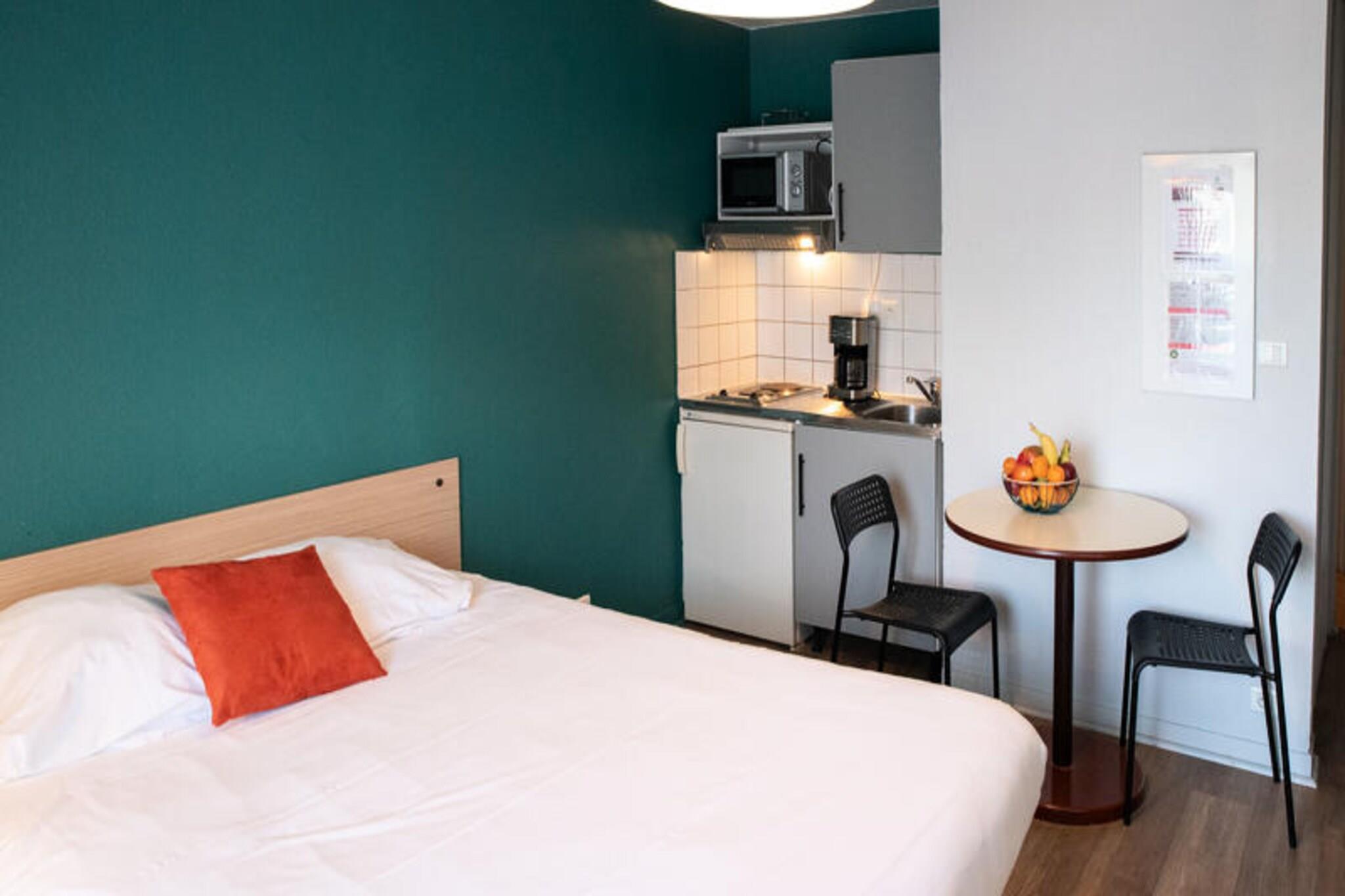 Das Appart'Hôtel Brest liegt im Herzen der Bretagne. Im Stadtzentrum gelegen, ist es nicht weit vom Hafen und dem Meer entfernt. Diese Einrichtung bietet komfortable Apartments für 2 bis 4 Personen. Die Residenz ist sehr gut erschlossen (weniger als 10 Minuten zu Fuß vom TGV-Bahnhof Brest und 15 Minuten mit dem Auto vom Flughafen Brest entfernt) und bietet einen idealen Standort für Besuche in Brest, der Bretagne und dem Finistère. Für Ihren Komfort bietet die Residenz jeden Morgen einen Frühstücksservice sowie kostenlose, sichere Parkplätze. Zum Entspannen können Sie die kostenlose WLAN-Verbindung in den öffentlichen Bereichen nutzen. Kein Catering vor Ort, aber Sie können die große Auswahl an Restaurants rund um die Residenz genießen: Crêperie, Pizzeria, traditionelle Küche, Weltküche... Genießen Sie die Dynamik dieser Stadt, die Schönheit ihrer Meeresbucht sowie die vielen Aktivitäten, die es zu entdecken gibt! Das Nationale Schifffahrtsmuseum, der Motte-Tanguy-Turm, das Capucins-Plateau, Passerelle – Zentrum für zeitgenössische Kunst, das Viertel Saint-Martin, die Avenues Jean Jaurès und de Siam, der Yachthafen Moulin Blanc, der Handelshafen mit seinen zahlreichen Bars und Restaurants Schlosshafen, Kreuzfahrten, das Recouvrance-Boot, Wanderungen an den umliegenden Küsten, Surfen und Segeln, Océanopolis, die Erholung der drei Priester... Wohnzimmer mit Doppelbett Ausgestattete Küchenzeile Badezimmer oder Dusche und WC WLAN-Zugang – inklusive Haustiere erlaubt - 5 € / Tag Kaution (zusätzlich) - 305 Bettwäsche - inklusive Badezimmerwäsche - inklusive Babybett - 10 € / bleiben Endreinigung - 55€ (ohne Küchenbereich und Geschirr) Parken - kostenlos Frühstücksservice: 10 EURO/Erwachsener, 8 EURO/Kind. Service von 7.00 bis 10.00 Uhr Montag bis Freitag und von 8.00 bis 10.00 Uhr Samstag und Sonntag Kurtaxe (zusätzliche Gebühr) – zahlbar vor Ort gemäß den aktuellen Sätzen Fernseher – in den Appartements inklusive