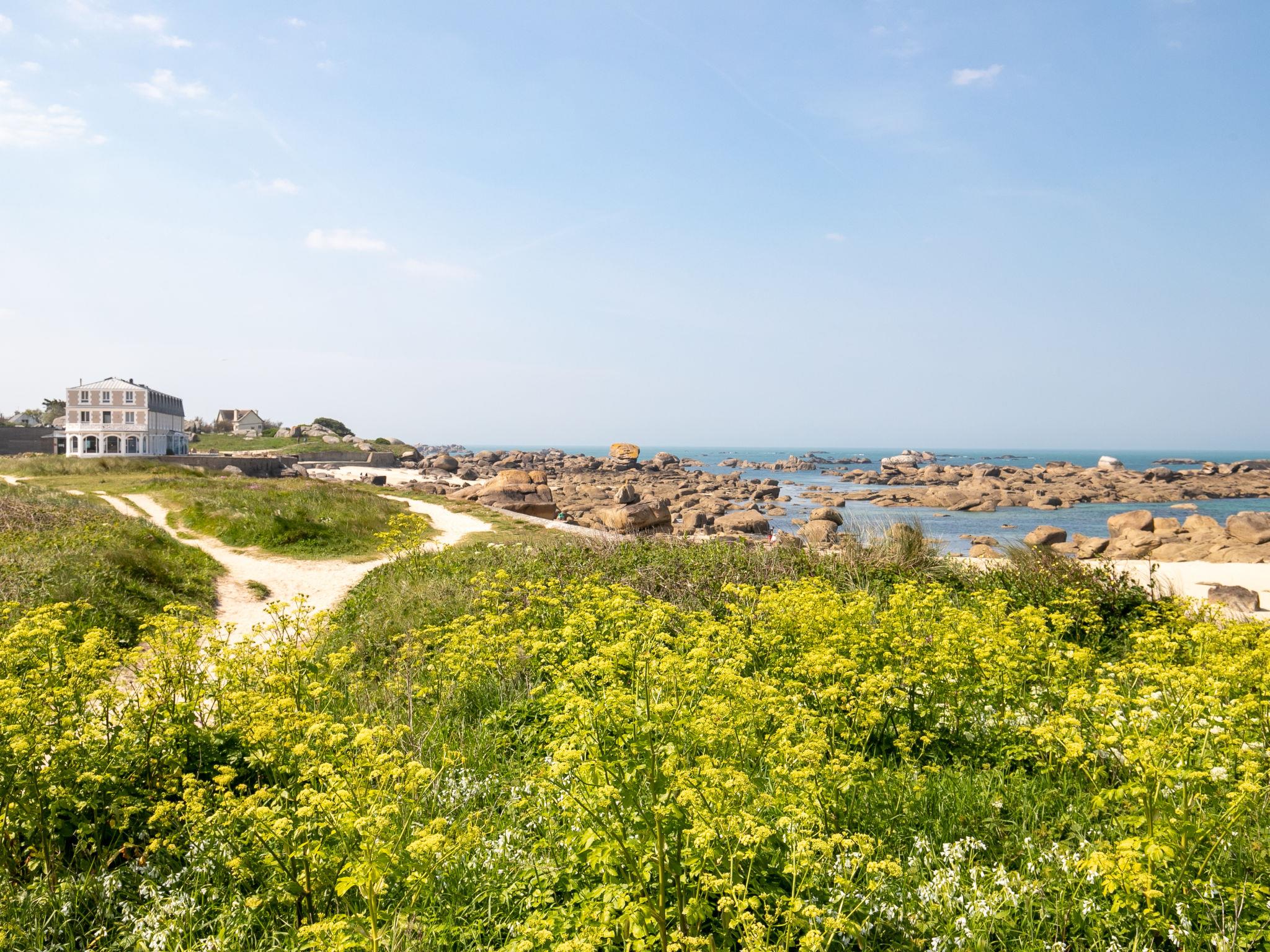 Modernes Zweifamilienhaus "Les Chardons Bleus", Baujahr 2015. Im Ortsteil Les Chardons Bleus, 2.3 km vom Zentrum von Brignogan-Plage, 5.5 km vom Zentrum von Kerlouan, 14 km vom Zentrum von Lesneven, in einem Wohnquartier, 180 m vom Meer, 180 m vom Strand. Zur Mitbenutzung: Grundstück 900 m2, gepflegter Garten mit Rasen und Pflanzen, Hof. Zur Alleinbenutzung: gepflegter Garten 250 m2 (nicht eingezäunt) mit Rasen und Pflanzen. Im Hause: Einstellraum für Fahrräder. Parkplatz (für 2 Autos) auf dem Grundstück. Einkaufsgeschäft 2.3 km, Lebensmittelgeschäft 1.9 km, Supermarkt 5.5 km, Restaurant 2.3 km, Bushaltestelle "Centre Brignogan-Plage" 1.7 km, Sandstrand "Les Chardons Bleus" 180 m, Hallenbad 15 km. Jacht-Hafen 600 m, Golfplatz (18 Loch) 36 km, Surfschule, Segelschule 600 m, Wanderwege ab Haus 180 m. Nahe gelegene Sehenswürdigkeiten: Meneham, Kerlouan 3 km, Reserve ornithologique, Dunes de Keremma 10 km, Plouescat 18 km, Plouguerneau, Pays des Abers 20 km, Roscoff, Jardin exotique, Île de Batz 40 km, Océanopolis Brest 40 km. Wandergebiete: GR34, sentier des douaniers 180 m.