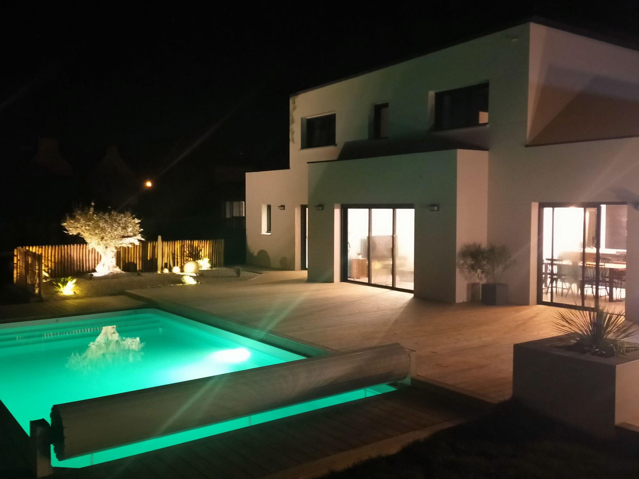 Sehr modernes, schönes, komfortables Einfamilienhaus "Au Gré du Vent", Baujahr 2022. 200 m vom Zentrum von Brignogan-Plage, 11 km vom Zentrum von Lesneven, in einem Wohnquartier, 300 m vom Meer, 300 m vom Strand, Richtung Südwesten. Zur Alleinbenutzung: Grundstück 800 m2 (eingezäunt), gepflegter Garten mit Rasen und Pflanzen, Schwimmbad eckig, beheizt, nicht einsehbar (8 x 4 m, 32 m2, 150 cm tief, saisonale Verfügbarkeit: 20.Mai. - 28.Sep.) mit Rollladenabdeckung. WC im Poolbereich, Aussendusche, Poolpflege durch den Besitzer/Gärtner. Parkplatz (für 4 Autos) auf dem Grundstück, Einzelgarage. Einkaufsgeschäft 11 km, Lebensmittelgeschäft 550 m, Supermarkt 500 m, Einkaufszentrum 13 km, Restaurant 650 m, Bäckerei 3 km, Café 500 m, Bushaltestelle "Centre" 400 m, Sandstrand "Plage de sable fin" 300 m. Golfplatz (18 Loch) 35 km, Surfschule, Segelschule 600 m, Tennis 1.5 km, Wanderwege ab Haus 300 m. Nahe gelegene Sehenswürdigkeiten: Meneham, Kerlouan 5 km, Dunes de Keremma, Réserve ornithologique 10 km, Plouguerneau, Pays des Abers 2 km, Roscoff, Jardin exotique, Île de Batz 36 km, Château de Kerjean 25 km, Brest, Océanopolis 40 km. Wandergebiete: GR34, sentier des douaniers 300 m. Bitte beachten: Flugplatz 34 km vom Haus.
