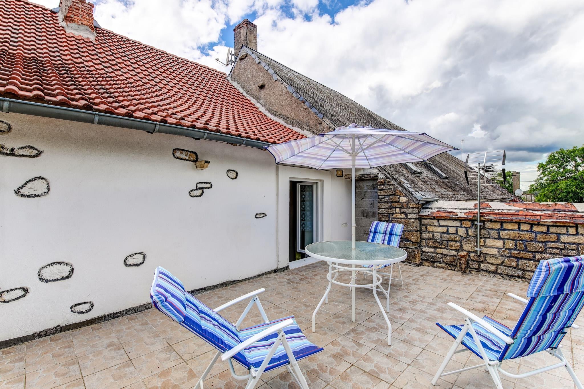Betreten Sie ein gemütliches Ferienhaus im Herzen von Brinon-sur-Beuvron, wo rustikaler Charme nahtlos mit modernem Komfort verschmilzt. Dieses 3-Zimmer-Refugium ist ideal für Paare oder kleine Familien und bietet Platz für bis zu 4 Gäste. Die überdachte Terrasse lädt zum Morgenkaffee oder abendlichen Weintrinken unter dem sanften Himmel Burgunds ein. Entspannen Sie im geräumigen Wohnzimmer am Holzofen, schauen Sie einen Film auf dem DVD-Player oder genießen Sie nach einem erlebnisreichen Tag ein herzhaftes Essen im Essbereich. Haustiere sind hier willkommen, bringen Sie Ihre vierbeinigen Begleiter also mit und erleben Sie einen unvergesslichen Urlaub. Schlendern Sie durch malerische Dorfgassen, genießen Sie gemütliche Spaziergänge entlang des nahegelegenen Flusses Beuvron oder erkunden Sie die lokalen Wanderwege, auf denen Hunde an der Leine frei herumlaufen dürfen. Die private Terrasse und der kleine Garten des Hauses laden dazu ein, dass sich Ihre Haustiere nach einem Tag im Freien entspannen können. Die örtlichen Parks und Landwege sind nur wenige Minuten entfernt und bieten viel Platz für spielerische Nachmittage. Genießen Sie die Aromen Burgunds in charmanten Restaurants nur 1 km entfernt, die regionale Köstlichkeiten und erlesene Weine servieren. Holen Sie sich frische Zutaten aus dem nur 16 Minuten entfernten Supermarkt und bereiten Sie Ihre eigenen Festmahle in der voll ausgestatteten Küche zu - inklusive Espressomaschine für entspannte, glückselige Morgen. Ob Sie zum Entspannen, Erkunden oder Genießen der französischen Gastronomie hier sind - dieses gemütliche Refugium verspricht einen Aufenthalt voller Charme, Komfort und einen herzlichen Empfang für Sie und Ihre Haustiere.