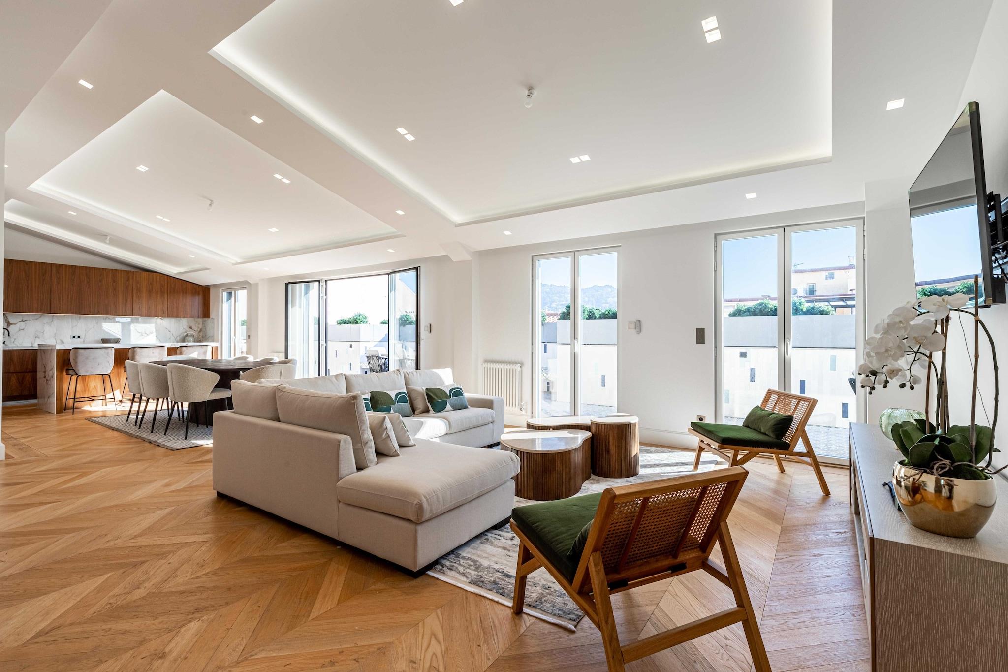Luxusapartment mit 188 m², 2 Minuten vom Palais des Festivals entfernt. - Mit dem Flugzeug: Der Flughafen Nizza ist 30 Minuten von Cannes entfernt - Privater Fahrer vom Flughafen Nizza: Reservierung auf Anfrage - Mit dem Auto: Öffentlicher Parkplatz in 100 m Entfernung - Mit dem Zug: Der Bahnhof ist nur wenige Gehminuten entfernt Während Ihres Aufenthalts in Cannes haben Sie die Möglichkeit, einige wundervolle Ziele in der Nähe zu erkunden, von denen jedes ein einzigartiges und unvergessliches Erlebnis bietet. Antibes und sein Kap:Nur wenige Kilometer von Cannes entfernt heißt Sie die charmante Stadt Antibes willkommen. Erkunden Sie ihr reiches historisches Erbe, darunter das Picasso-Museum, das in einem herrlichen Schloss untergebracht ist. Schlendern Sie durch die gepflasterten Straßen der Altstadt von Antibes, wo der provenzalische Markt Ihre Sinne mit seinen Düften und Aromen erweckt. Aber vergessen Sie nicht, sich zum Cap d'Antibes zu wagen, wo Küstenpfade atemberaubende Ausblicke auf das Mittelmeer bieten. Les Trayas und seine roten Felsen: Westlich von Cannes liegt das Naturparadies Les Trayas, ein markanter Kontrast zum städtischen Leben. Erkunden Sie Berg- und Waldlandschaften, die sich harmonisch in die Mittelmeerküste einfügen. Wanderfreunde werden von den Wanderwegen zu den symbolträchtigen roten Felsen begeistert sein, die einen atemberaubenden Panoramablick auf das Meer bieten. Grasse und sein Parfüm: Nicht weit von Cannes liegt die Stadt Grasse, die als Hauptstadt des Parfüms weltberühmt ist. Sie haben die Möglichkeit, renommierte Parfümfabriken wie Fragonard, Galimard und Molinard zu besuchen, wo Sie die Kunst der Parfümherstellung entdecken und sogar Ihr eigenes Parfüm kreieren können. Schlendern Sie durch die mittelalterlichen Straßen von Grasse, die voller Geschichte und berauschender Düfte sind.