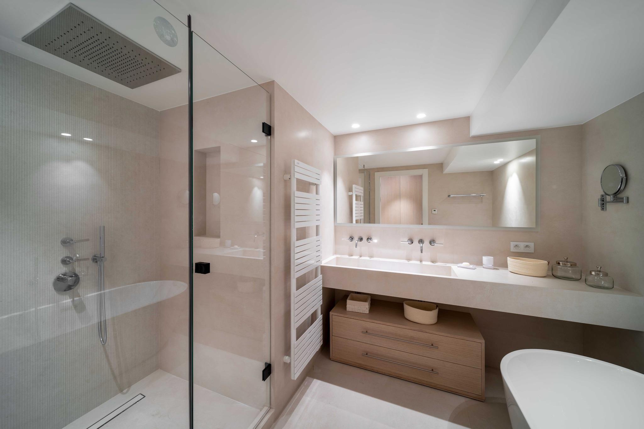 Parterre: (Wohnzimmer(TV), offene Küche(Herd, Wasserkocher, Toaster, Kaffeemaschine, Backofen, Mikrowelle, Spülmaschine, Kühlschrank, , ), Schlafzimmer mit Badezimmer(Doppelbett, Dusche, Toilette), Schlafzimmer mit Badezimmer(Doppelbett, Dusche, Toilette), Schlafzimmer mit Badezimmer(Doppelbett, Dusche, Toilette), Schlafzimmer mit Badezimmer(Doppelbett, Doppelbett, Dusche, Toilette)) , , , , , , Erste-Hilfe-Station, Waschmaschine, Balkon oder Terrasse, Heizung, Klimaanlage, Bügeleisen, Föhn, Handtücher/Bettwäsche (inklusive), ,