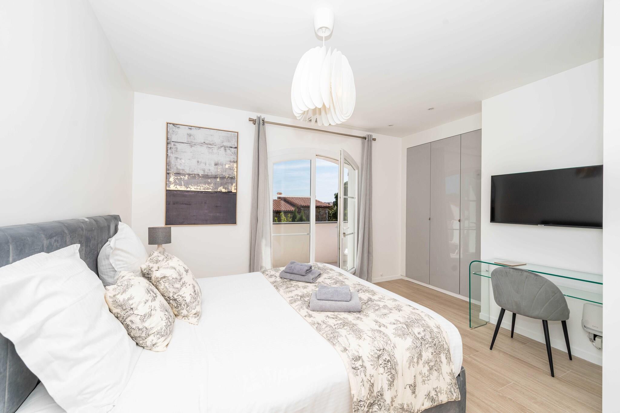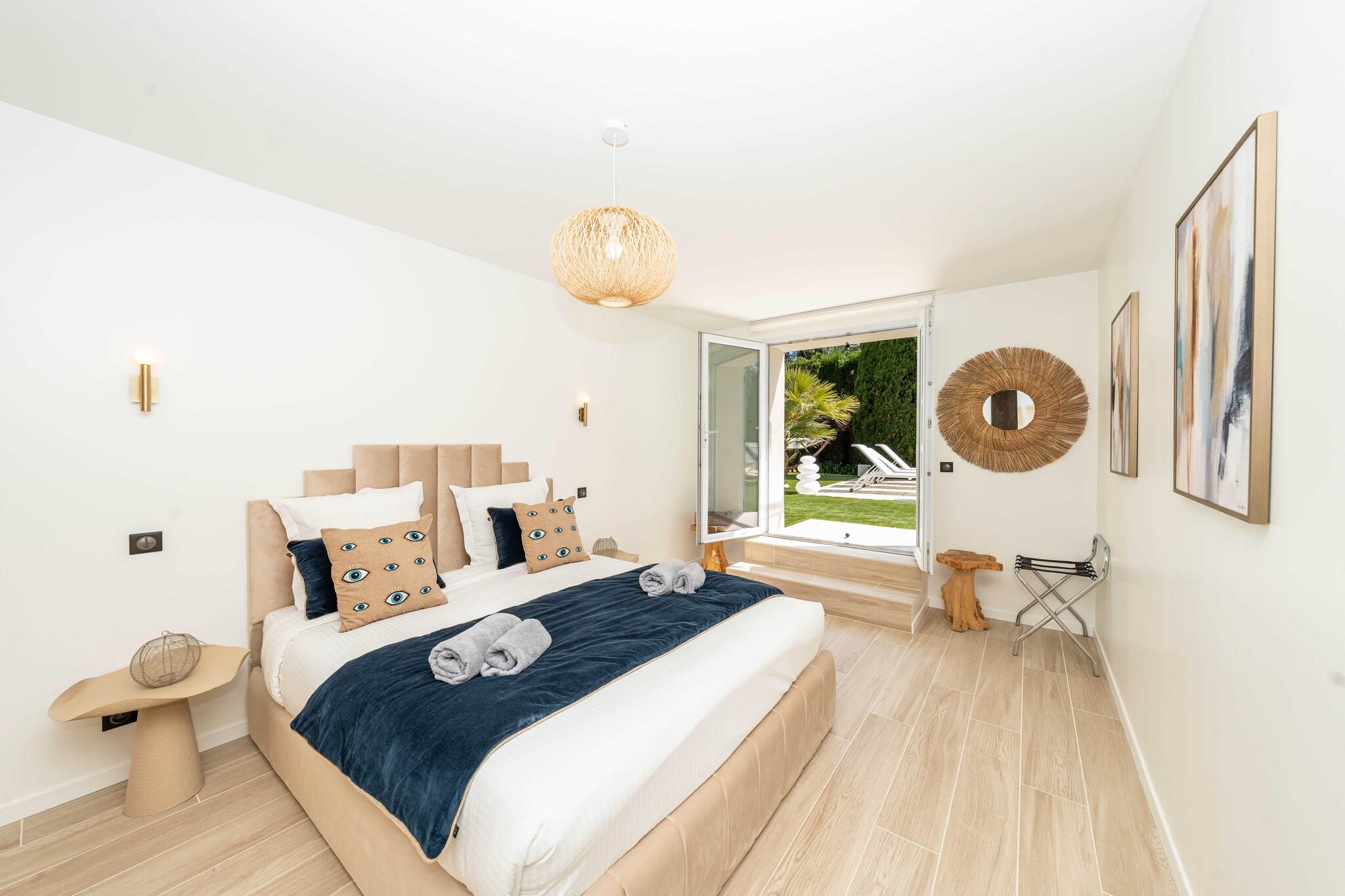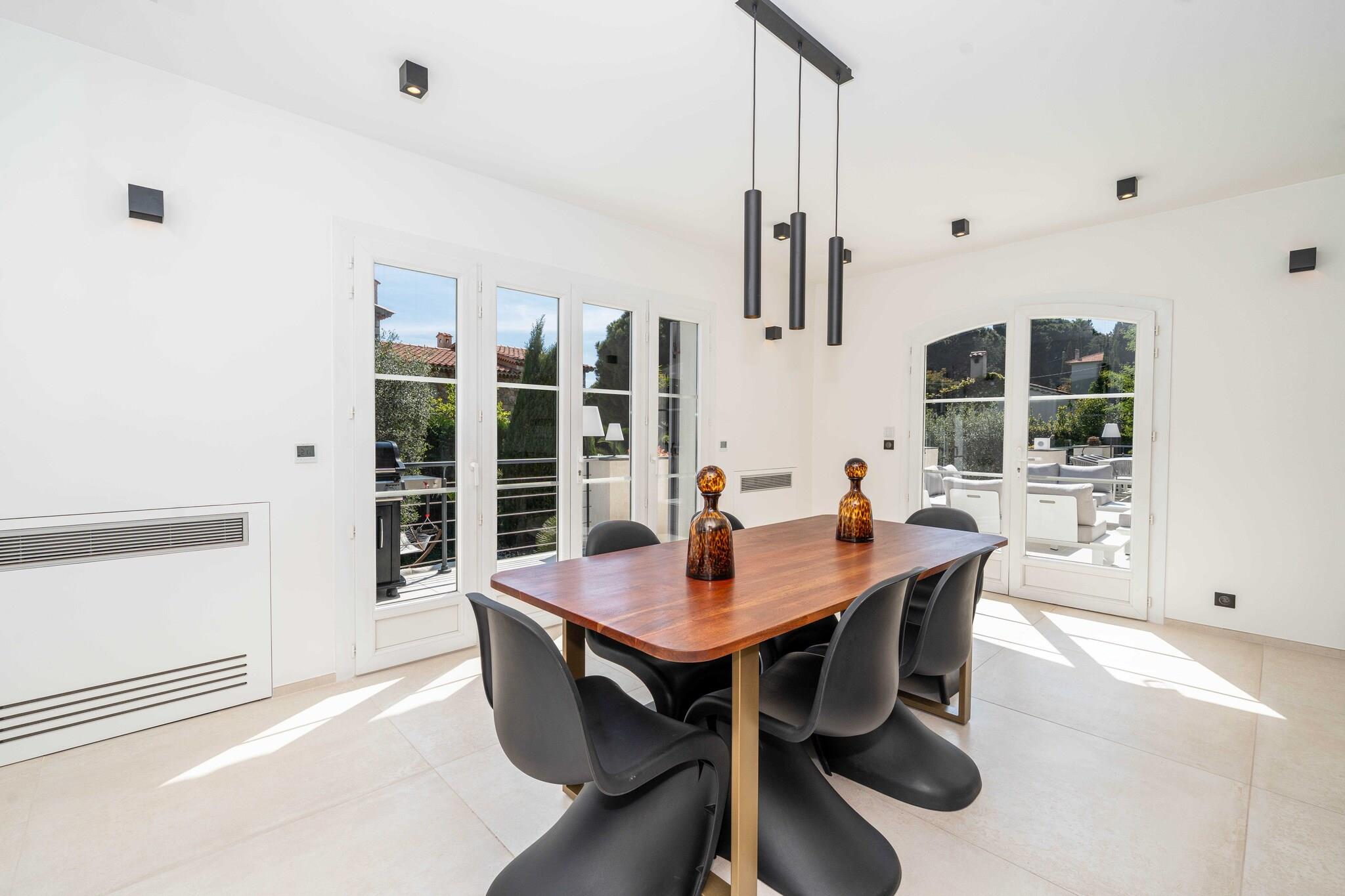 Checkmyguest bietet Ihnen eine luxuriöse, 350 m² große Villa mit beheiztem Pool, Sauna, Hamam und Fitnessraum, eingebettet in eine grüne Umgebung, nur 10 Minuten von der Croisette entfernt. Ein außergewöhnlicher Ort, der Luxus, Komfort und Ruhe für einen unvergesslichen Aufenthalt in Cannes vereint. Die Villa ist sehr gut angebunden und bietet eine bequeme Anbindung: – 10 Gehminuten von der Croisette und dem Stadtzentrum entfernt – SNCF-Bahnhof Cannes weniger als 10 Autominuten entfernt – Bushaltestellen in unmittelbarer Nähe – Flughafen Nizza Côte d'Azur ca. 30 Autominuten entfernt – Fahrrad-, Auto- und Rollerverleihstationen in der Nähe – Sicherer Privatparkplatz für 4 Fahrzeuge vor Ort
