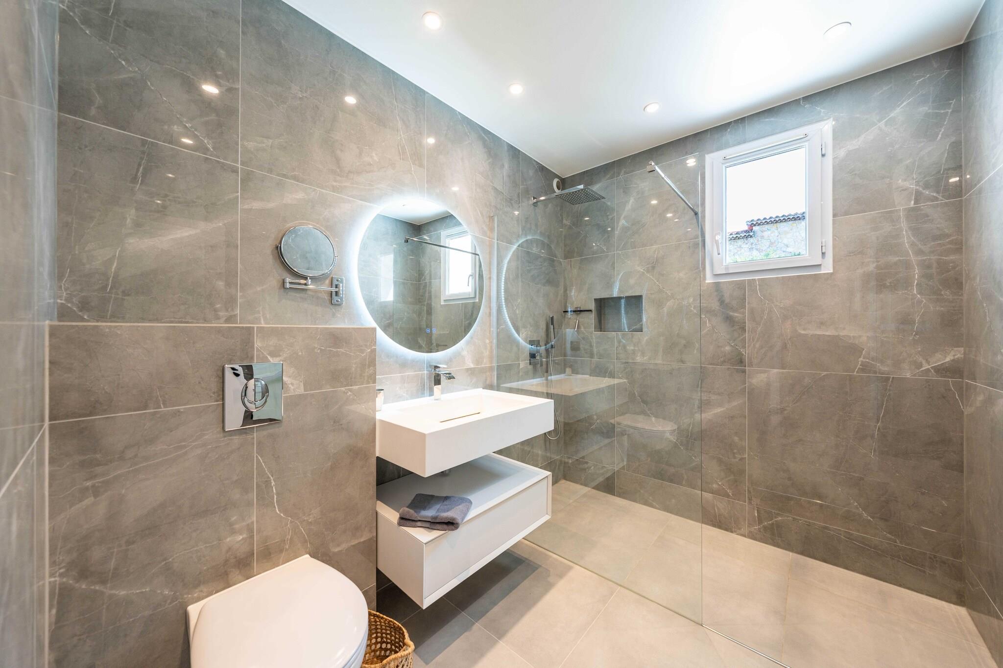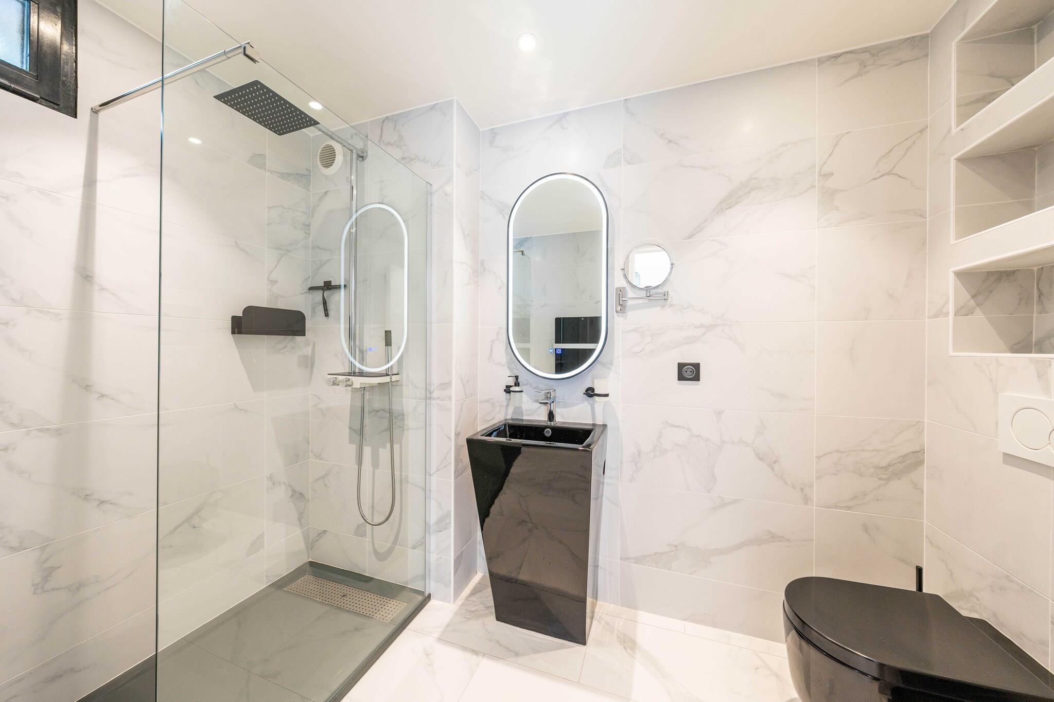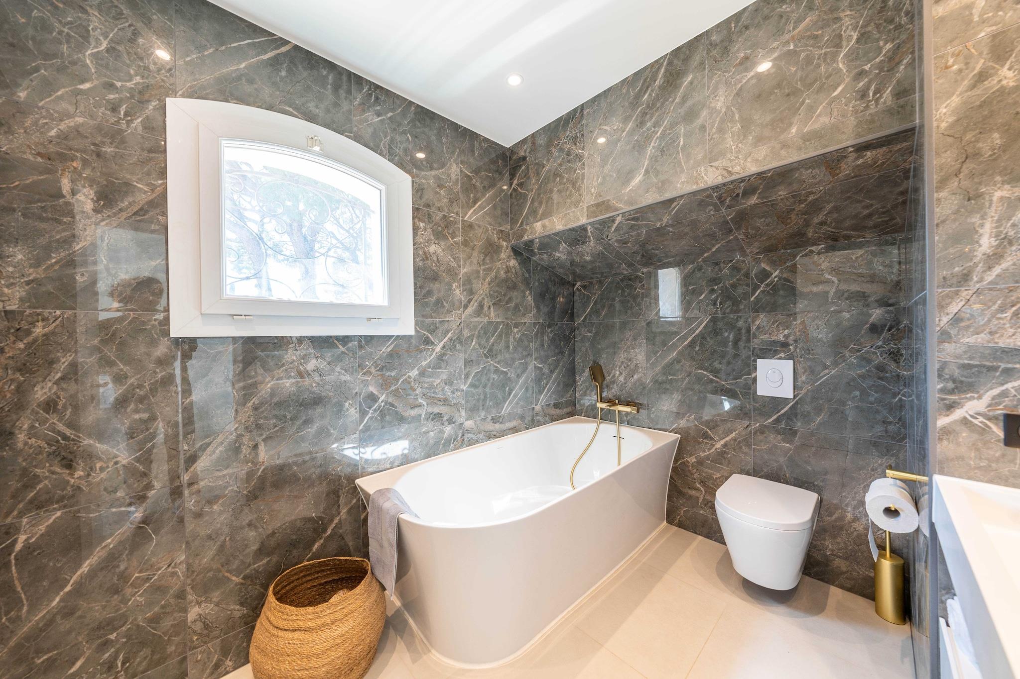 Checkmyguest bietet Ihnen eine luxuriöse, 350 m² große Villa mit beheiztem Pool, Sauna, Hamam und Fitnessraum, eingebettet in eine grüne Umgebung, nur 10 Minuten von der Croisette entfernt. Ein außergewöhnlicher Ort, der Luxus, Komfort und Ruhe für einen unvergesslichen Aufenthalt in Cannes vereint. Die Villa ist sehr gut angebunden und bietet eine bequeme Anbindung: – 10 Gehminuten von der Croisette und dem Stadtzentrum entfernt – SNCF-Bahnhof Cannes weniger als 10 Autominuten entfernt – Bushaltestellen in unmittelbarer Nähe – Flughafen Nizza Côte d'Azur ca. 30 Autominuten entfernt – Fahrrad-, Auto- und Rollerverleihstationen in der Nähe – Sicherer Privatparkplatz für 4 Fahrzeuge vor Ort