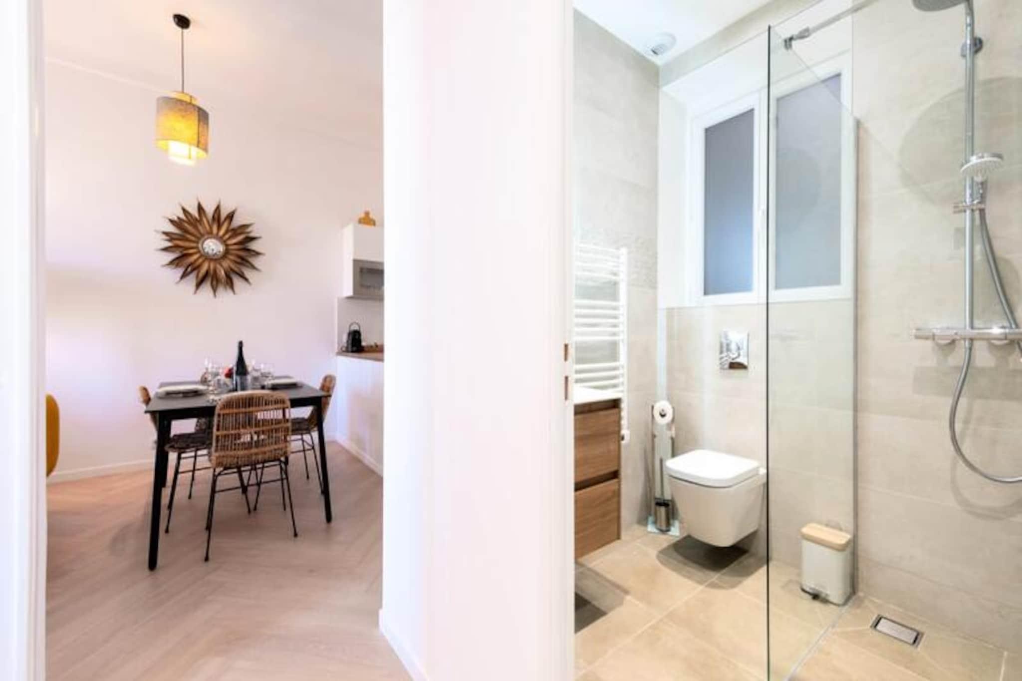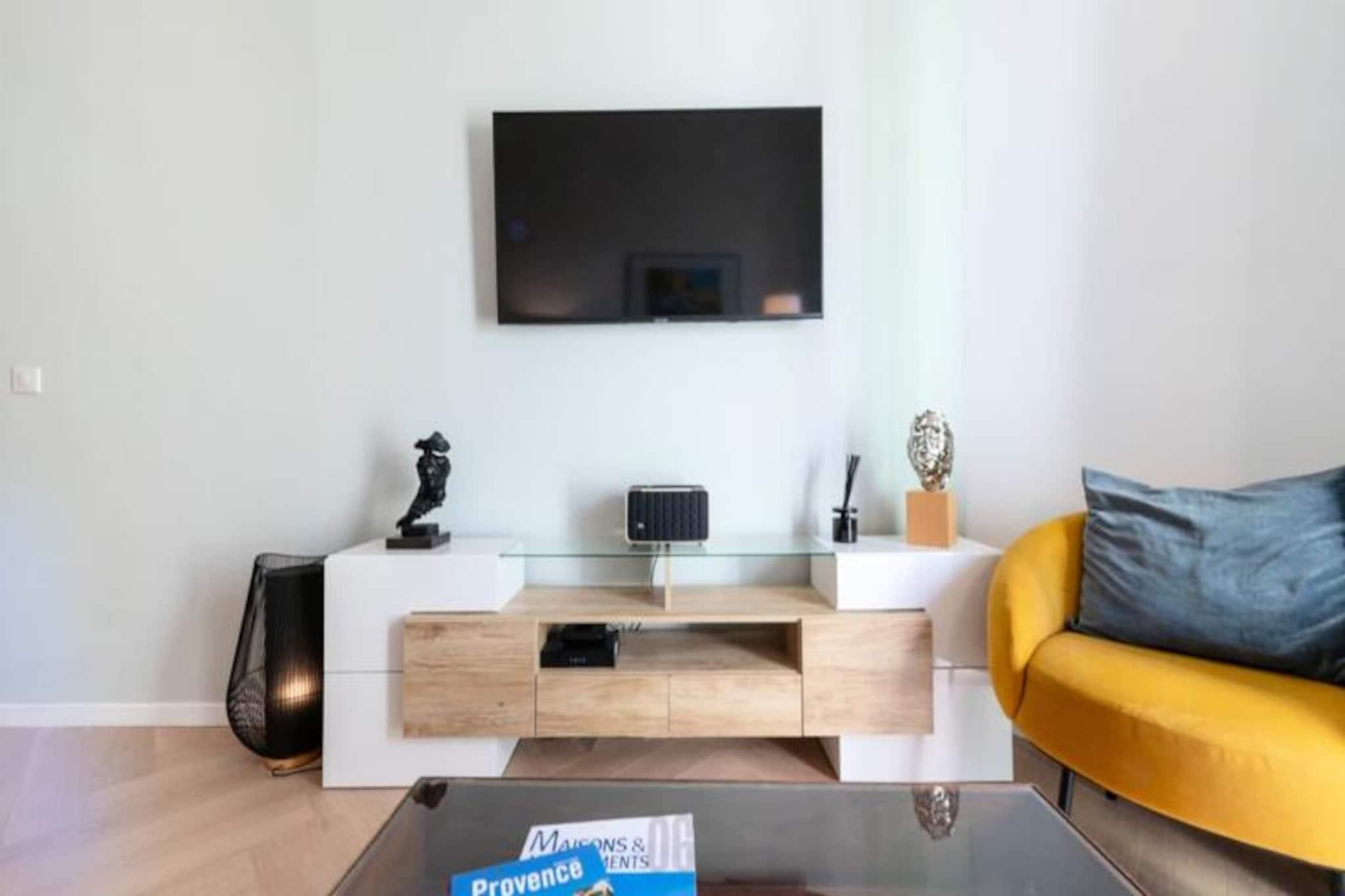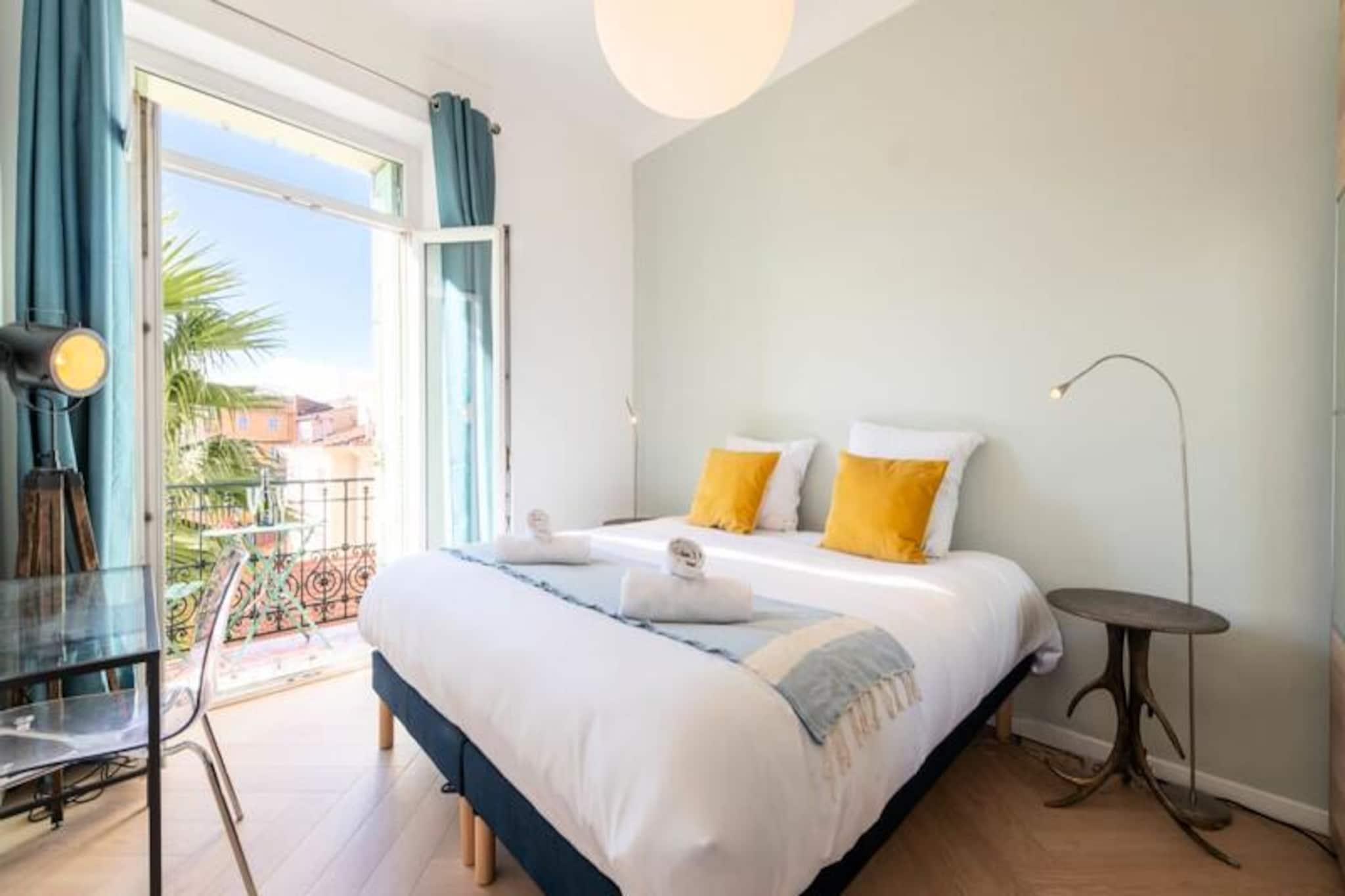 Tauchen Sie ein in das pulsierende Herz von Cannes und erleben Sie in diesem stilvollen Apartment die perfekte Mischung aus modernem Komfort und ikonischem Charme. Nur wenige Schritte von der legendären Croisette und dem Palais des Festivals entfernt, lädt Sie diese Unterkunft ein, in den Glamour und die Faszination der Côte d’Azur einzutauchen. Ob Sie wegen der Filmfestspiele, für einen romantischen Kurzurlaub oder einfach nur zum Entspannen am Meer hier sind – dieses Apartment bietet eine unschlagbare Lage und einen ruhigen Rückzugsort vom geschäftigen Treiben der Stadt. Das Apartment besticht durch sein durchdachtes Design mit hochwertigen Materialien und hellen, luftigen Räumen. Zwei geräumige Schlafzimmer, jeweils mit Kingsize-Bett, Kleiderschrank und eigenem Balkon, bieten eine friedliche Oase zum Entspannen. Das lichtdurchflutete Wohnzimmer verfügt über ein bequemes Schlafsofa und einen Smart-TV – perfekt für gemütliche Abende. Kochbegeisterte werden die voll ausgestattete offene Küche lieben, in der Sie Mahlzeiten zubereiten und gleichzeitig mit Ihren Gästen in Kontakt bleiben können. Zwei moderne Duschbäder sorgen für Komfort und Privatsphäre für alle. Die in jedem Zimmer regulierbare Klimaanlage garantiert ganzjährigen Komfort, während die privaten Balkone einen bezaubernden Blick auf den Palais des Festivals und die umliegenden Straßen bieten. Nur wenige Schritte trennen Sie von den berühmtesten Sehenswürdigkeiten von Cannes. Schlendern Sie die Rue d'Antibes entlang, entdecken Sie die luxuriösen Boutiquen und Sandstrände der Croisette oder genießen Sie die lokalen Spezialitäten auf dem Mercat de Forville. Auch die malerische Altstadt von Le Suquet und der lebhafte Alte Hafen sind bequem zu erreichen und bieten Ihnen einen Einblick in die reiche Geschichte und die pulsierende Kultur von Cannes. Abenteuerlustige können Ausflüge zu den Lérins-Inseln unternehmen, die nur eine kurze Bootsfahrt entfernt liegen. Mit seiner erstklassigen Lage, der luxuriösen Ausstattung und der direkten Anbindung an die Highlights von Cannes ist dieses Apartment Ihr Tor zu einem unvergesslichen Urlaub an der Riviera. Lassen Sie sich vom Zauber der Côte d'Azur verzaubern und schaffen Sie Erinnerungen, die ein Leben lang halten.