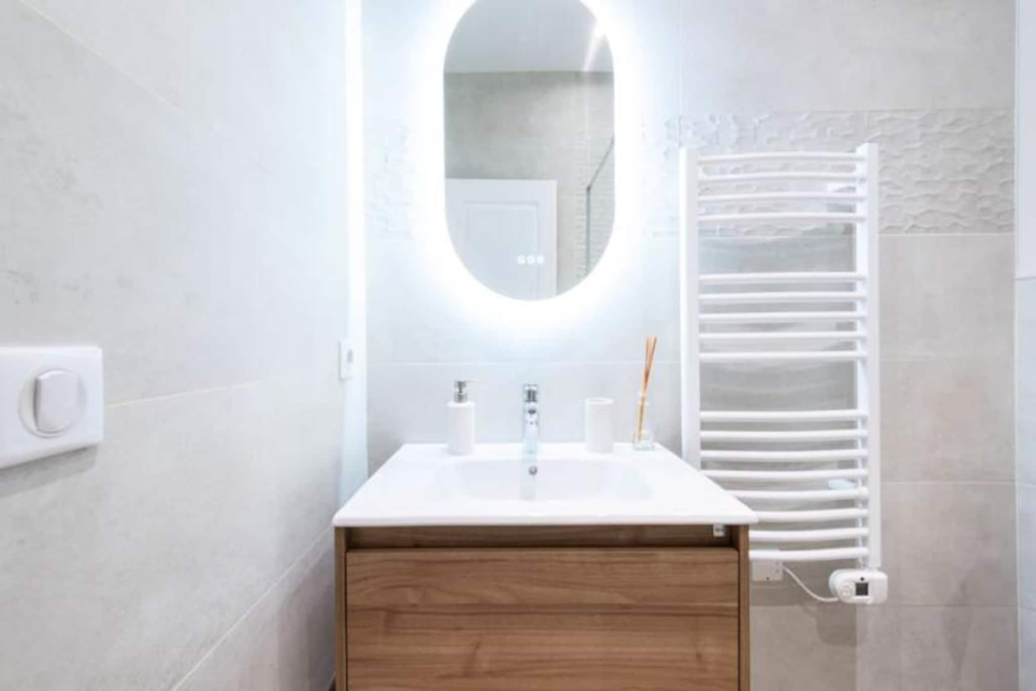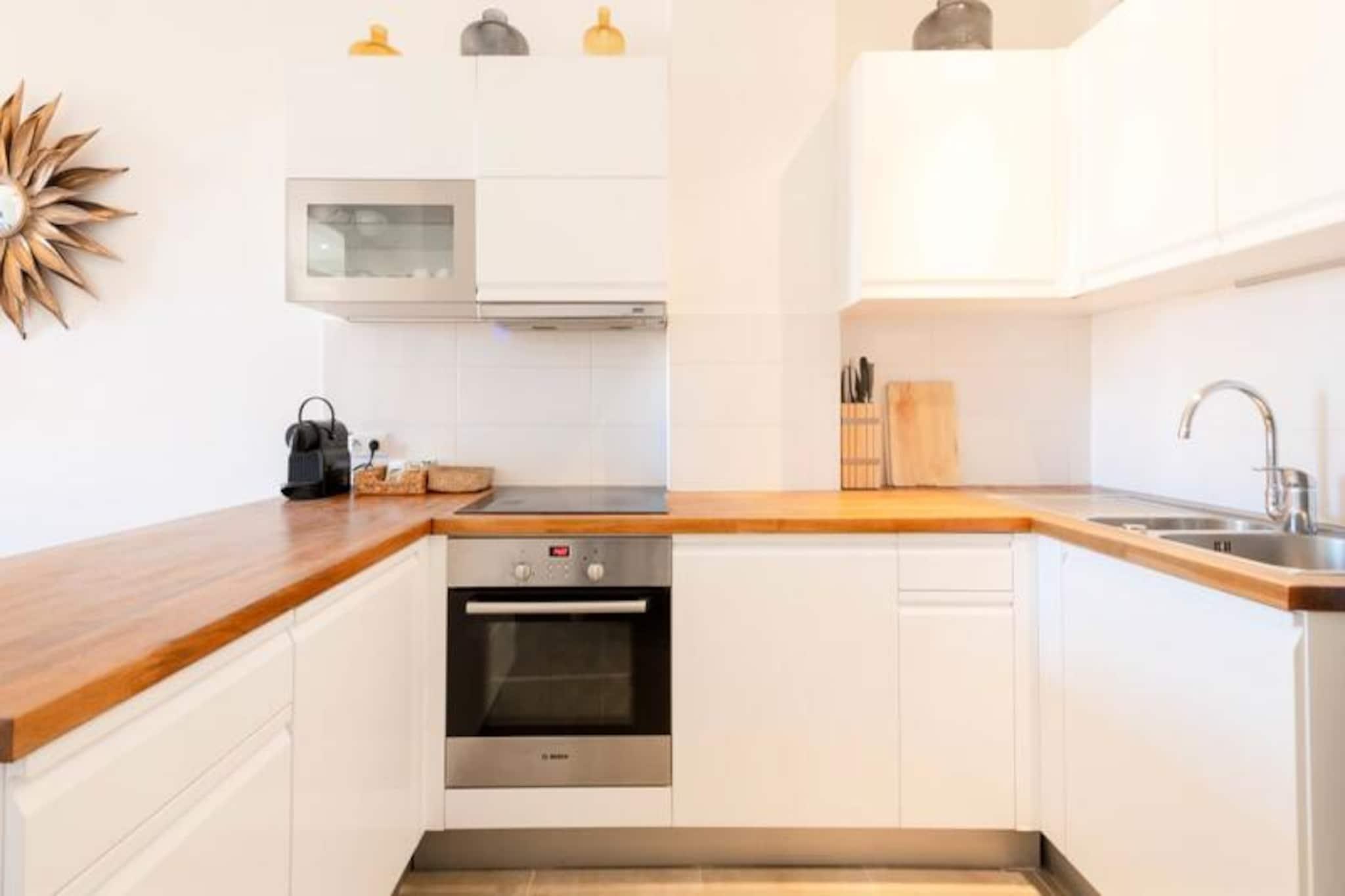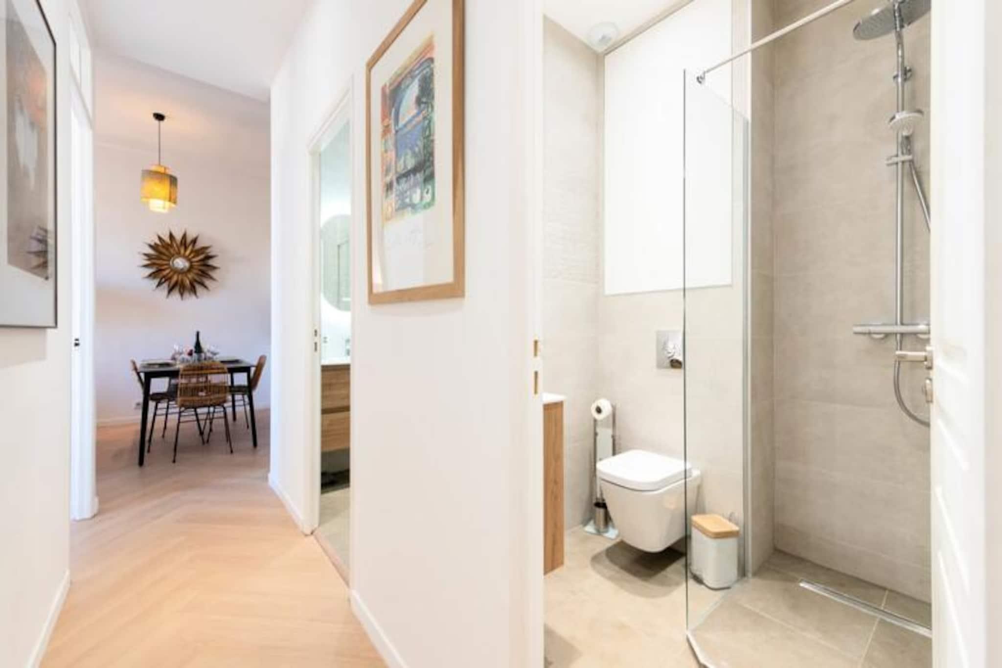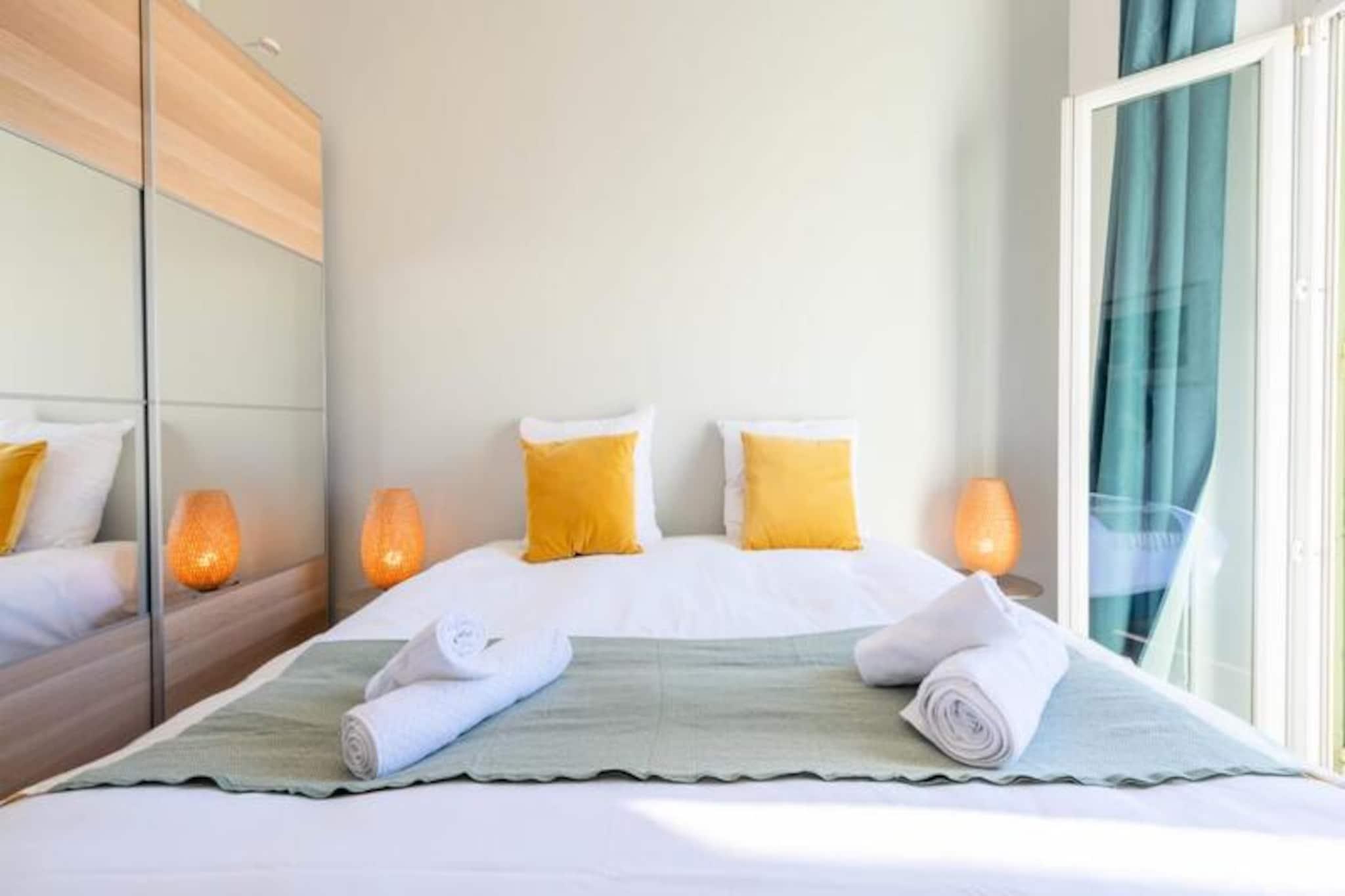 Tauchen Sie ein in das pulsierende Herz von Cannes und erleben Sie in diesem stilvollen Apartment die perfekte Mischung aus modernem Komfort und ikonischem Charme. Nur wenige Schritte von der legendären Croisette und dem Palais des Festivals entfernt, lädt Sie diese Unterkunft ein, in den Glamour und die Faszination der Côte d’Azur einzutauchen. Ob Sie wegen der Filmfestspiele, für einen romantischen Kurzurlaub oder einfach nur zum Entspannen am Meer hier sind – dieses Apartment bietet eine unschlagbare Lage und einen ruhigen Rückzugsort vom geschäftigen Treiben der Stadt. Das Apartment besticht durch sein durchdachtes Design mit hochwertigen Materialien und hellen, luftigen Räumen. Zwei geräumige Schlafzimmer, jeweils mit Kingsize-Bett, Kleiderschrank und eigenem Balkon, bieten eine friedliche Oase zum Entspannen. Das lichtdurchflutete Wohnzimmer verfügt über ein bequemes Schlafsofa und einen Smart-TV – perfekt für gemütliche Abende. Kochbegeisterte werden die voll ausgestattete offene Küche lieben, in der Sie Mahlzeiten zubereiten und gleichzeitig mit Ihren Gästen in Kontakt bleiben können. Zwei moderne Duschbäder sorgen für Komfort und Privatsphäre für alle. Die in jedem Zimmer regulierbare Klimaanlage garantiert ganzjährigen Komfort, während die privaten Balkone einen bezaubernden Blick auf den Palais des Festivals und die umliegenden Straßen bieten. Nur wenige Schritte trennen Sie von den berühmtesten Sehenswürdigkeiten von Cannes. Schlendern Sie die Rue d'Antibes entlang, entdecken Sie die luxuriösen Boutiquen und Sandstrände der Croisette oder genießen Sie die lokalen Spezialitäten auf dem Mercat de Forville. Auch die malerische Altstadt von Le Suquet und der lebhafte Alte Hafen sind bequem zu erreichen und bieten Ihnen einen Einblick in die reiche Geschichte und die pulsierende Kultur von Cannes. Abenteuerlustige können Ausflüge zu den Lérins-Inseln unternehmen, die nur eine kurze Bootsfahrt entfernt liegen. Mit seiner erstklassigen Lage, der luxuriösen Ausstattung und der direkten Anbindung an die Highlights von Cannes ist dieses Apartment Ihr Tor zu einem unvergesslichen Urlaub an der Riviera. Lassen Sie sich vom Zauber der Côte d'Azur verzaubern und schaffen Sie Erinnerungen, die ein Leben lang halten.