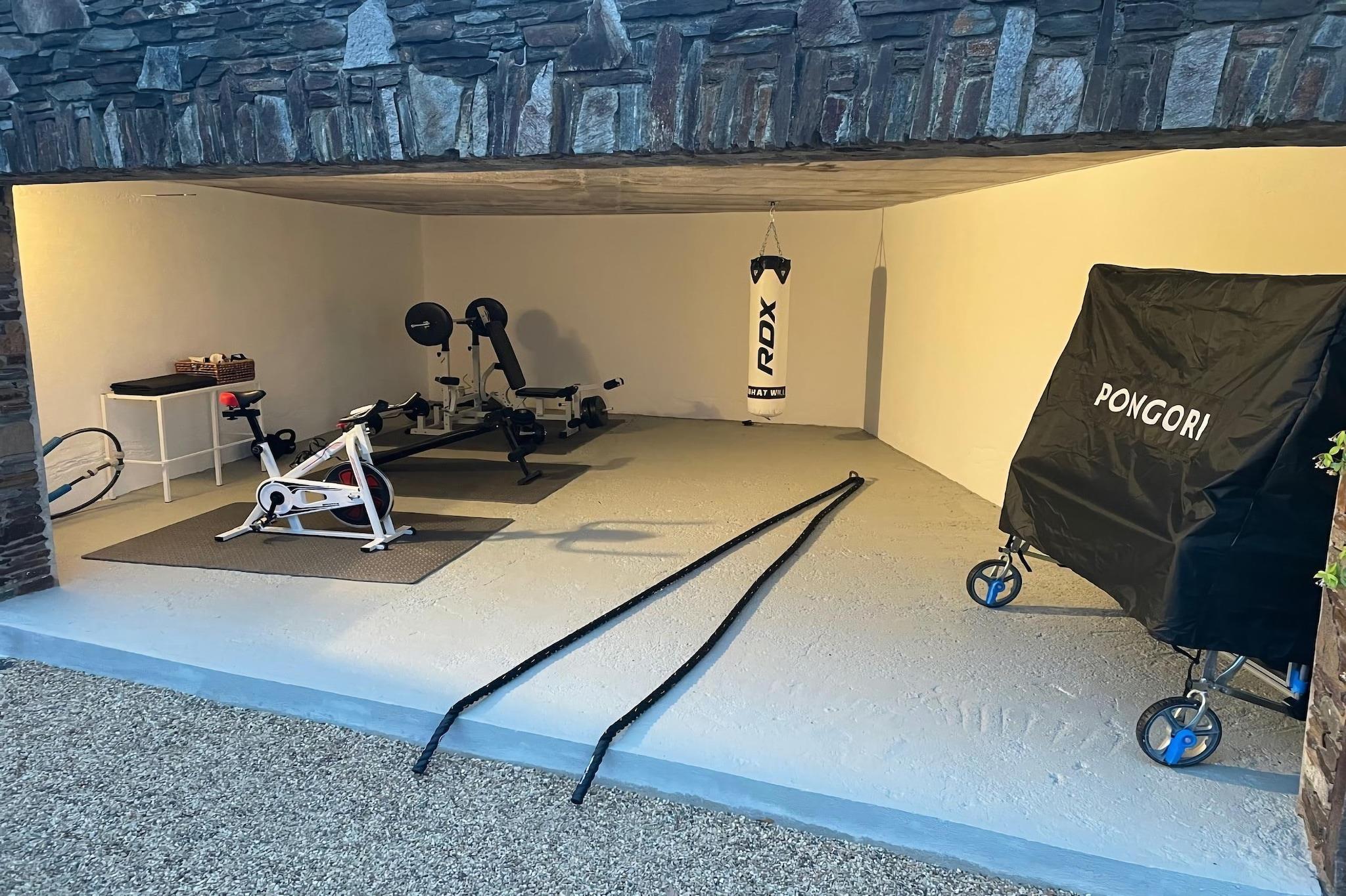 Parterre: (Wohnzimmer(TV, Dekokamin, Sitzecke), Esszimmer(Esstisch), Küche(Wasserkocher, Toaster, Kochherd, Kaffeemaschine, Espressomaschine, Backofen, Spülmaschine, Kühlschrank), Schlafzimmer(Doppelbett, Balkon oder Terrasse), Badezimmer(Badewanne, Dusche, Waschbecken, Bidet, Föhn), Toilette, Terrasse) In der 1. Etage: (Schlafzimmer(Doppelbett, Balkon oder Terrasse), Schlafzimmer(Doppelbett), Badezimmer(Dusche, Waschbecken, Toilette, Föhn), Arbeitszimmer) Souterrain: (Wohnzimmer, offene Küche(Wasserkocher, Kochherd, Espressomaschine, Backofen, Kühl-/Gefrierkombination), Schlafzimmer(Doppelbett), Schlafzimmer(Doppelbett), Badezimmer(Dusche, Waschbecken, Toilette, Föhn), Waschraum(Trockner, Waschmaschine), Terrasse) Fitnessraum, Klimaanlage, Terrasse, Grill(Gas), Parkplatz, Pool(alleinige Nutzung), Boulebahn, Tischtennisplatte, Fahrräder verfügbar