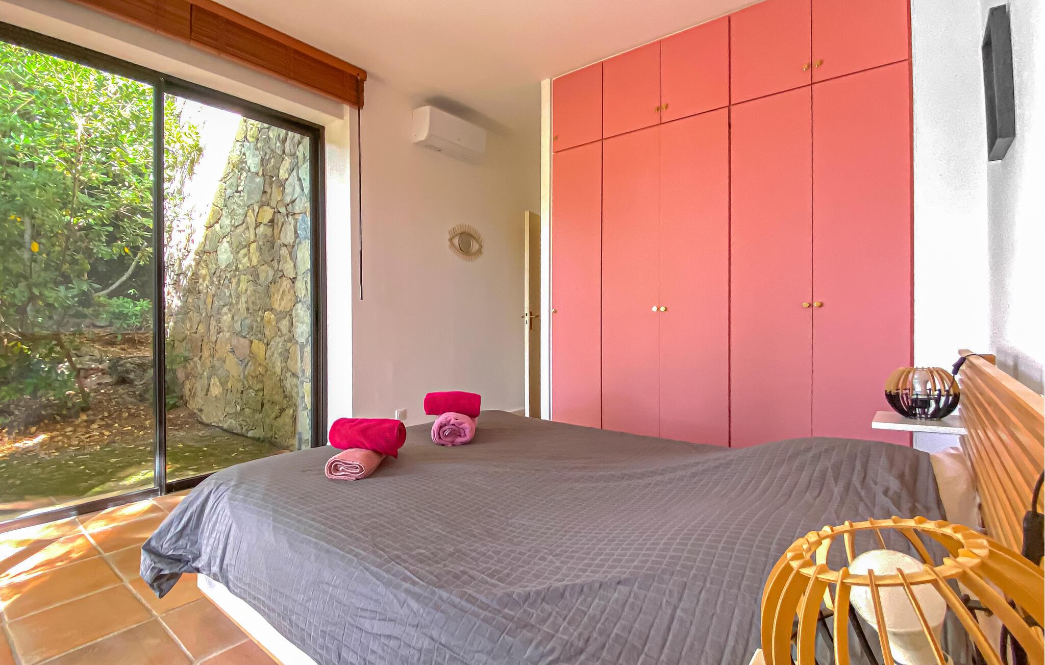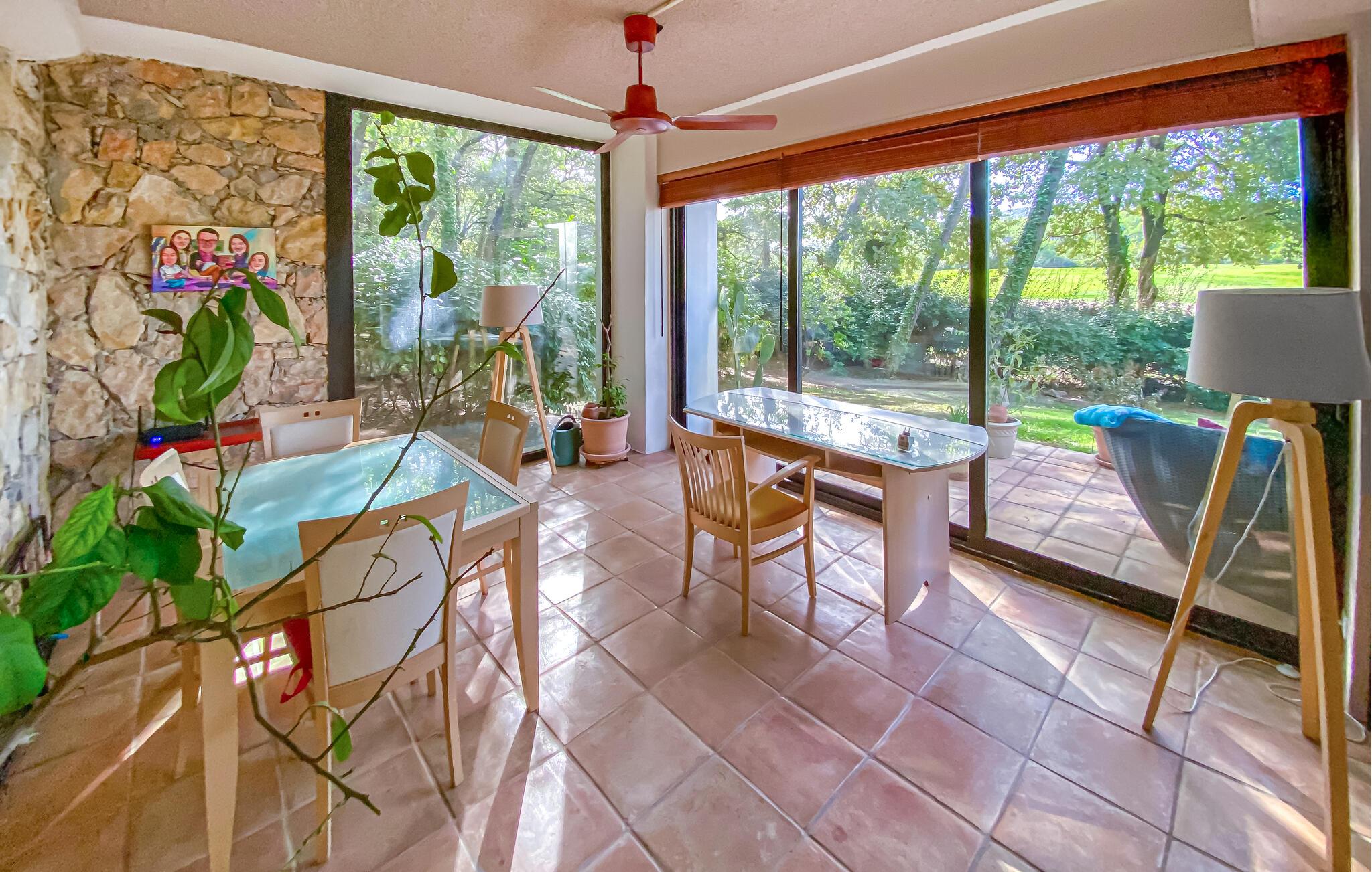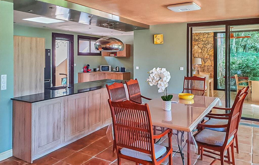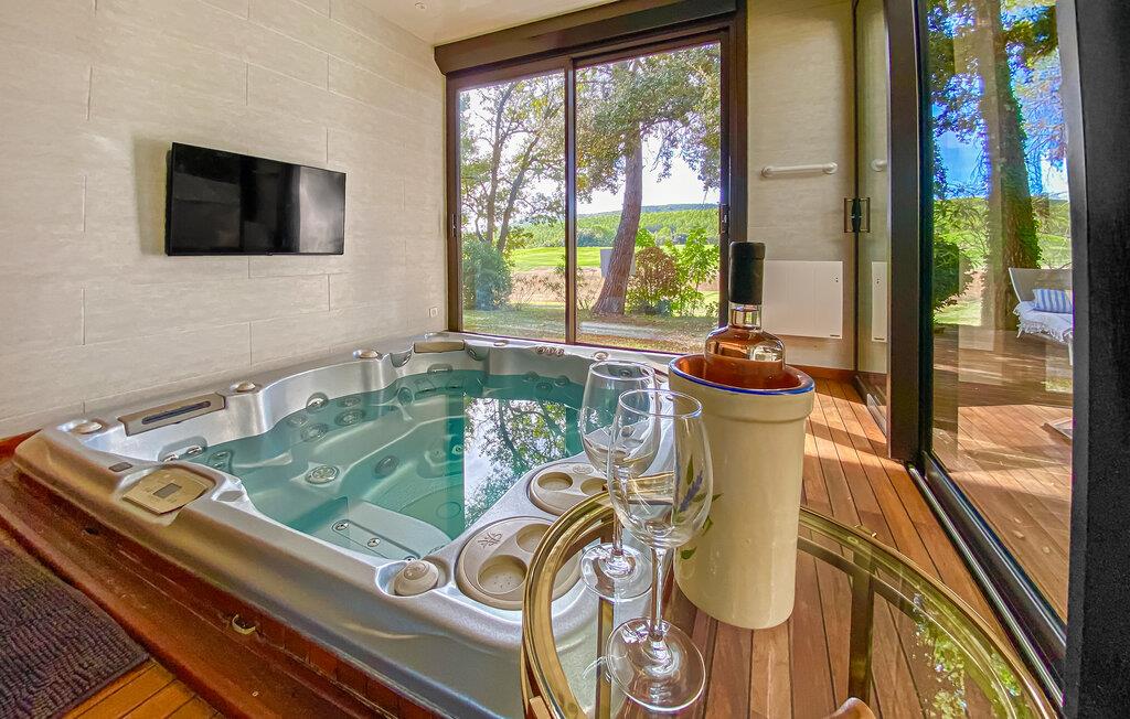 Dieses Haus liegt mitten in der Golfanlage Golf de Barbaroux und weist eine besondere Mischung aus Komfort, Modernität und ruhiger Lage auf. Aus den Wohnräumen haben Sie einen herrlichen Blick auf das Grün, während viel helles Tageslicht durch die bodentiefen Fenster fällt. Entspannen Sie sich im Whirlpool, verbringen Sie einen gemütlichen Spieleabend oder zaubern Sie leckere Speisen in der modernen Küche.