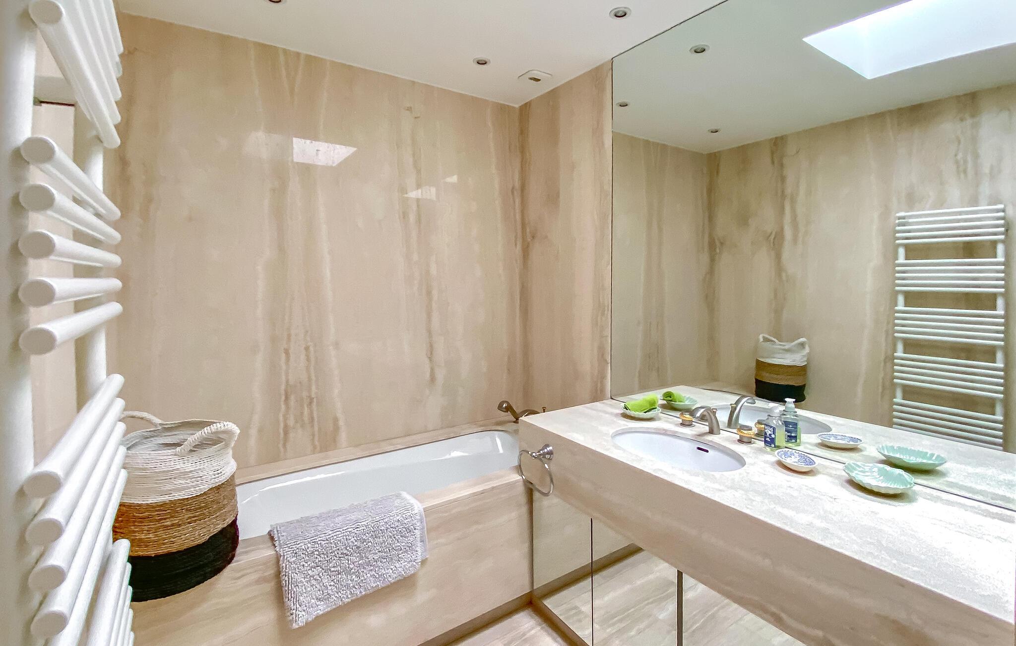 - WC mit warmem und kaltem Wasser, Dusche und Badewanne