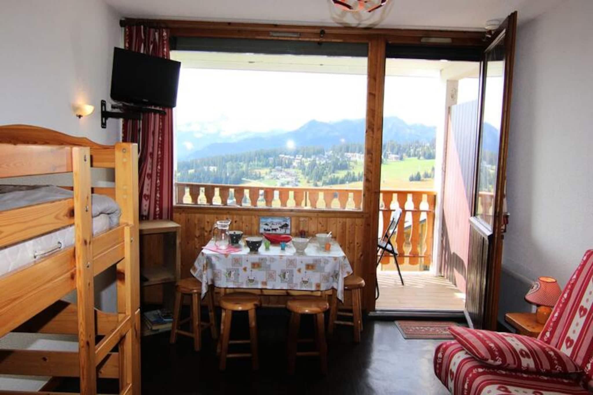 Hoch über dem charmanten Dorf Les Saisies bietet dieses gemütliche Studio-Apartment einen ruhigen Rückzugsort in den Alpen mit atemberaubendem Blick auf den Mont Bisanne und die Beaufortain-Bergkette. Die nach Süden ausgerichtete Unterkunft ist lichtdurchflutet und schafft eine warme, einladende Atmosphäre – perfekt für Ihren Bergurlaub. Ob Winter oder Sommer, die atemberaubende Natur verspricht unvergessliche Momente der Ruhe und des Abenteuers. \n\nDas Apartment befindet sich im ersten Stock des Hauses und ist komfortabel und praktisch eingerichtet. Der Wohnbereich verfügt über ein Doppelschlafsofa und zwei Etagenbetten und ist somit ideal für Paare oder kleine Familien. Eine voll ausgestattete Küchenzeile ermöglicht Ihnen die einfache Zubereitung von Mahlzeiten, während der Balkon zum Entspannen und Genießen des Panoramablicks einlädt. Das Badezimmer verfügt über ein separates WC. Bitte beachten Sie, dass das obere Etagenbett nicht für Kinder unter sechs Jahren geeignet ist.\n\nFür Skibegeisterte ist die Lage unschlagbar. In wenigen Gehminuten erreichen Sie die Skipiste Légette und haben direkten Zugang zu den Sesselliften Légette und Carrets. In den wärmeren Monaten verwandelt sich die Gegend in ein Paradies für Wanderer und Naturliebhaber. Wanderwege schlängeln sich durch üppige Wiesen und Wälder. Das Dorf Les Saisies, bekannt für seinen authentischen Charme und seine regionalen Köstlichkeiten, ist nur einen Katzensprung entfernt und bietet Geschäfte, Restaurants und kulturelle Erlebnisse.\n\nOb Sie aufregende Tage auf der Piste oder friedliche Abende unter dem Alpenhimmel verbringen möchten – diese Unterkunft ist der perfekte Ausgangspunkt für Ihre Auszeit in den französischen Bergen. Lassen Sie sich von der Schönheit der Beaufortain-Region verzaubern und schaffen Sie Erinnerungen, die ein Leben lang halten.