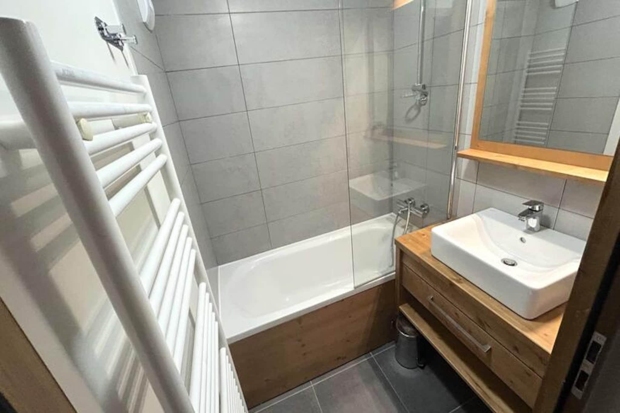 Mitten in den französischen Alpen, wo die klare Bergluft die Seele belebt, bietet dieses elegante Apartment einen ruhigen Rückzugsort für Ihr nächstes alpines Abenteuer. Im dritten Stock eines exklusiven Wohnhauses gelegen, besticht dieses nach Westen ausgerichtete Juwel durch einen privaten Balkon, der zum Genießen der goldenen Farben des Sonnenuntergangs nach einem Tag auf der Piste einlädt. Dank der erstklassigen Lage in der Nähe von Skiliften und allen Annehmlichkeiten des täglichen Bedarfs genießen Sie höchsten Komfort. Treten Sie ein und entdecken Sie ein durchdacht gestaltetes Ambiente, das moderne Funktionalität mit alpinem Charme verbindet. Die voll ausgestattete Küche ist ideal für die Zubereitung herzhafter Mahlzeiten, während das gemütliche Wohnzimmer mit einem 160 cm langen Schlafsofa für zusätzliche Gäste ausgestattet ist. Zwei einladende Schlafzimmer mit jeweils zwei 80 cm breiten Betten bieten erholsame Schlafplätze für bis zu sechs Gäste. Das Apartment verfügt außerdem über ein Badezimmer, ein Duschbad und ein separates WC, die für Privatsphäre und Komfort sorgen. Ein überdachter Parkplatz in der Tiefgarage rundet den praktischen Nutzen dieses Bergrefugiums ab. Jenseits der Unterkunft erwartet Sie das lebhafte Alpendorf mit seinen charmanten Geschäften, Restaurants und Après-Ski-Angeboten. Die nahegelegenen Skilifte ermöglichen einen direkten Zugang zu den weltberühmten Pisten und machen dies zum idealen Ausgangspunkt für Wintersportler und Sommerurlauber. Ob Sie auf pulvrigen Pisten Ski fahren oder durch saftige Almwiesen wandern – die atemberaubende Landschaft wird Sie begeistern. Wählen Sie dieses außergewöhnliche Apartment für einen unvergesslichen Urlaub, in dem jedes Detail darauf ausgerichtet ist, Ihr Erlebnis der majestätischen französischen Alpen zu bereichern.