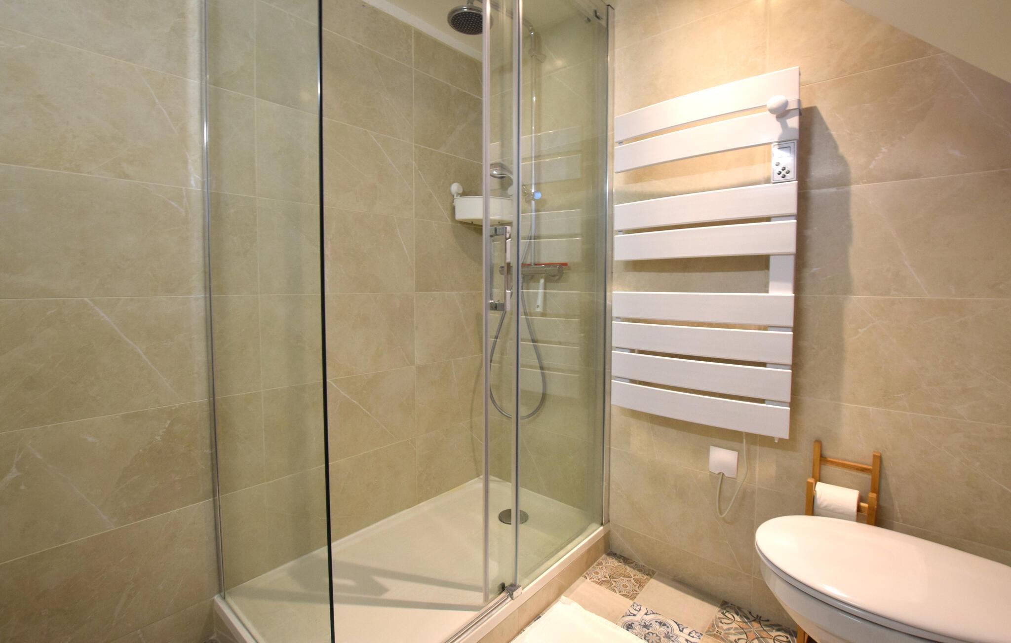 - WC mit warmem und kaltem Wasser, Dusche
