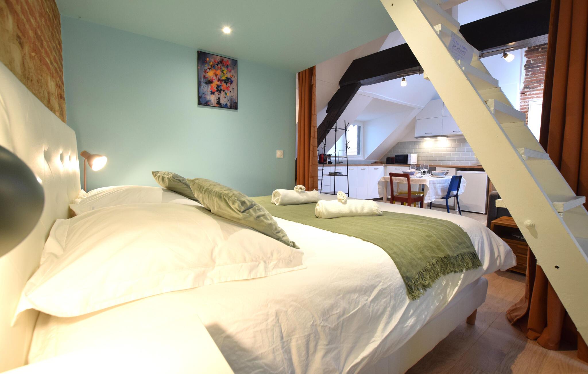 Diese schöne Ferienwohnung begrüßt Sie in einem liebevoll renovierten Fachwerkhaus aus dem 19. Jahrhundert und liegt fußläufig zu reizvollen historischen Sehenswürdigkeiten der Korsarenstadt Honfleur. Genießen Sie das behagliche Ambiente, während Sie leckere Mahlzeiten aus frischen Produkten vom Markt zaubern, Ihre Unternehmungen am einladenden Esstisch planen und nach einem langen Tag bei einem guten Film auf dem Sofa entspannen.