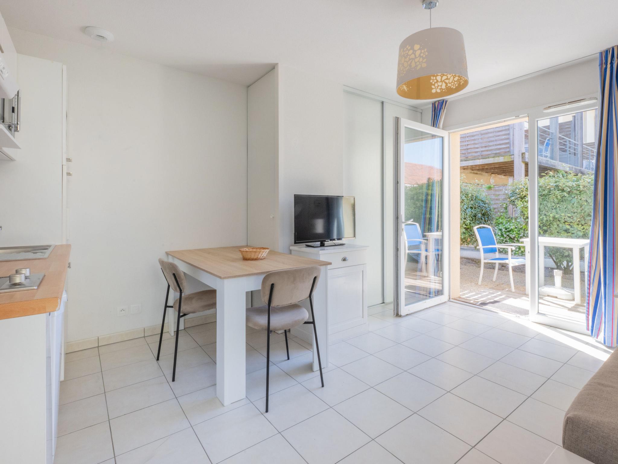 "Résidence Odalys Référence Le Petit Pont", 1-Zimmer-Studio 23 m2. Zweckmässig eingerichtet: Wohn-/Schlafzimmer mit 1 Ausziehbett (2 Pers.), Esstisch und TV. Ausgang zur Terrasse. Kleine, offene Küche (Geschirrspüler, 2 Glaskeramikplatten, Wasserkocher, Mikrowelle, elektrische Kaffeemaschine). Dusche/WC. E-Heizung. Teppichboden. Balkon oder Terrasse. Terrassenmöbel, Balkonmöbel. Zur Verfügung: Kinderhochstuhl, Babybett (extra). Internet (WLAN, gratis). Bitte beachten: Nichtraucher-Unterkunft. Maximal 1 Haustier/Hund erlaubt. Rauchmelder.