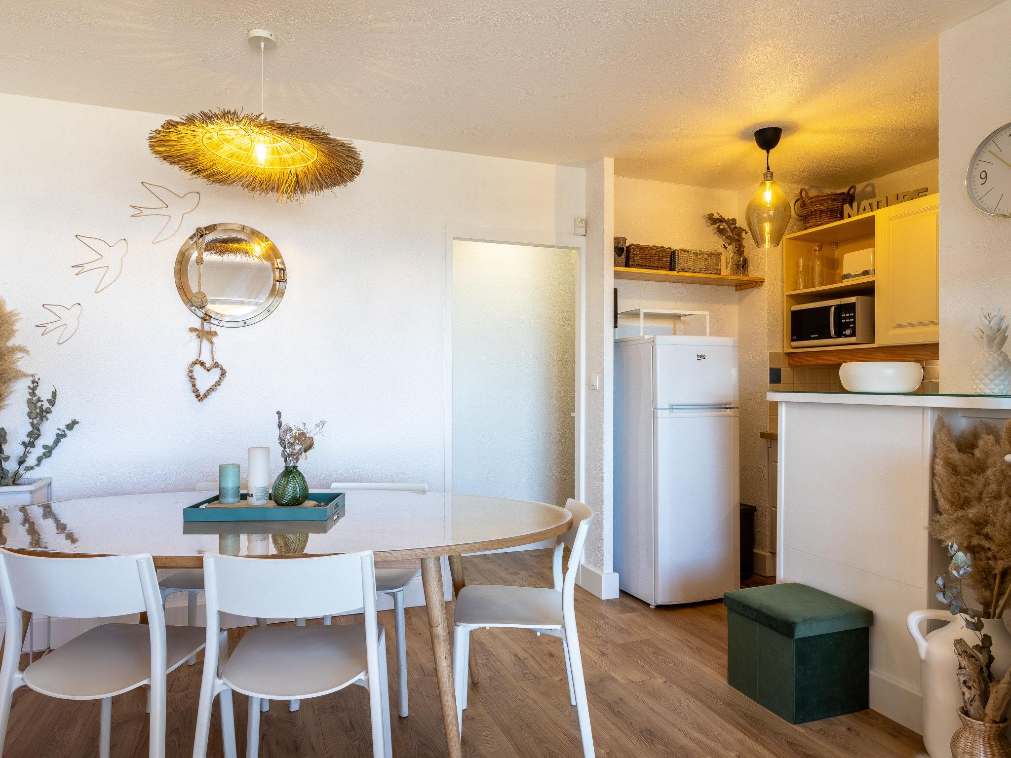 2-Zimmer-Studio 37 m2 im 4. Stock. Hell, teilweise renoviert im Jahre 2024, komfortabel und gemütlich eingerichtet: Wohn-/Esszimmer mit TV (Flachbildschirm), Klimaanlage. Ausgang zur Terrasse. Grosse Kabine mit 1 franz. Bett (140 cm, Länge 190 cm). Kabine mit 1 x 2 Etagenbetten (80 cm, Länge 190 cm). Kochnische (Geschirrspüler, 2 Glaskeramikplatten, Toaster, Wasserkocher, Mikrowelle, Tiefkühler, elektrische Kaffeemaschine). Bad, sep. WC. E-Heizung. Terrasse 6 m2. Terrassenmöbel. Schöne Sicht auf das Meer und den Hafen. Zur Verfügung: Waschmaschine. Internet (Wireless LAN, gratis). Parkplatz Nr. 351 (überdacht). Bitte beachten: TV nur FR. Rauchmelder. Inserat einer Privatperson nach Artikel 155, IV, CGI.