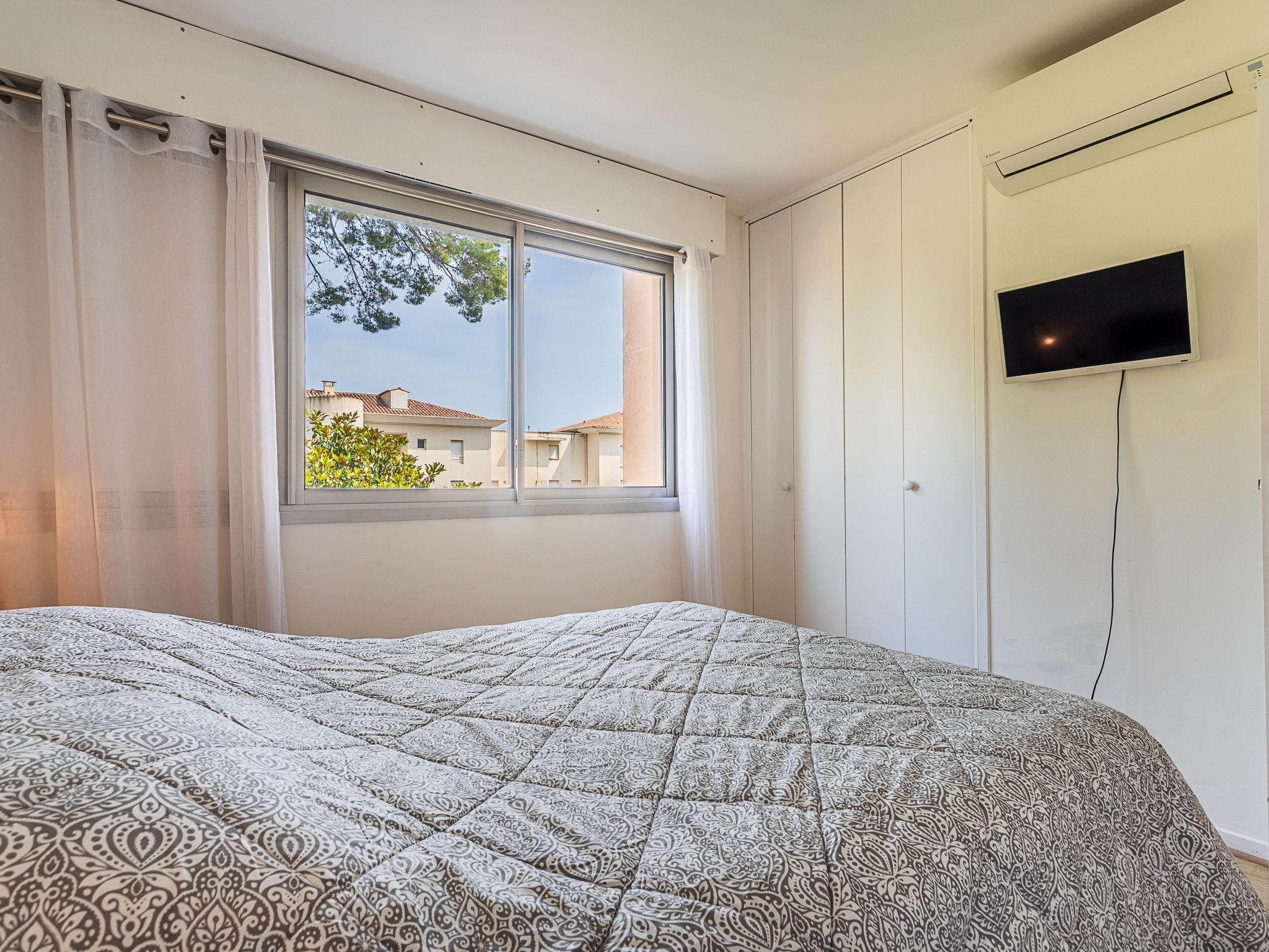 2-Zimmer-Wohnung 33 m2 im 3. Stock. Hell, vollständig renoviert im Jahre 2021, komfortabel und schön eingerichtet: Wohn-/Schlafzimmer mit 1 Diwanbett (140 cm, Länge 190 cm), TV (Flachbildschirm). Ausgang zur Terrasse. 1 Zimmer mit 1 franz. Bett (140 cm, Länge 190 cm), TV (Flachbildschirm). Kochnische (Geschirrspüler, 4 Glaskeramikplatten, Toaster, Wasserkocher, Mikrowelle, Tiefkühler, elektrische Kaffeemaschine). Bad, sep. WC. E-Heizung, Klimaanlage. Terrasse 7 m2. Terrassenmöbel. Sicht auf den Garten. Zur Verfügung: Waschmaschine. Internet (Wireless LAN, extra). Bitte beachten: TV nur FR. Rauchmelder.