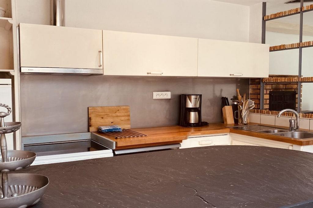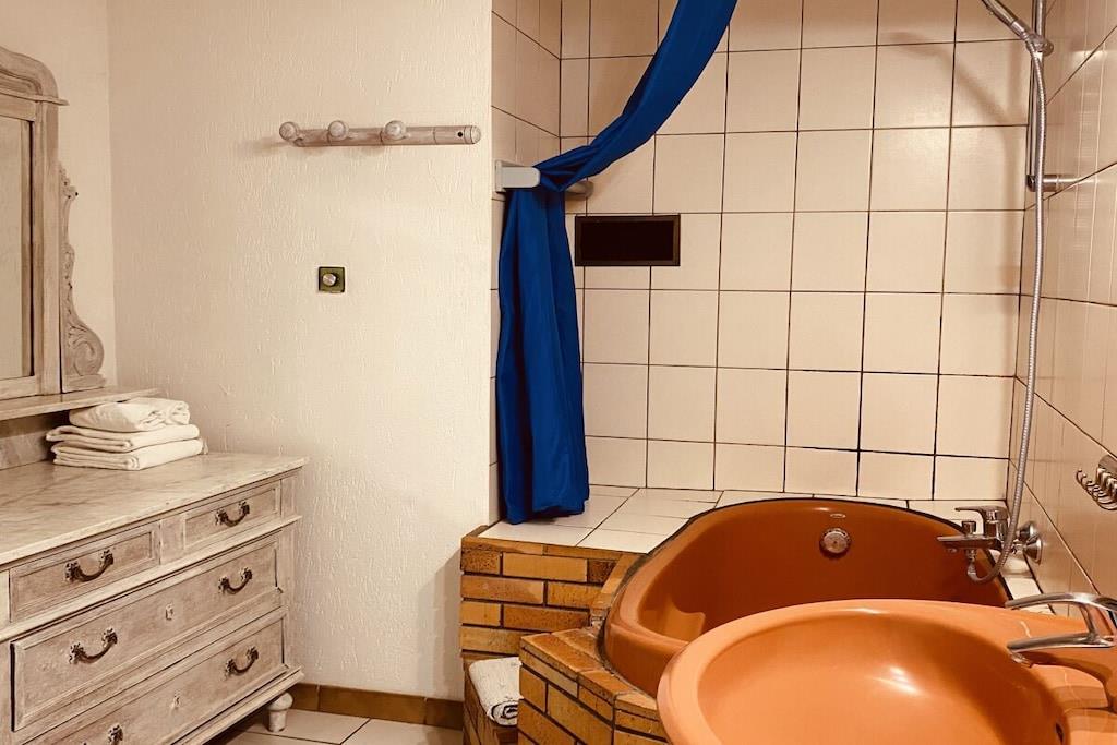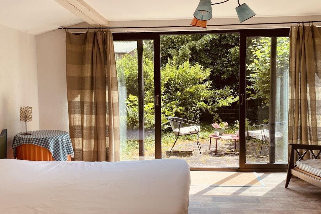 Das Ferienhaus ist eben zum Garten mit ein paar romantischen und naturbelassenen Terrassen. Parkplatz am Ende des kleinen Pfades der zum Gartenzaun führt. Aussen Kamin zum Grillen oder zum Spass am Feuer Bild. Ganz nahe an Colmar und trotzdem ganz ruhig gelegen. Das Ferienhaus hat 2 Schlafzimmer eines mit Doppelbett + Einzelbett. Küche, Bad, separates WC, Wohnbereich mit viel Licht.