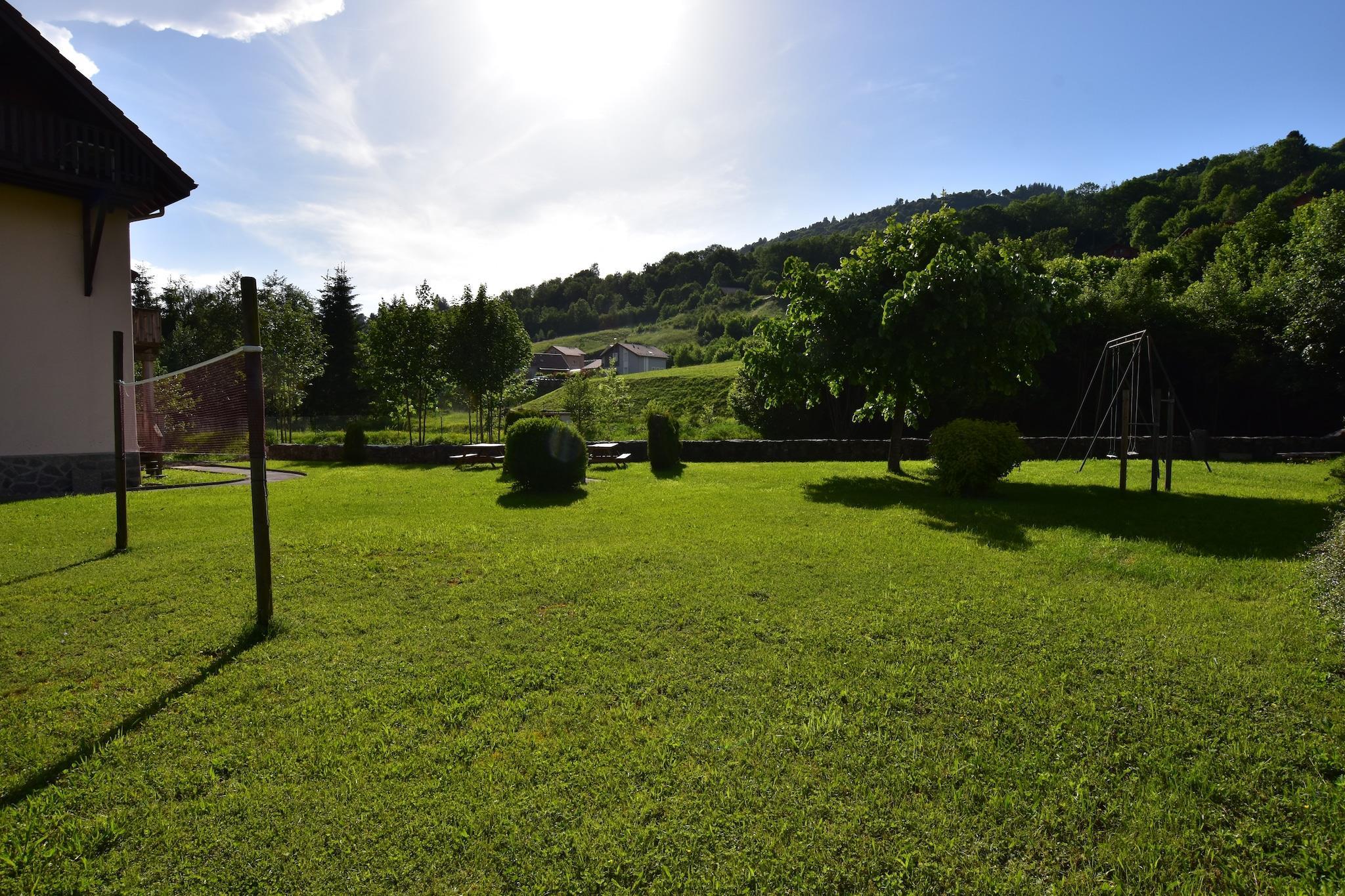 Parterre: (Eingangshalle, Küche(Mikrowelle, Spülmaschine, Tiefkühlschrank, Kühl-/Gefrierkombination), Wohn-/Schlafzimmer(Doppelschlafcouch, TV(Satellit)), Badezimmer(Dusche, Waschbecken, Toilette), Empore(Einzelbett, Doppelbett)) Souterrain: (Skikeller) Kühl-/Gefrierkombination, Trockner(Gemeinschaftliche Nutzung mit anderen Gästen, gegen Gebühr), Waschbecken, Waschmaschine(Gemeinschaftliche Nutzung mit anderen Gästen, gegen Gebühr), Heizung(elektrisch), Terrasse(Gemeinschaftliche Nutzung mit anderen Gästen), Garten(Gemeinschaftliche Nutzung mit anderen Gästen, teilweise umzäunt), Gartenmöbel, Grill, Boulebahn, Spielgeräte, Kinderbett(auf Anfrage), Hochstuhl(auf Anfrage)
