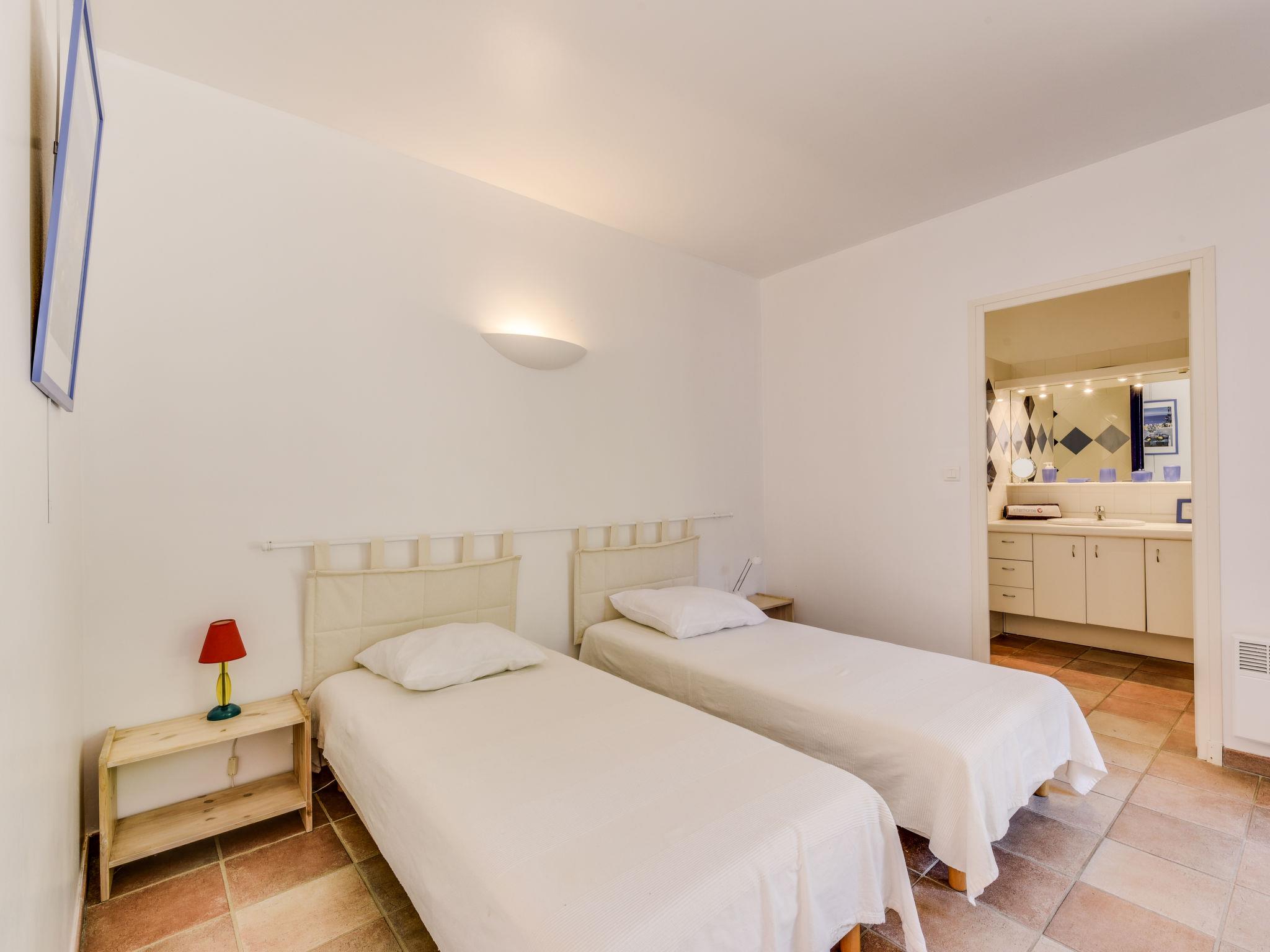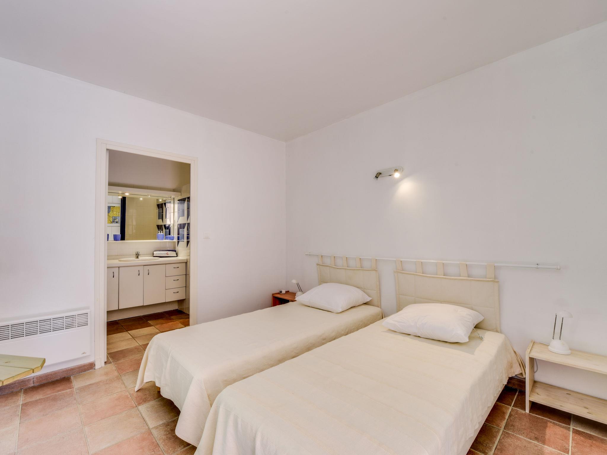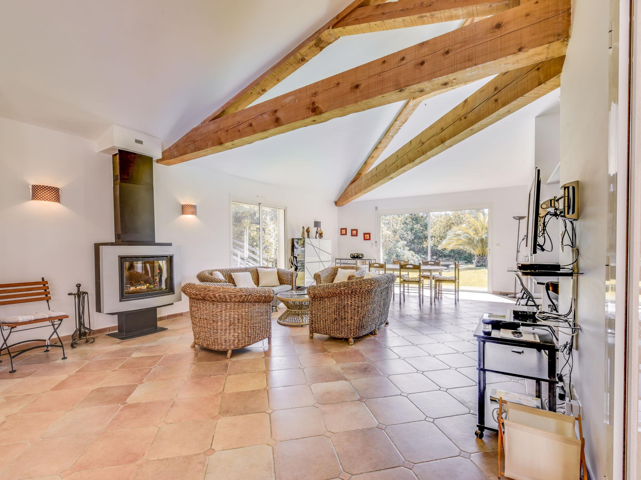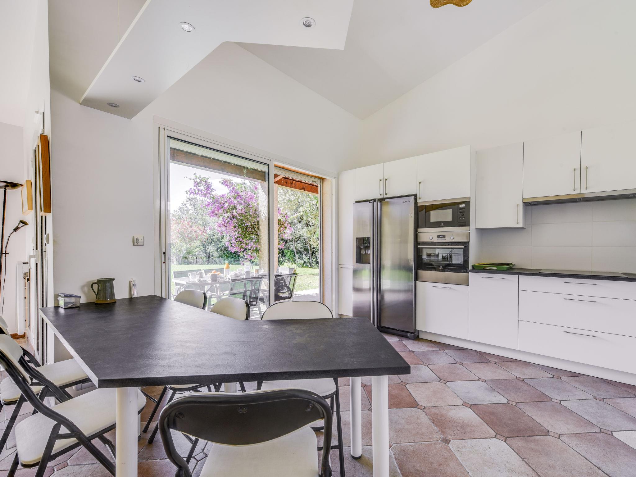 5-Zimmer-Villa 153 m2. Geräumig, zweckmässig eingerichtet: Wohn-/Esszimmer mit TV, Flachbildschirm, Stereoanlage, DVD und Ventilator. Ausgang zur Terrasse. 4 Zimmer, jedes Zimmer mit 2 Betten (90 cm, Länge 190 cm), Dusche/WC und Ventilator. Grosse, offene Küche 15 m2 (4 Kochplatten, Backofen, Geschirrspüler, Toaster, Wasserkocher, Mikrowelle, elektrische Kaffeemaschine, Kapseln für die Kaffeemaschine (tassimo) extra) mit Bar. Ausgang zur Terrasse. Sep. WC. Heizung. Terrasse 43 m2, überdacht. Terrassenmöbel, Gartengrill. Sicht auf die Landschaft. Zur Verfügung: Waschmaschine. Internet (Wireless LAN, gratis). Bitte beachten: Rauchmelder. Alle Schlafzimmer sind zum möblierten, 40 m2 grossen Innenhof gerichtet. Errichten einer Brücke zum Boulodrome sowie einer Holzterrasse neben dem Schwimmbad. 830480001798V