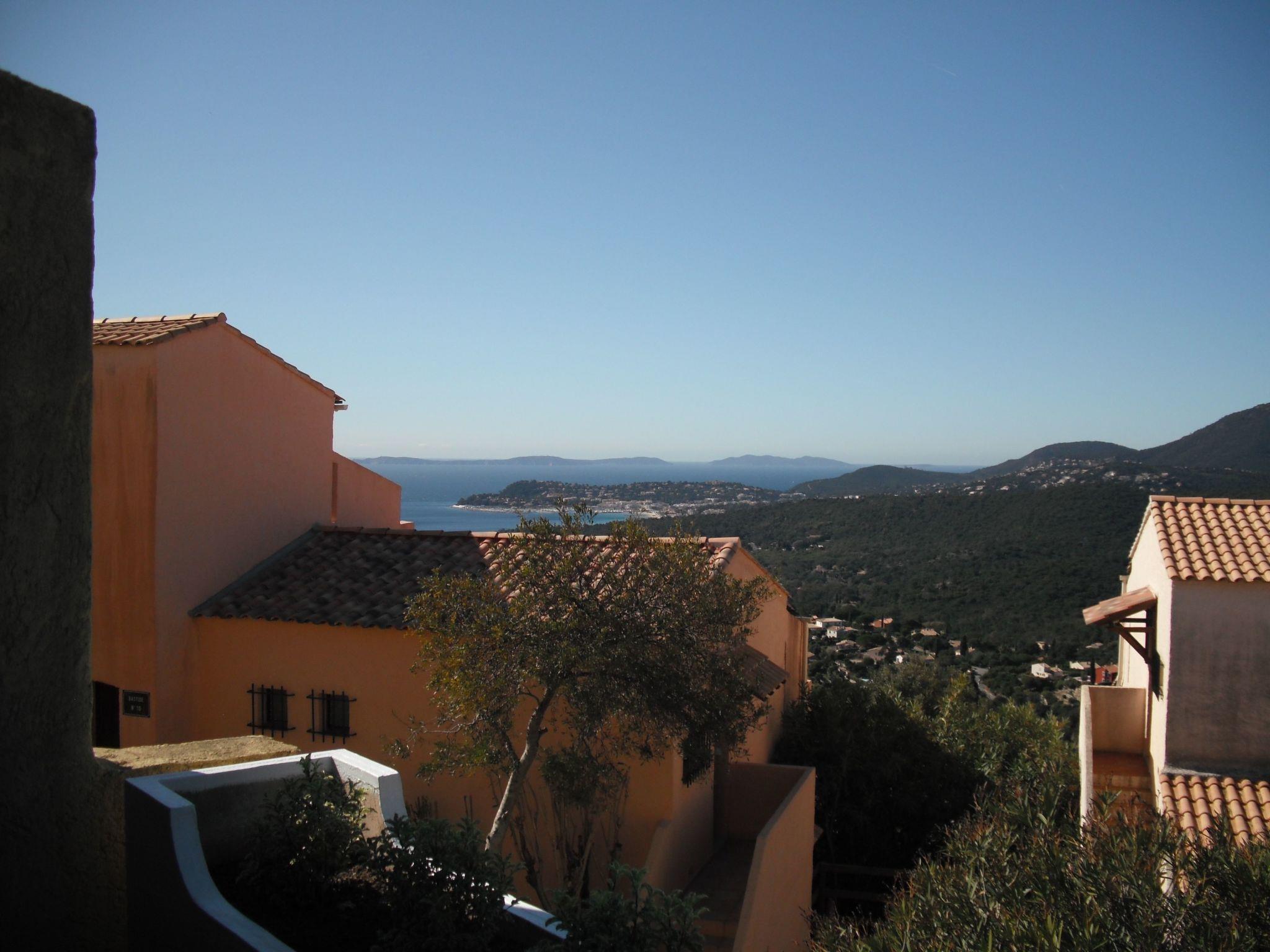LA CROIX VALMER: in einem privaten und bewaldeten Bereich mit Villen, Landhäusern und Pool Panoramablick auf den Hafen von CAVALAIRE, die Iles d'Hyères und die Hügel der Mauren, 2-Zimmer-Wohnung mit Terrasse und Veranda, Südwestlage in einem Landhaus (nur im 1. Stock/2).