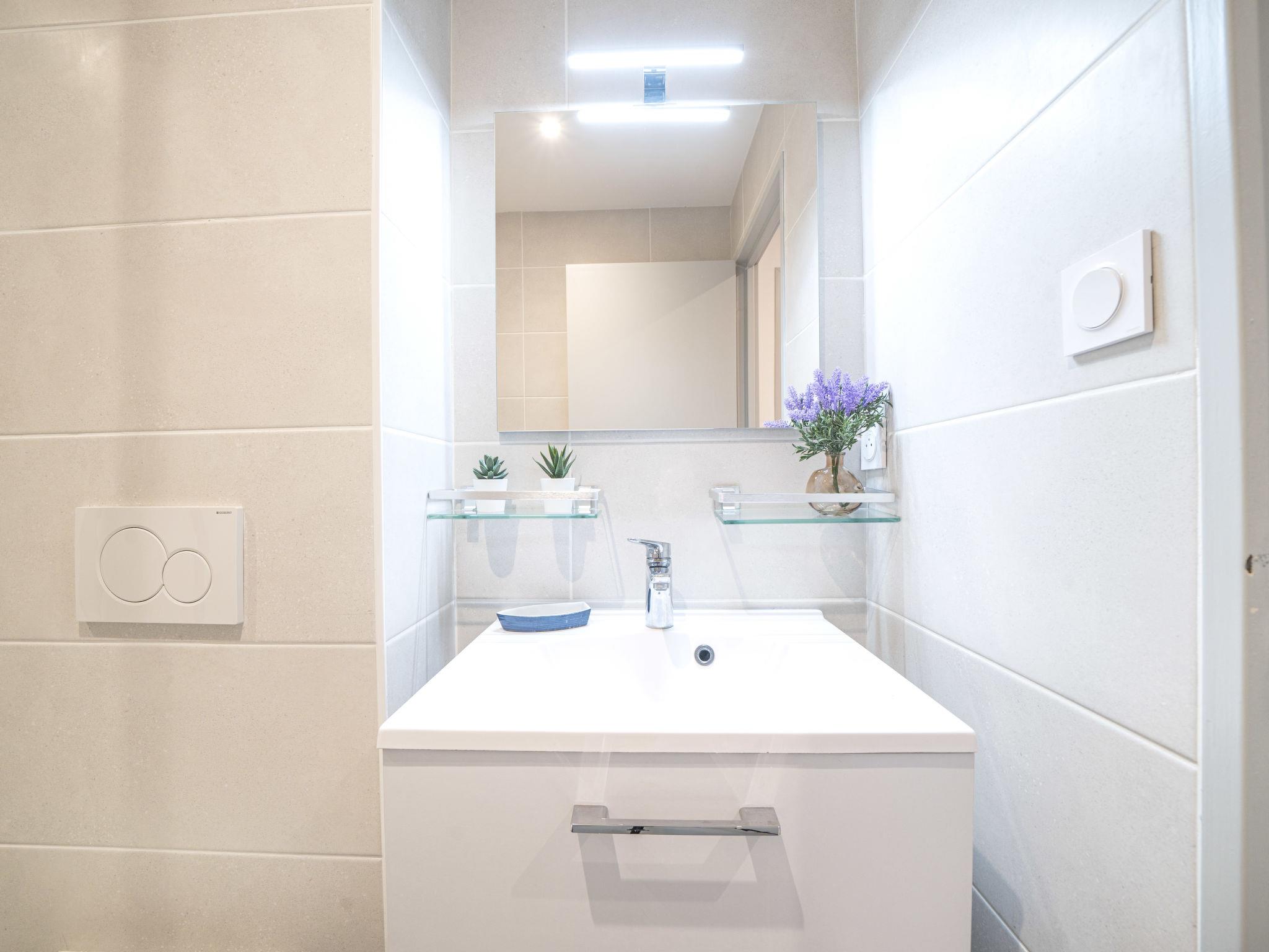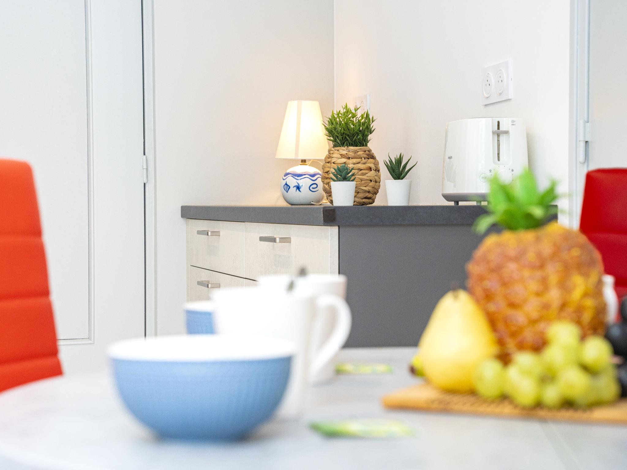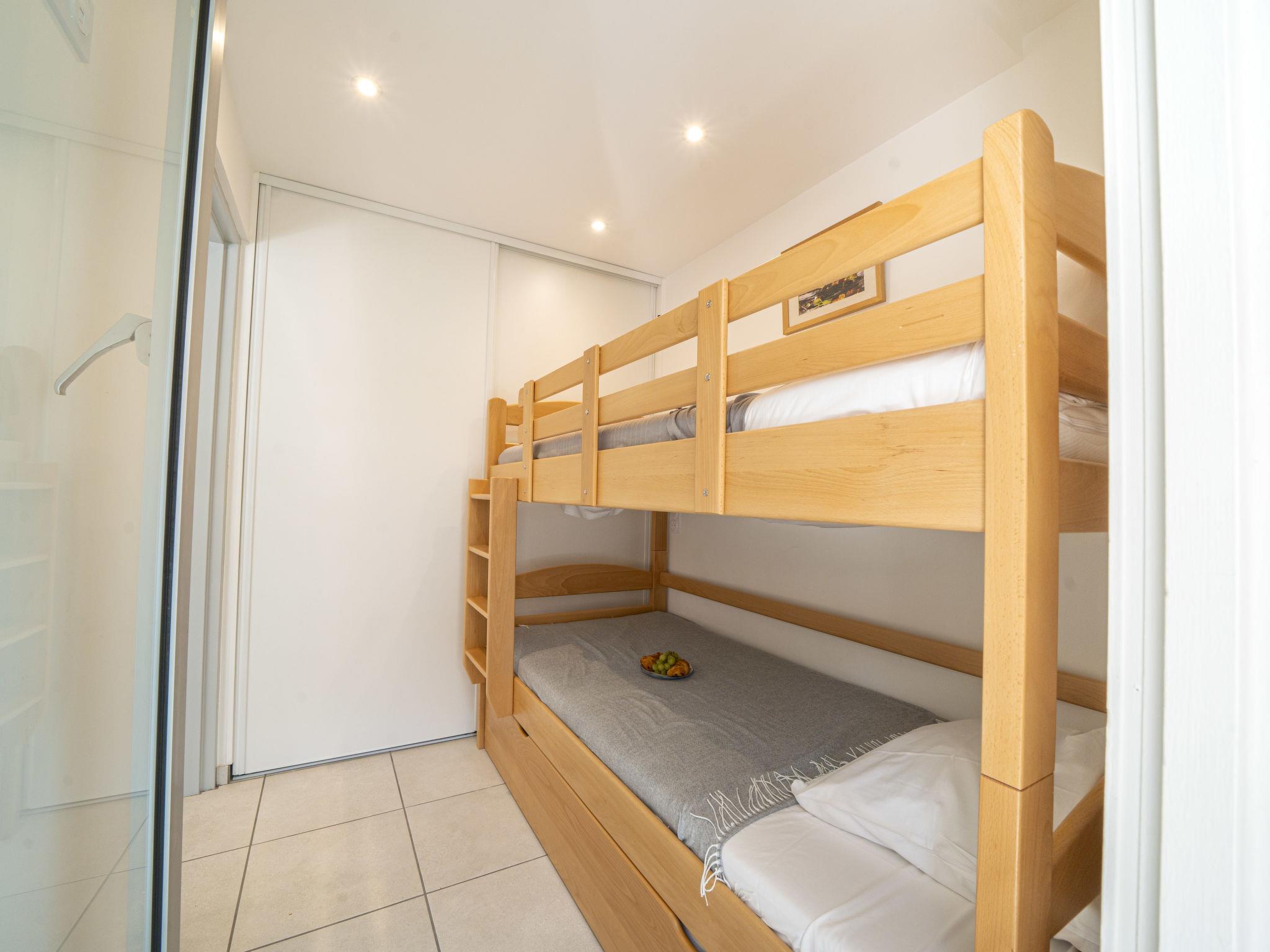 "Le Club", 2-Zimmer-Wohnung 30 m2 im 2. Stock, Südwestlage. Renoviert im Jahre 2024, komfortabel eingerichtet: Wohn-/Esszimmer mit (140 cm, Länge 190 cm), TV (Flachbildschirm), E-Heizung und Klimaanlage. Ausgang zur Loggia. 1 kleines Zimmer mit 1 x 2 Etagenbetten (90 cm, Länge 200 cm). Offene Küche (Backofen, Geschirrspüler, 3 Induktionskochplatten, Toaster, Wasserkocher, Mikrowelle, Tiefkühler, elektrische Kaffeemaschine, Kapseln für die Kaffeemaschine (SENSEO) extra). Dusche/WC. E-Heizung. Balkonmöbel, Loggia. Zur Verfügung: Waschmaschine, Bügeleisen. Internet (WLAN, extra). Parkplatz Nr. 397 (1 Auto). Bitte beachten: Nichtraucher-Unterkunft. Maximal 1 kleines Haustier/Hund erlaubt. Rauchmelder. Inserat einer Privatperson nach Artikel 155, IV, CGI. 10 73 014 216 064