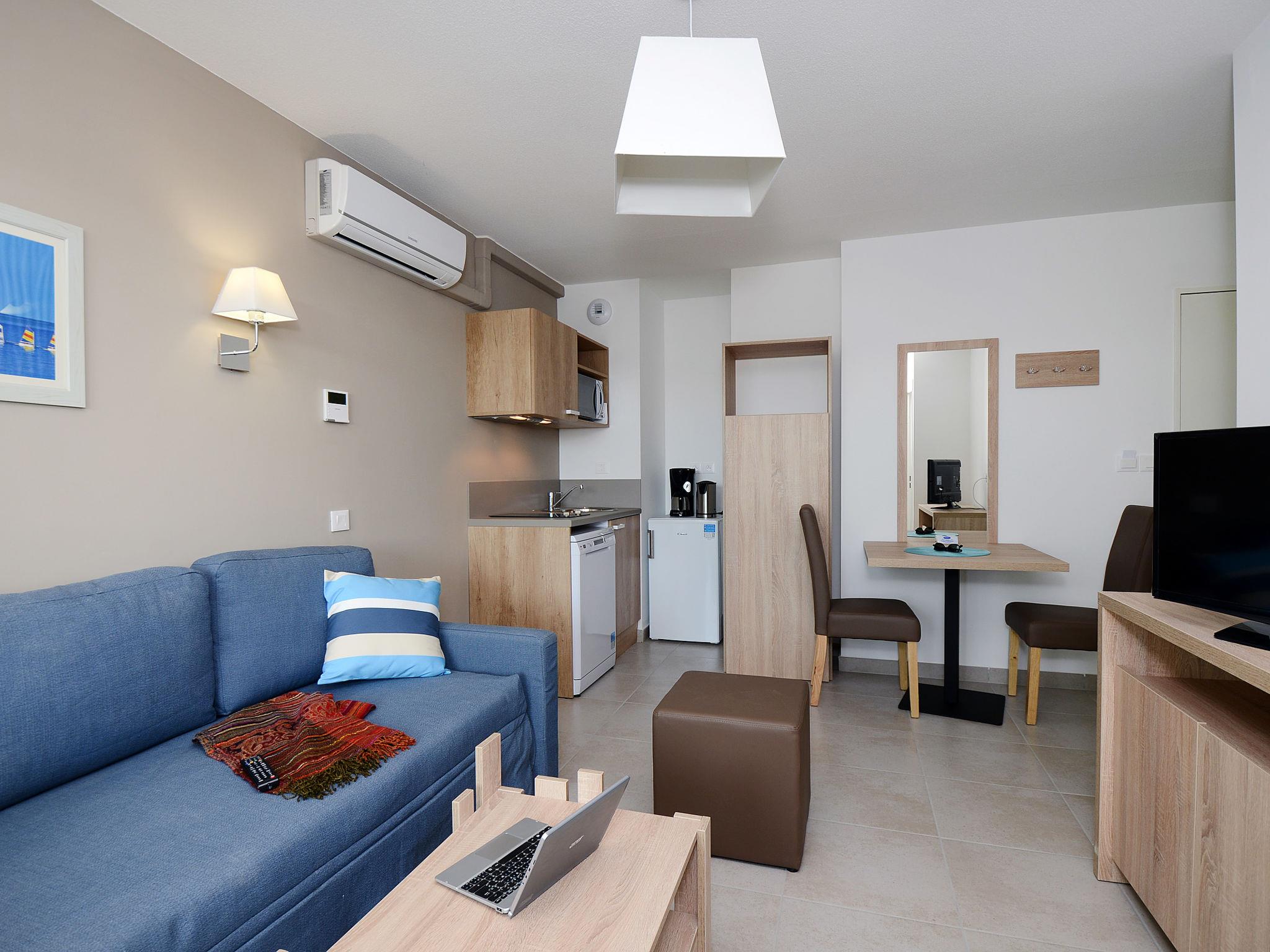 "Odalys Référence Le Lotus Blanc", 3-Zimmer-Wohnung 51 bis 54 m2. Schön eingerichtet: Wohn-/Schlafzimmer mit 2 Schlafmöglichkeiten, Esstisch und TV (Flachbildschirm), Klimaanlage. Ausgang zur Terrasse. 1 Zimmer mit 2 Schlafmöglichkeiten. Studio mit 2 Schlafmöglichkeiten, Esstisch und TV (Flachbildschirm), Klimaanlage. Ausgang zur Terrasse. Kleine, offene Küche (Geschirrspüler, 2 Glaskeramikplatten, Wasserkocher, elektrische Kaffeemaschine, Kombinationsmikrowelle). 2 Duschen/WC. E-Heizung. 2 Balkone oder 2 Terrassen. Terrassenmöbel. Sicht auf das Meer. Zur Verfügung: Kinderhochstuhl, Babybett (extra). Internet (WLAN, gratis). Parkplatz (1 Auto). Bitte beachten: Nichtraucher-Unterkunft. Maximal 1 Haustier/Hund erlaubt. Rauchmelder, Feuerlöscher.