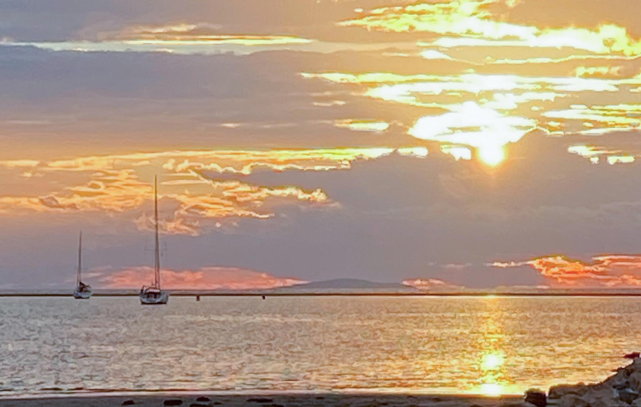 Genießen Sie die erste Tasse Kaffee am Morgen auf der Terrasse mit Blick auf die schaukelnden Boote und beobachten Sie, wie auf der südlich ausgerichteten Terrasse der Sonnenuntergang die Umgebung in goldenes Licht taucht.