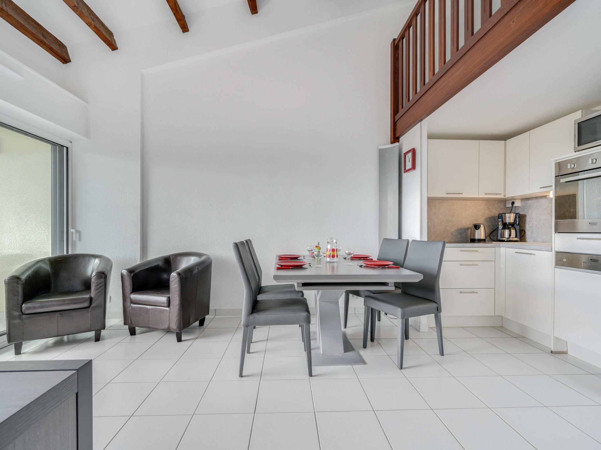 3-Zimmer-Wohnung 52 m2 auf 2 Stockwerken im 2. Stock. Wohn-/Esszimmer mit TV (Flachbildschirm). 1 Zimmer mit 1 franz. Bett (140 cm, Länge 190 cm). Kochnische (Geschirrspüler, 4 Induktionskochplatten, Mikrowelle). Dusche, sep. WC. Obergeschoss: 1 Zimmer mit 2 Betten (90 cm, Länge 190 cm). Terrasse 7 m2, Südlage. Terrassenmöbel. Zur Verfügung: Waschmaschine. Internet (Wireless LAN, extra). Parkplatz Nr. 292. Bitte beachten: Rauchmelder.