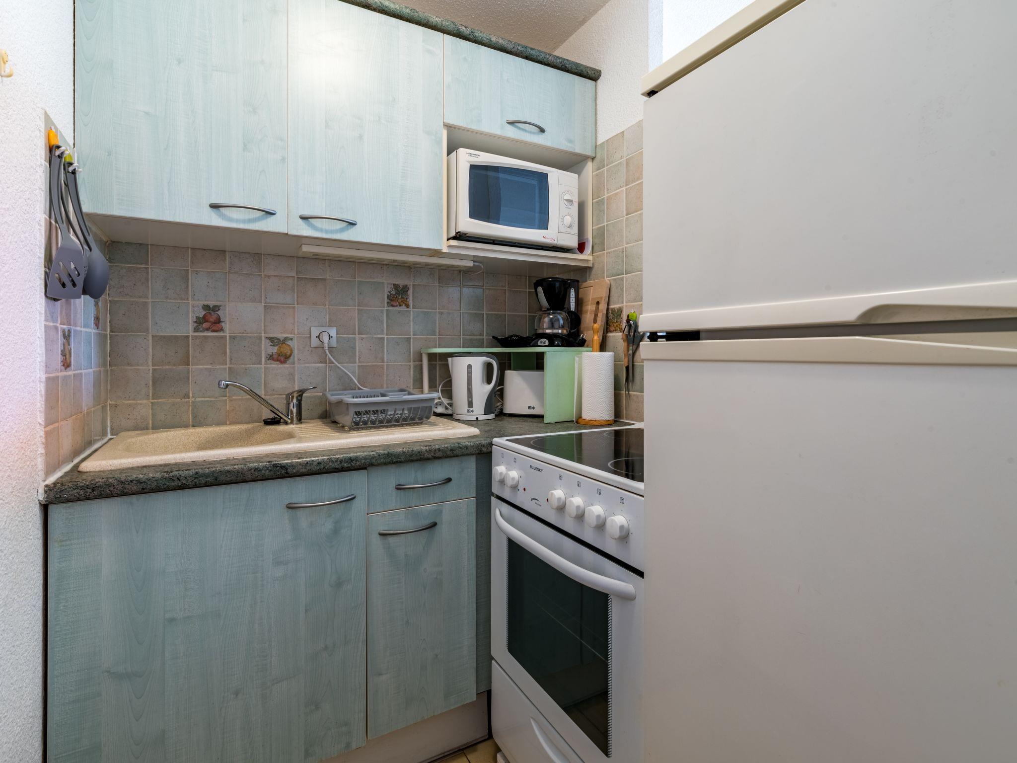2-Zimmer-Wohnung 30 m2 im 3. Stock. Objekt geeignet für 2 Erwachsene + 2 Kinder. Wohn-/Esszimmer mit TV (Flachbildschirm), Boiler (60 Liter). 1 Zimmer mit 1 franz. Bett (140 cm, Länge 190 cm). Kabine mit 1 x 2 Etagenbetten (70 cm, Länge 190 cm). Kochnische (Backofen, 4 Glaskeramikplatten, Toaster, Wasserkocher, Mikrowelle, Tiefkühler, elektrische Kaffeemaschine). Dusche, sep. WC. E-Heizung. Balkon 4 m2. Balkonmöbel. Sicht auf den Garten. Zur Verfügung: Internet (WLAN, extra). Garage Nr. 251 (1 Auto), Höhe 190 cm, Breite 200 cm. Bitte beachten: Maximal 1 kleines Haustier/Hund erlaubt. Rauchmelder. Anstelle eines abgeschlossenen Schlafzimmers befinden sich manche Schlafplätze in einem offenen Bereich (Galerie, Nische etc.). 30133001368KK