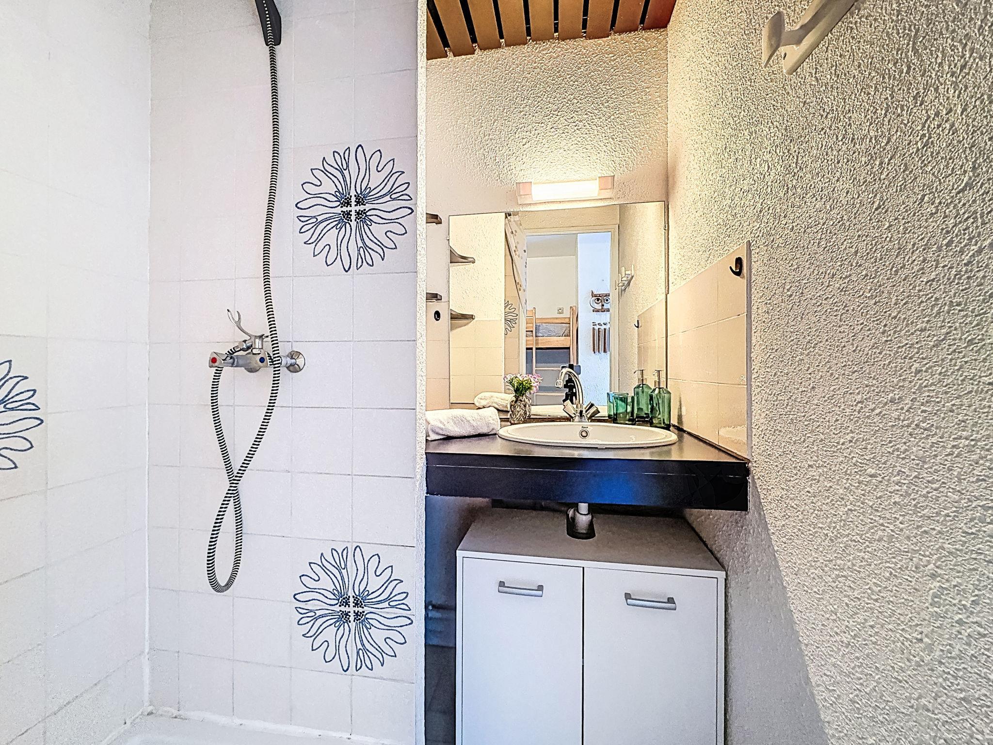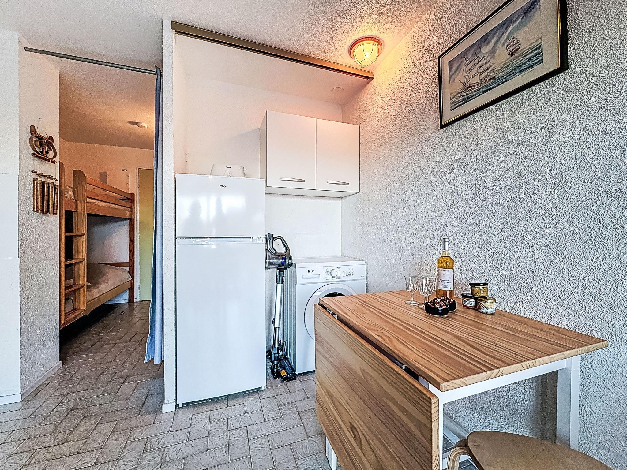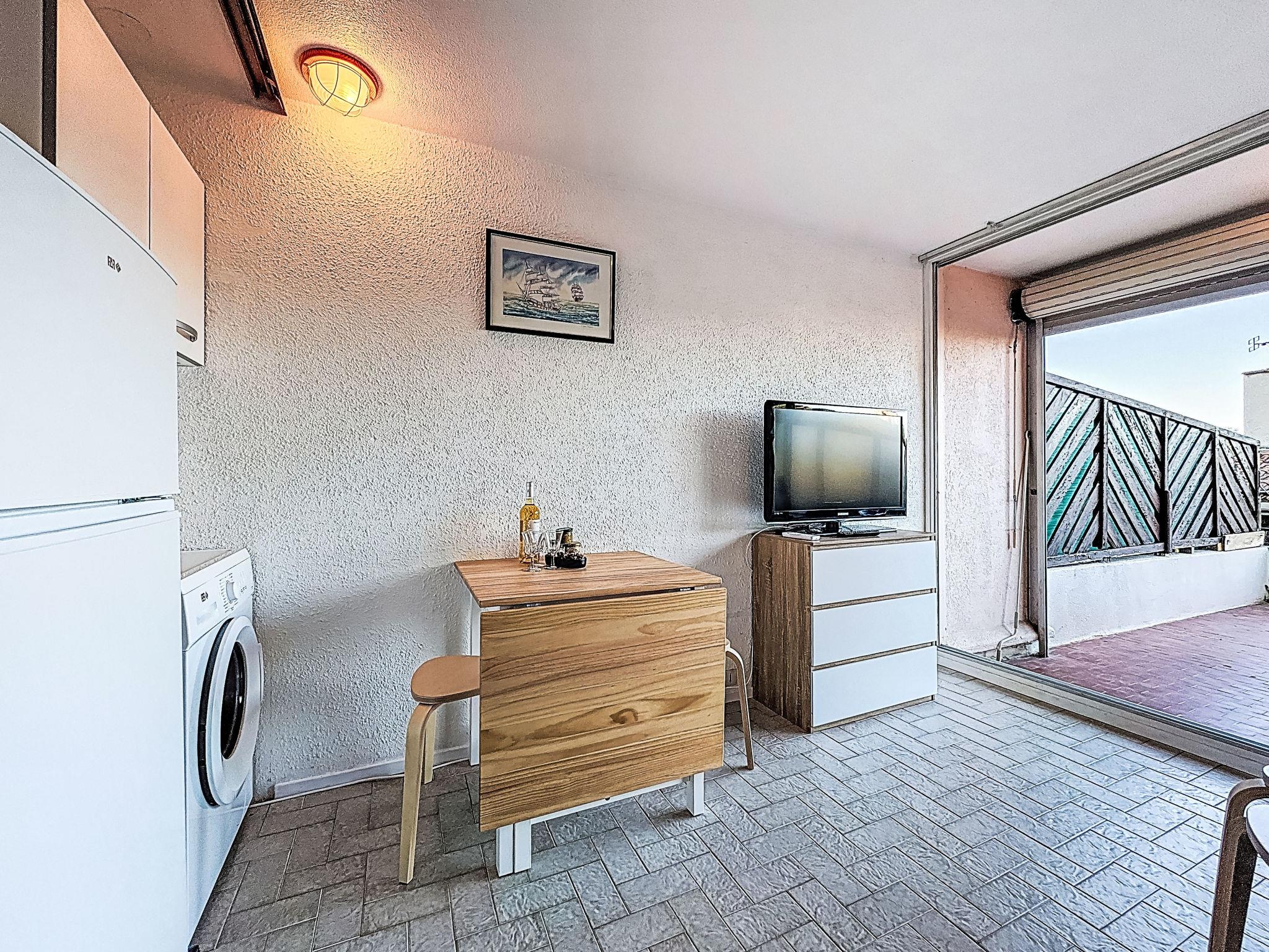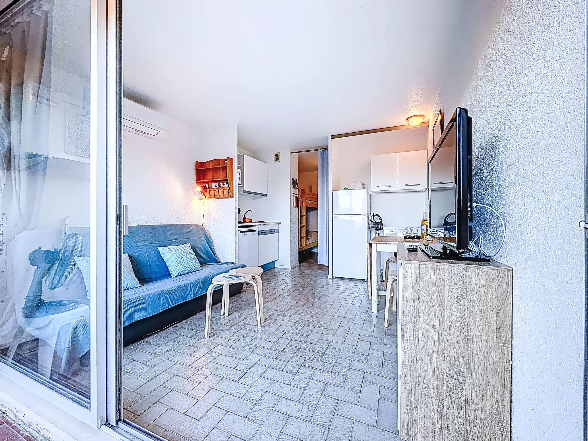 1-Zimmer-Wohnung 20 m2, im Erdgeschoss. Objekt geeignet für 2 Erwachsene + 1 Kind. Wohn-/Schlafzimmer mit 1 Doppeldiwanbett (140 cm, Länge 190 cm), Esstisch und TV (Flachbildschirm). Ausgang zur Terrasse. Kabine mit 1 Bett (90 cm, Länge 190 cm). Kochnische (Geschirrspüler, 2 Glaskeramikplatten, Toaster, Wasserkocher, Mikrowelle, Tiefkühler, elektrische Kaffeemaschine). Dusche, sep. WC. Klimaanlage. Terrasse 15 m2, Nordlage und Westlage. Terrassenmöbel. Zur Verfügung: Waschmaschine. Parkplatz Nr. 108 (1 Auto). Bitte beachten: Nichtraucher-Unterkunft. Inserat einer Privatperson nach Artikel 155, IV, CGI. 30133001377WK