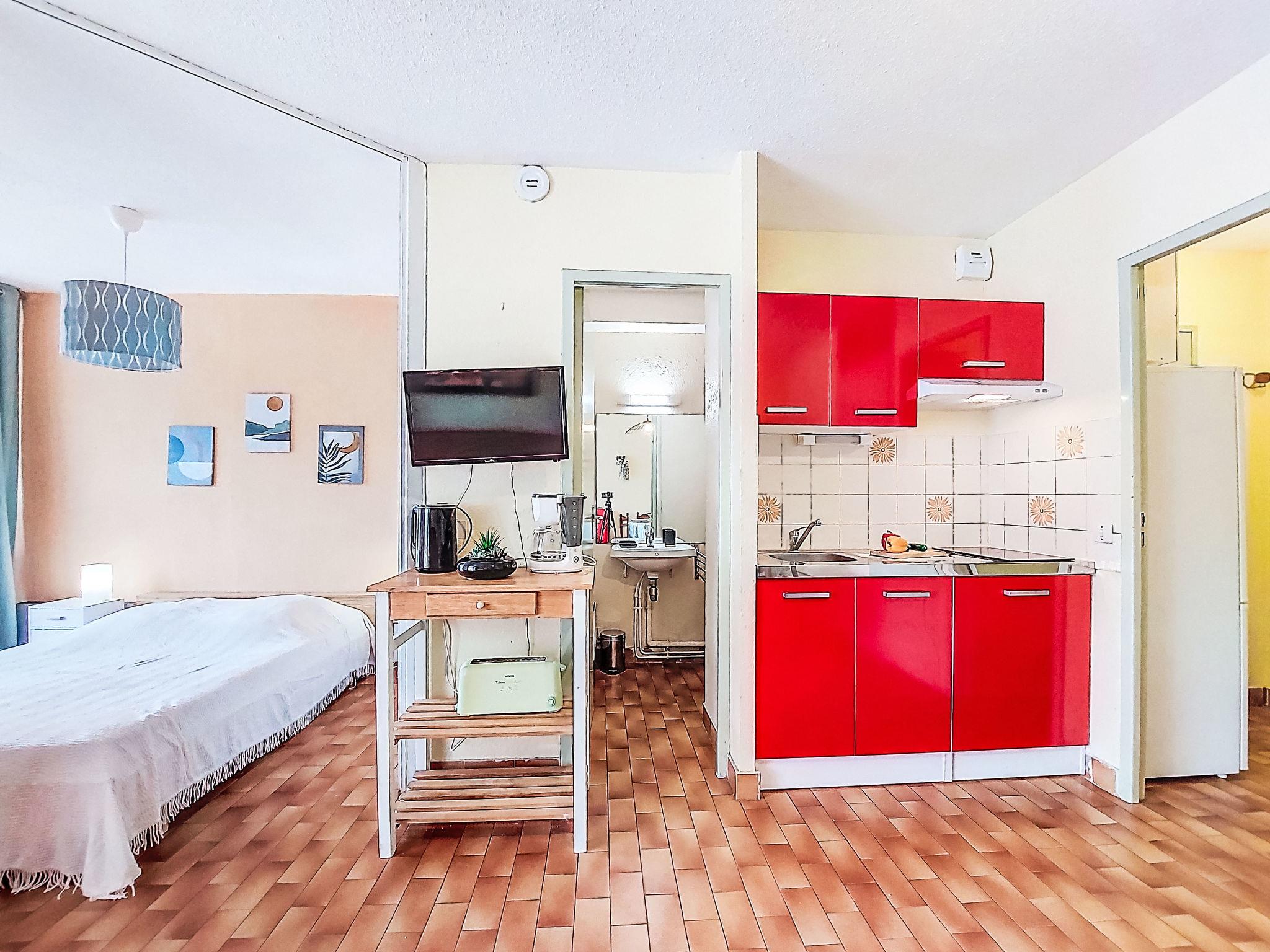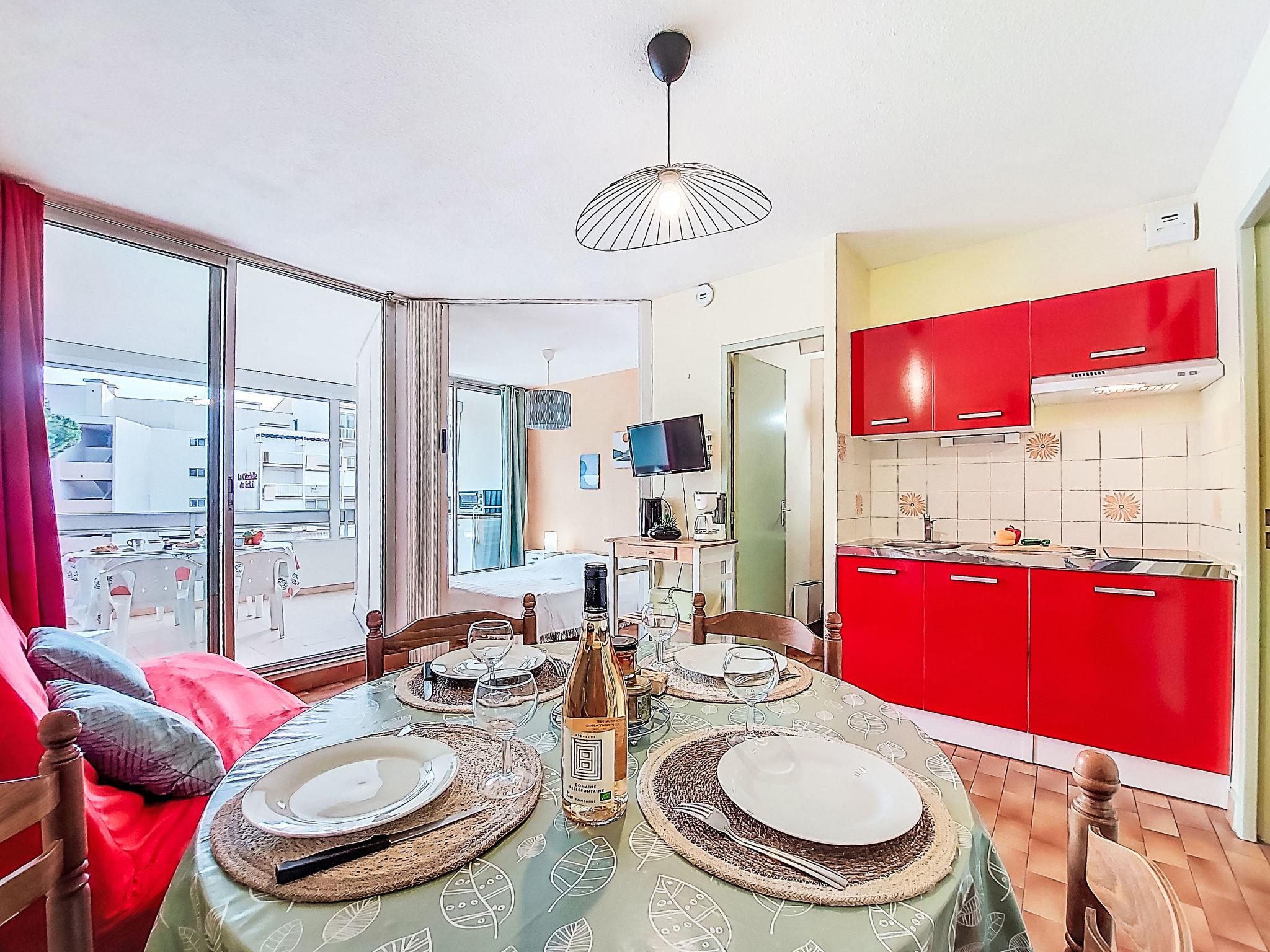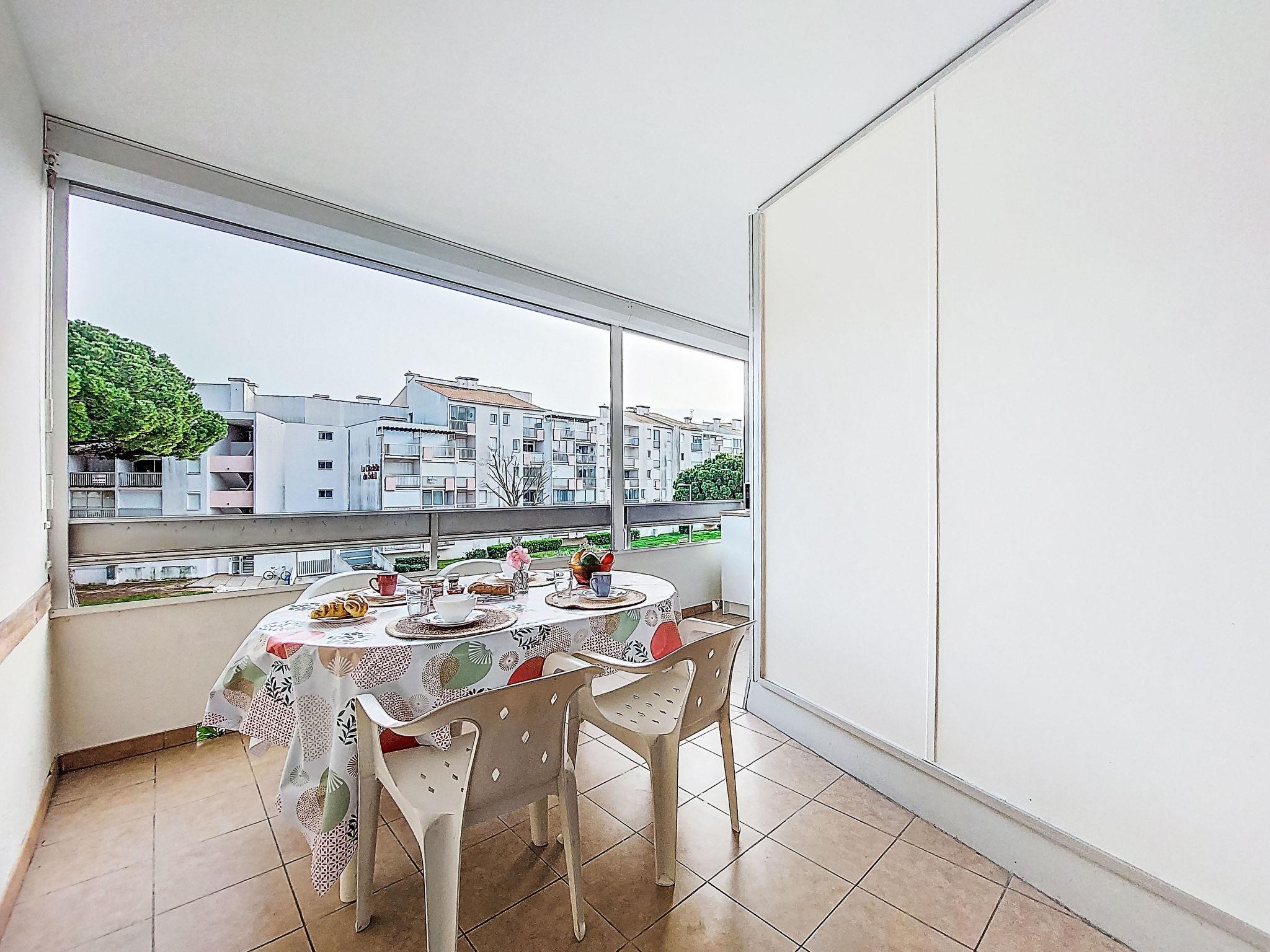 Residenz "Floralies I". Im Ortsteil le Palais de la Mer, 450 m vom Meer, 400 m vom Strand. Parkplatz. Einkaufsgeschäft, Supermarkt 50 m, Einkaufszentrum 300 m, Restaurant 50 m, Bushaltestelle "California" 450 m, Bahnstation 1.5 km, Sandstrand 400 m, Hallenbad 1.1 km, Thermalbad "Thalazur Les Bains de Camargue" 4 km. Reitstall 2.5 km. Nahe gelegene Sehenswürdigkeiten: Seaquarium 350 m, Casino Flamingo 800 m, Aigues-Mortes 8 km, La Grande-Motte 13 km, Les Saintes-Maries-de-la-Mer 37 km, Nîmes 52 km. Wandergebiete: Réserve Naturelle de Camargue. Bitte beachten: Flugplatz 25 km vom Haus.