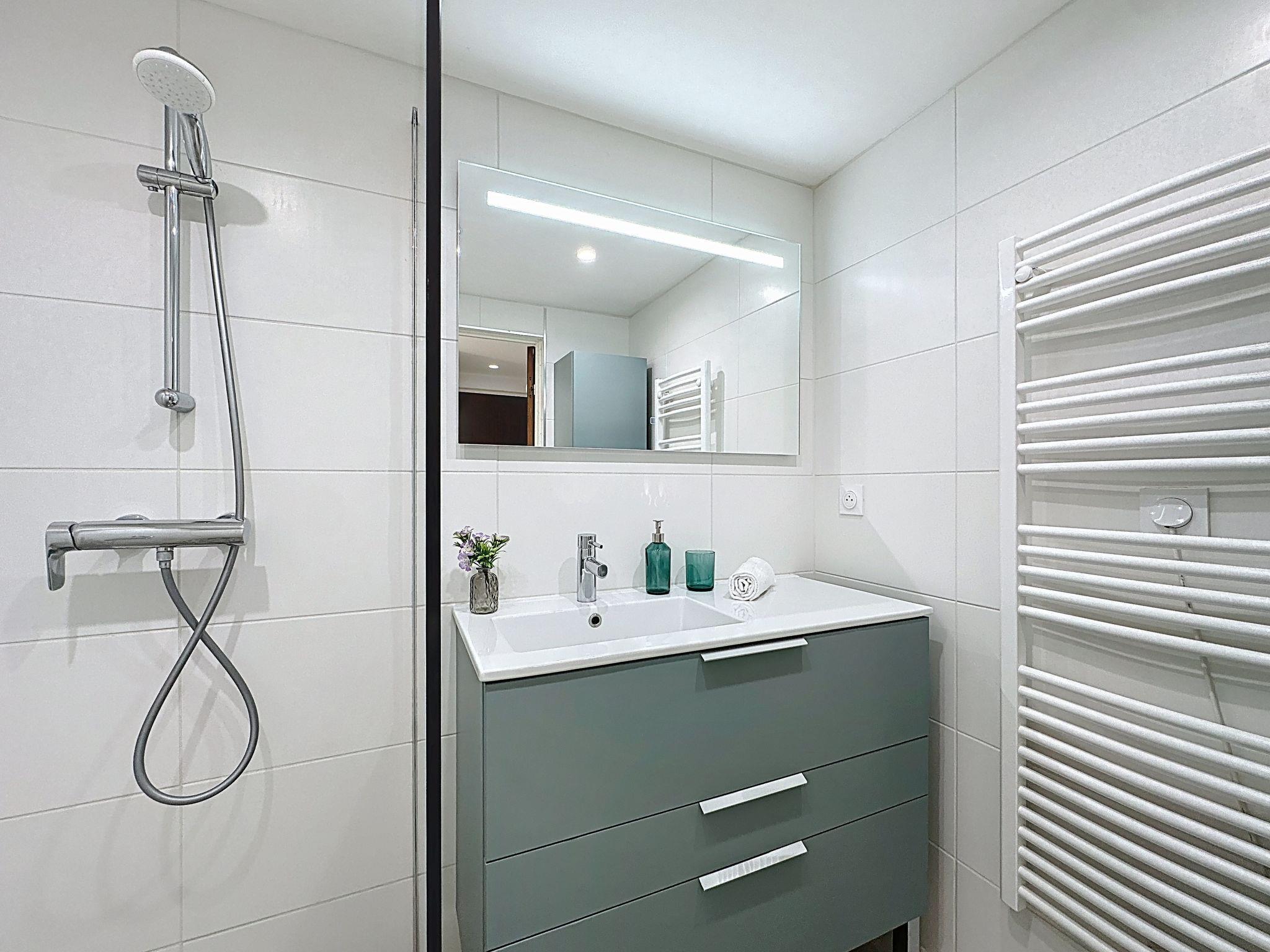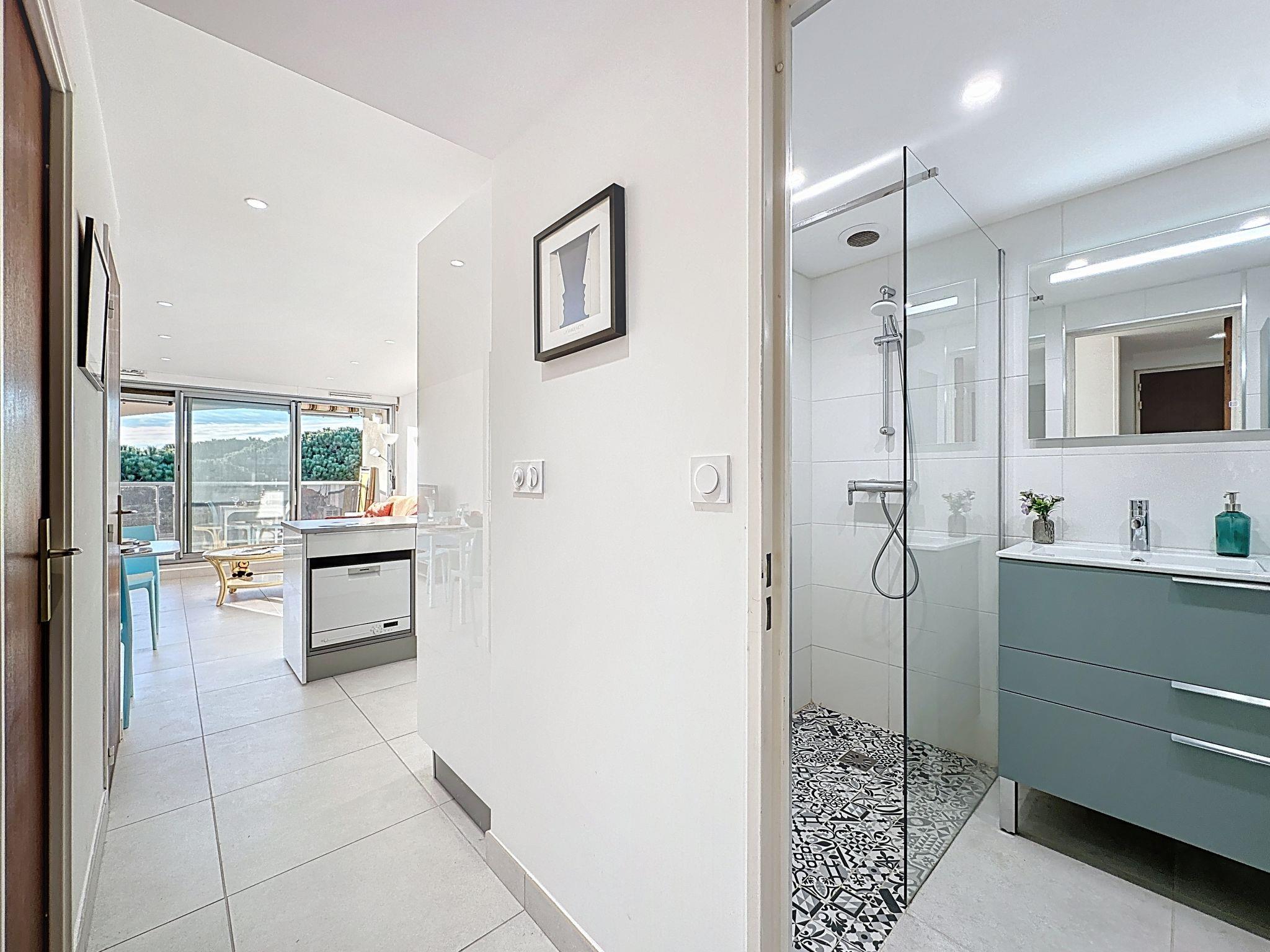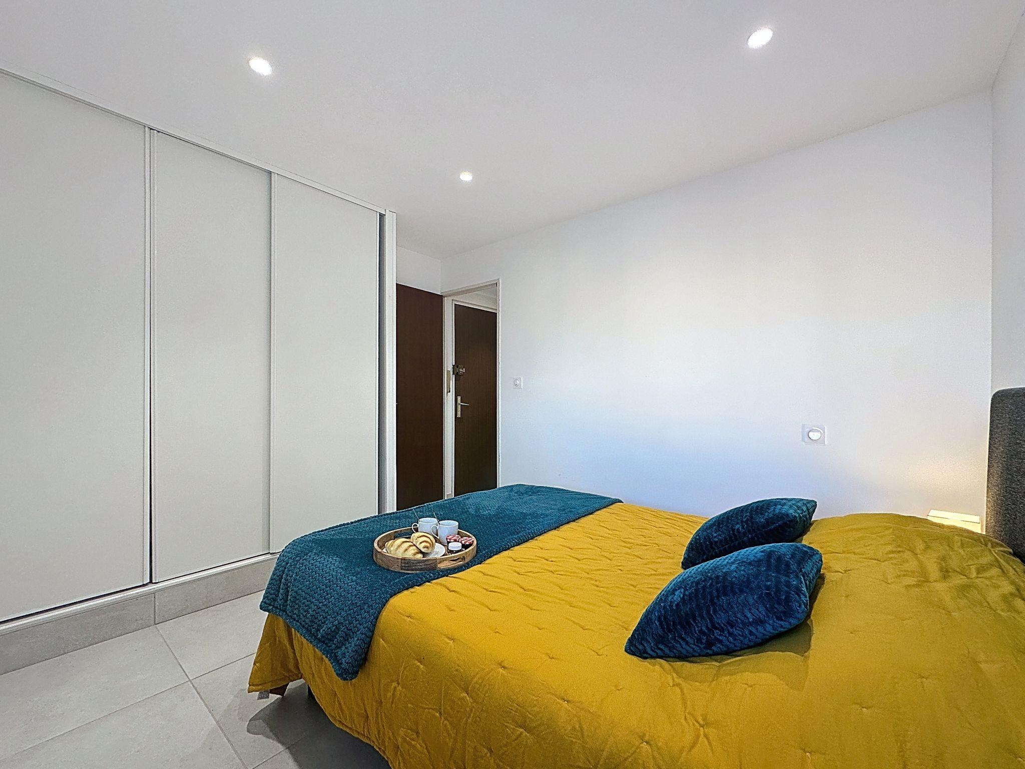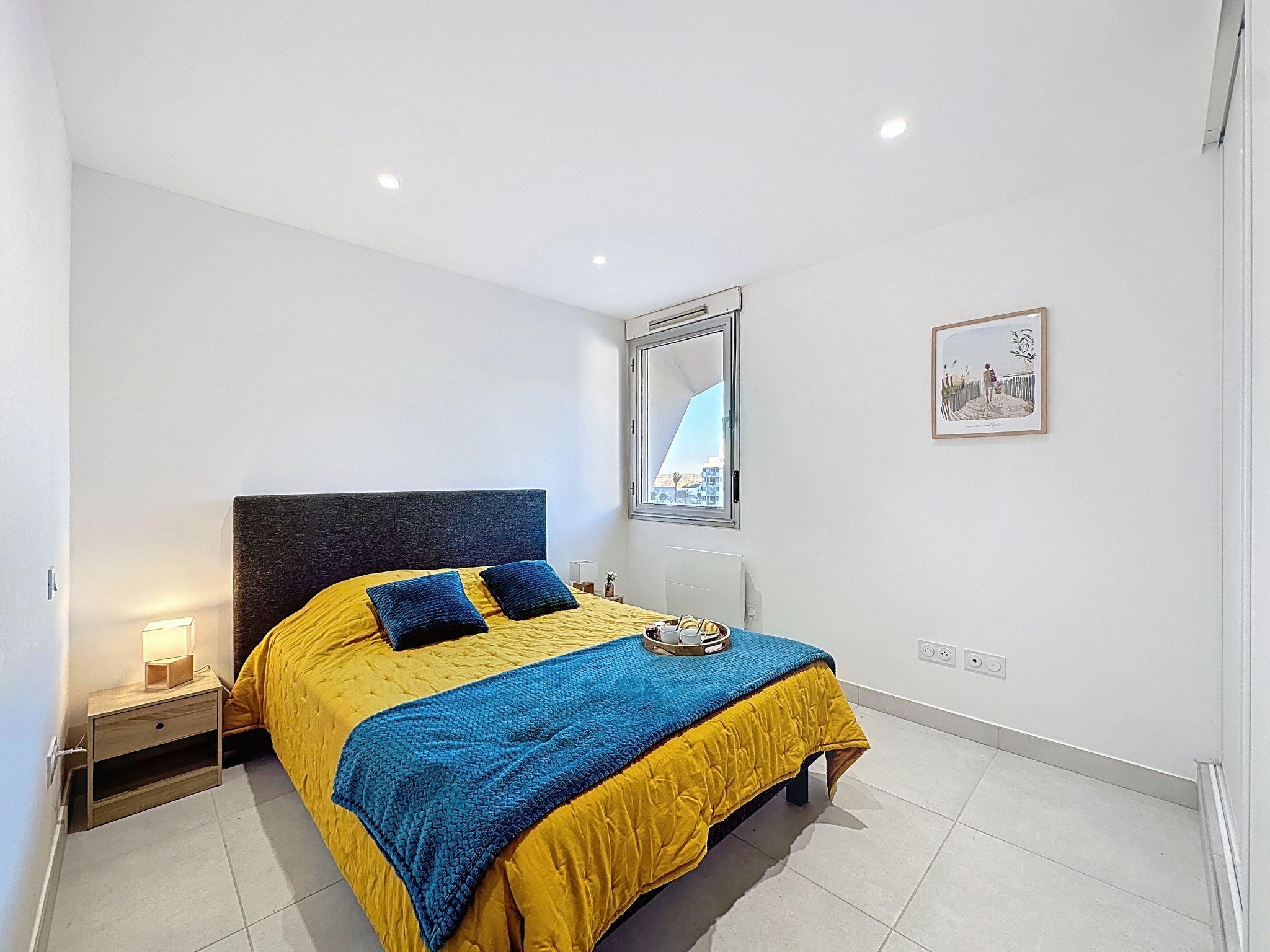 2-Zimmer-Wohnung 40 m2 im 3. Stock. Wohn-/Schlafzimmer mit 1 Doppeldiwanbett (140 cm, Länge 190 cm), TV (Flachbildschirm). Ausgang zum Balkon. 1 Zimmer mit 1 franz. Bett (140 cm, Länge 190 cm). Offene Küche (Backofen, Geschirrspüler, 3 Induktionskochplatten, Toaster, Wasserkocher, Mikrowelle, Tiefkühler, elektrische Kaffeemaschine). Dusche, sep. WC. Klimaanlage. Balkon 6 m2, Westlage. Balkonmöbel. Eingeschränkte Sicht auf das Meer. Zur Verfügung: Waschmaschine. Internet (WLAN, gratis). Parkplatz Nr. 71. Bitte beachten: Nichtraucher-Unterkunft. Rauchmelder. Inserat eines gewerblichen Vermieters nach Artikel 155, IV, CGI 30133001402HL