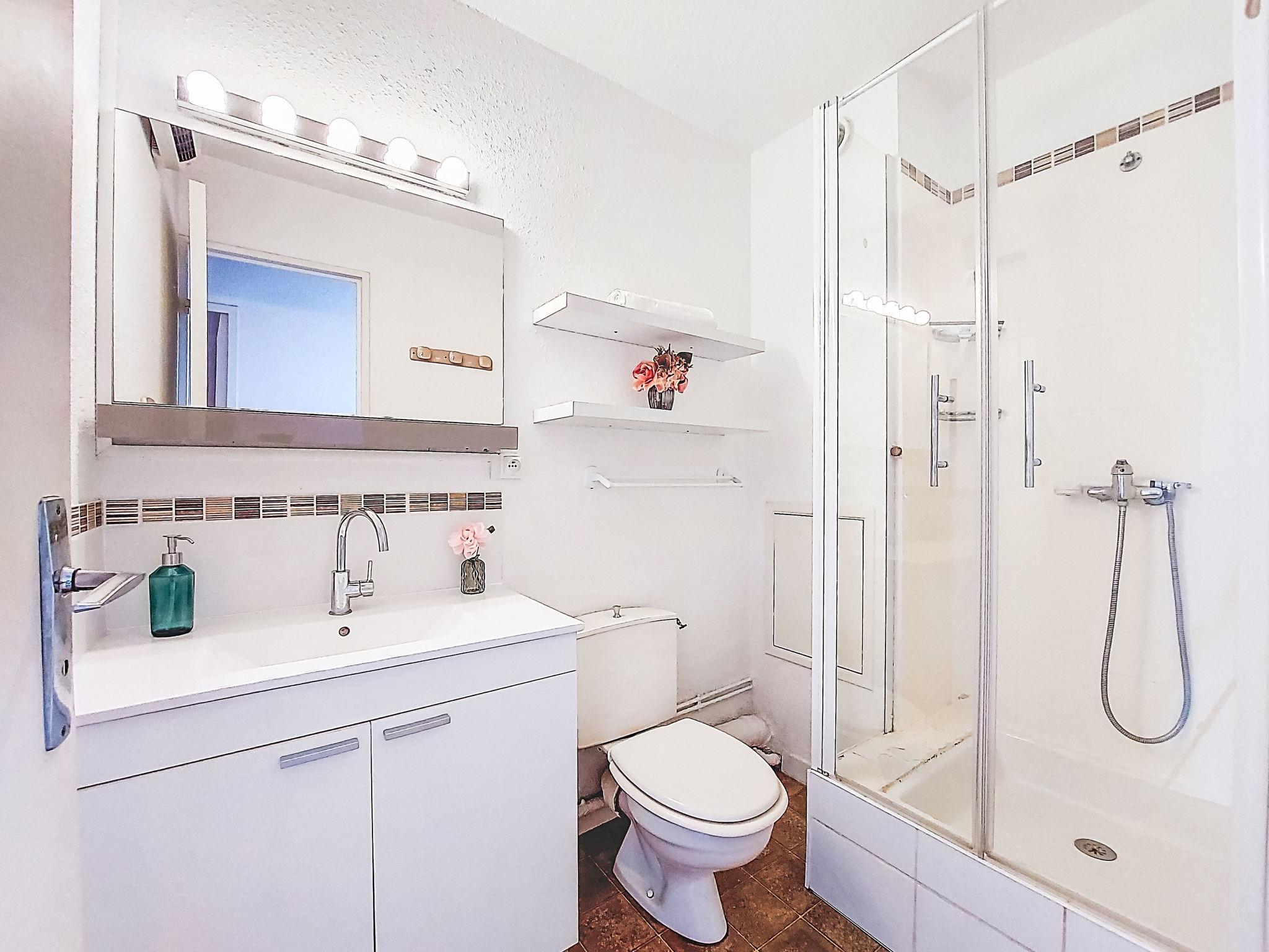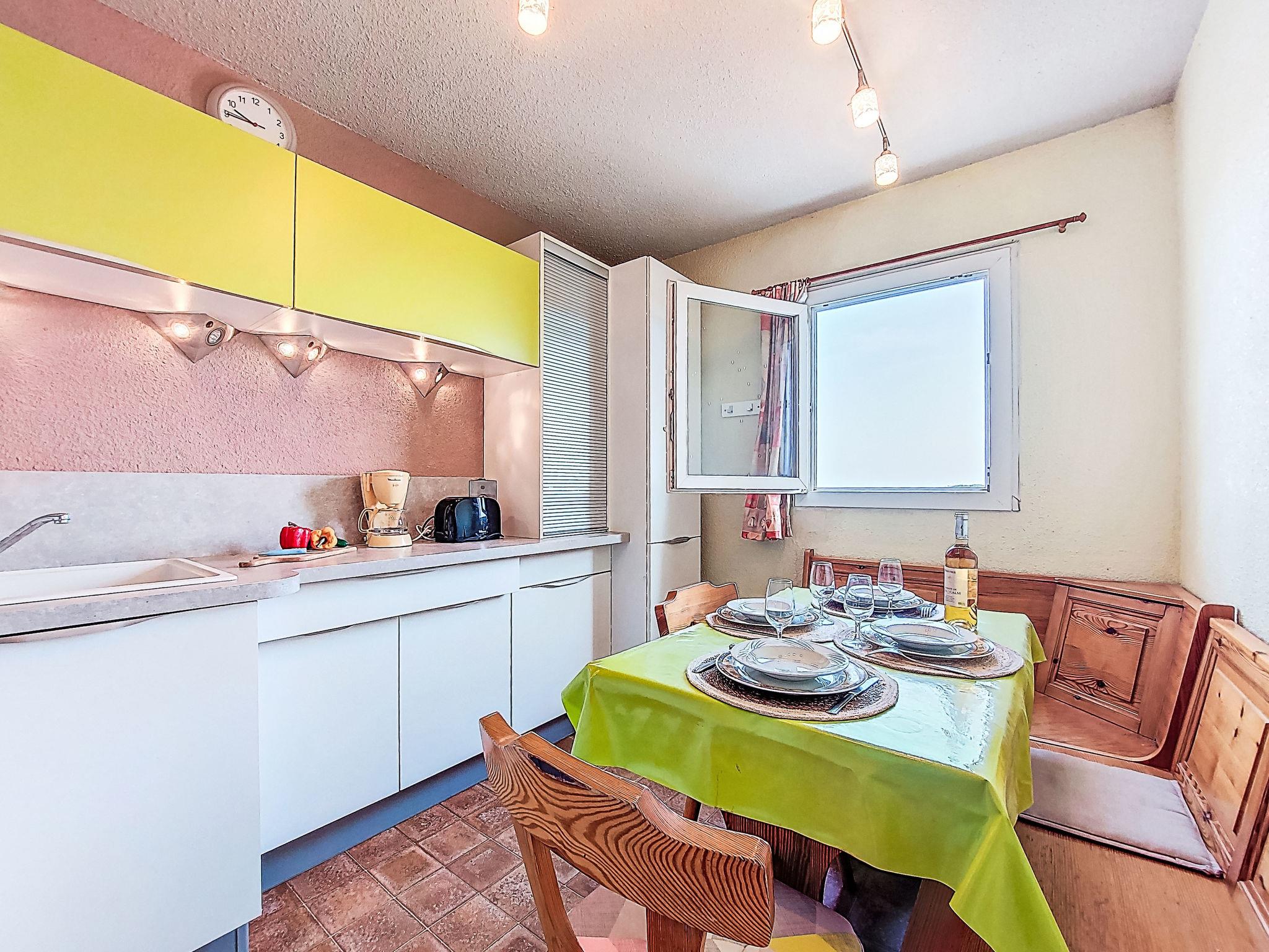 2-Zimmer-Wohnung 30 m2 im 4. Stock. Wohn-/Esszimmer mit TV. 1 Zimmer mit 1 franz. Bett (140 cm, Länge 190 cm). Eingang mit 1 x 2 Etagenbetten (80 cm, Länge 185 cm). Kochnische (3 Glaskeramikplatten, Kombinationsmikrowelle). Dusche/WC. Terrasse 4 m2, Ostlage. Terrassenmöbel. Zur Verfügung: Internet (WLAN, extra). Parkplatz. Bitte beachten: Parkplatz nur für kleine Wagen. Maximal 1 Haustier/Hund erlaubt. Rauchmelder. 30133000849 6C