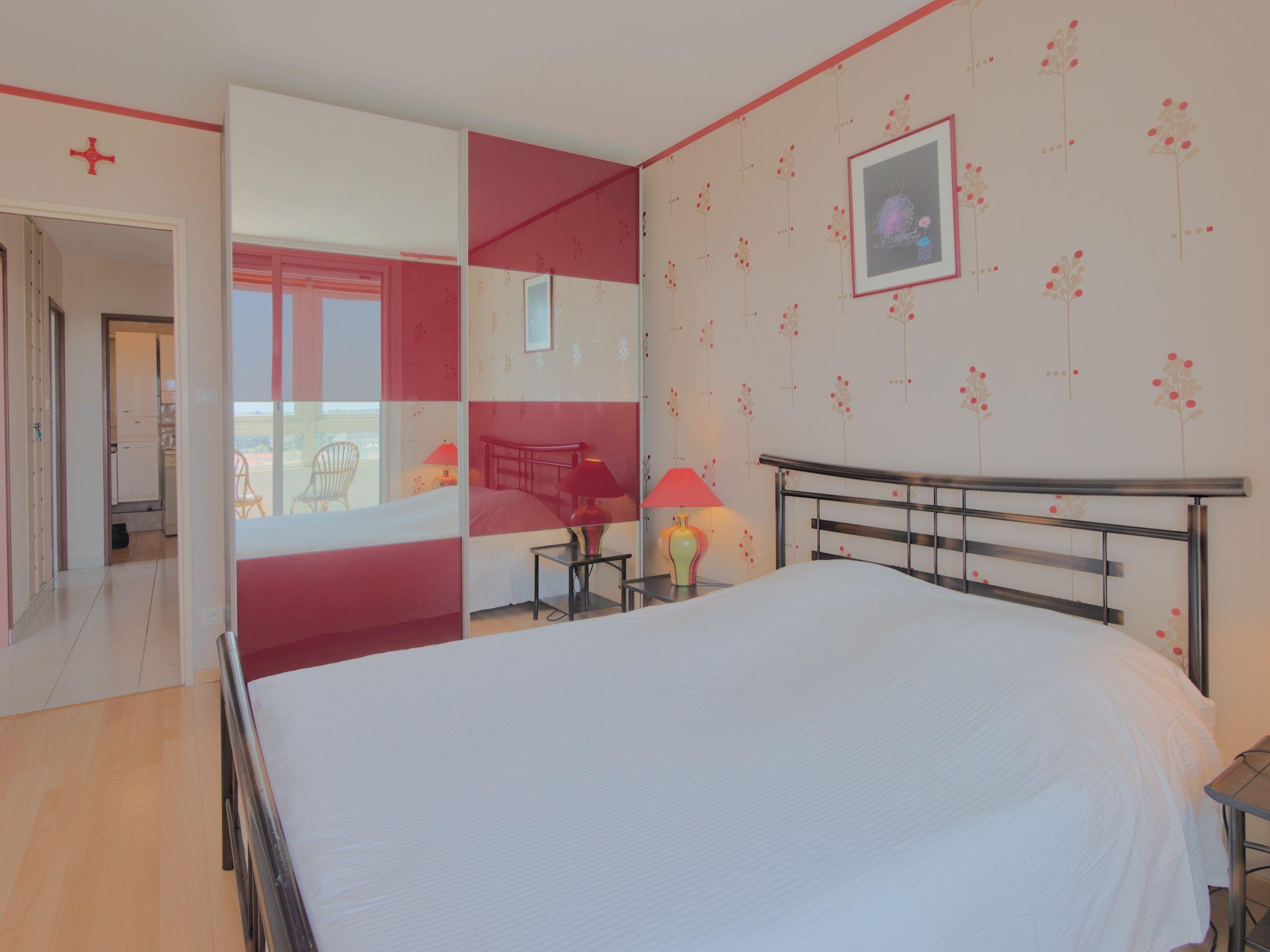 "L'Escale Vendée Globe", 3-Zimmer-Wohnung 72 m2 im 9. Stock. Hell, renoviert im Jahre 2015, zweckmässig eingerichtet: Wohnzimmer mit 1 Diwanbett (130 cm, Länge 190 cm), Esstisch, TV, Stereoanlage, DVD und Klimaanlage. Ausgang zum Balkon. 1 Zimmer mit 1 franz. Bett (140 cm, Länge 190 cm). Ausgang zum Balkon. 1 Zimmer mit 1 Bett (90 cm, Länge 190 cm). Ausgang zum Balkon. Küche (1 Kochplatte, Backofen, 3 Flammen, Toaster, Wasserkocher, Mikrowelle, Tiefkühler, elektrische Kaffeemaschine). Dusche, sep. WC. Fussbodenheizung. 2 Balkone. Balkonmöbel, Abstellkammer. Panoramasicht. Zur Verfügung: Waschmaschine, Bügeleisen, Kinderhochstuhl, Babybett. Internet (WLAN, gratis). Bitte beachten: Nichtraucher-Unterkunft. Rauchmelder. 8519400071819